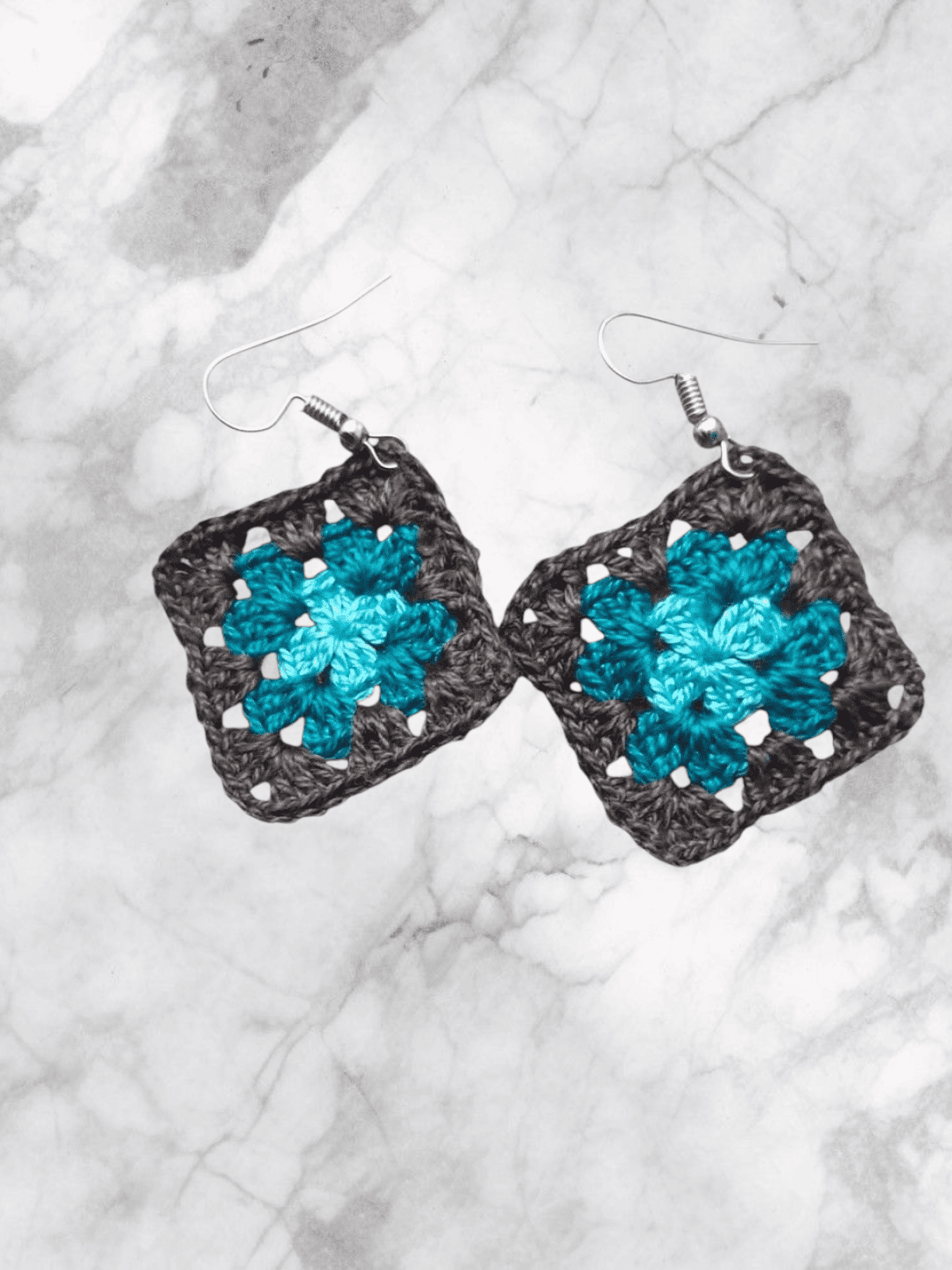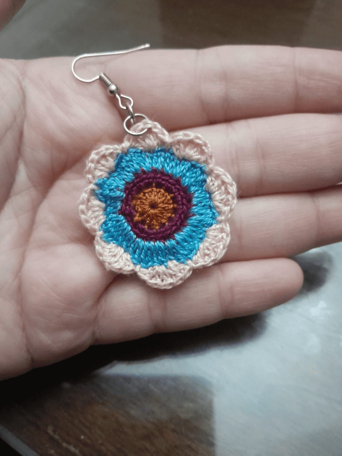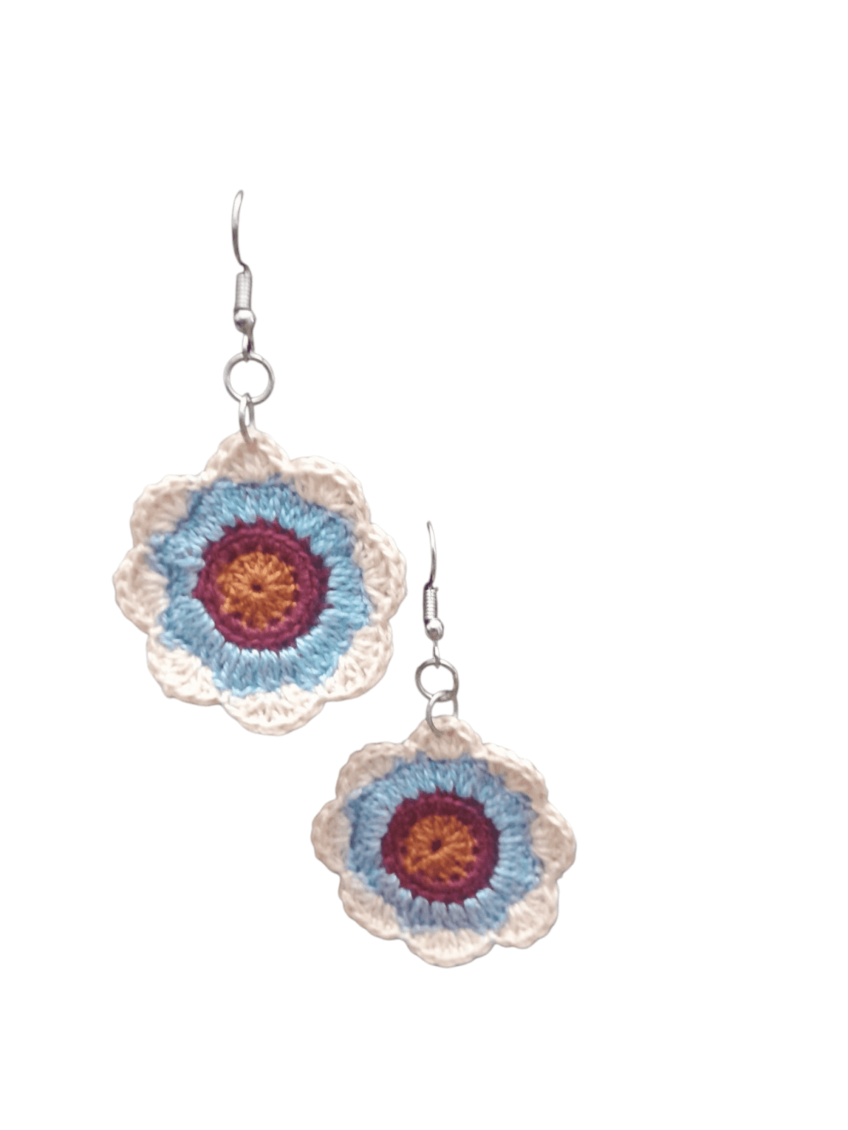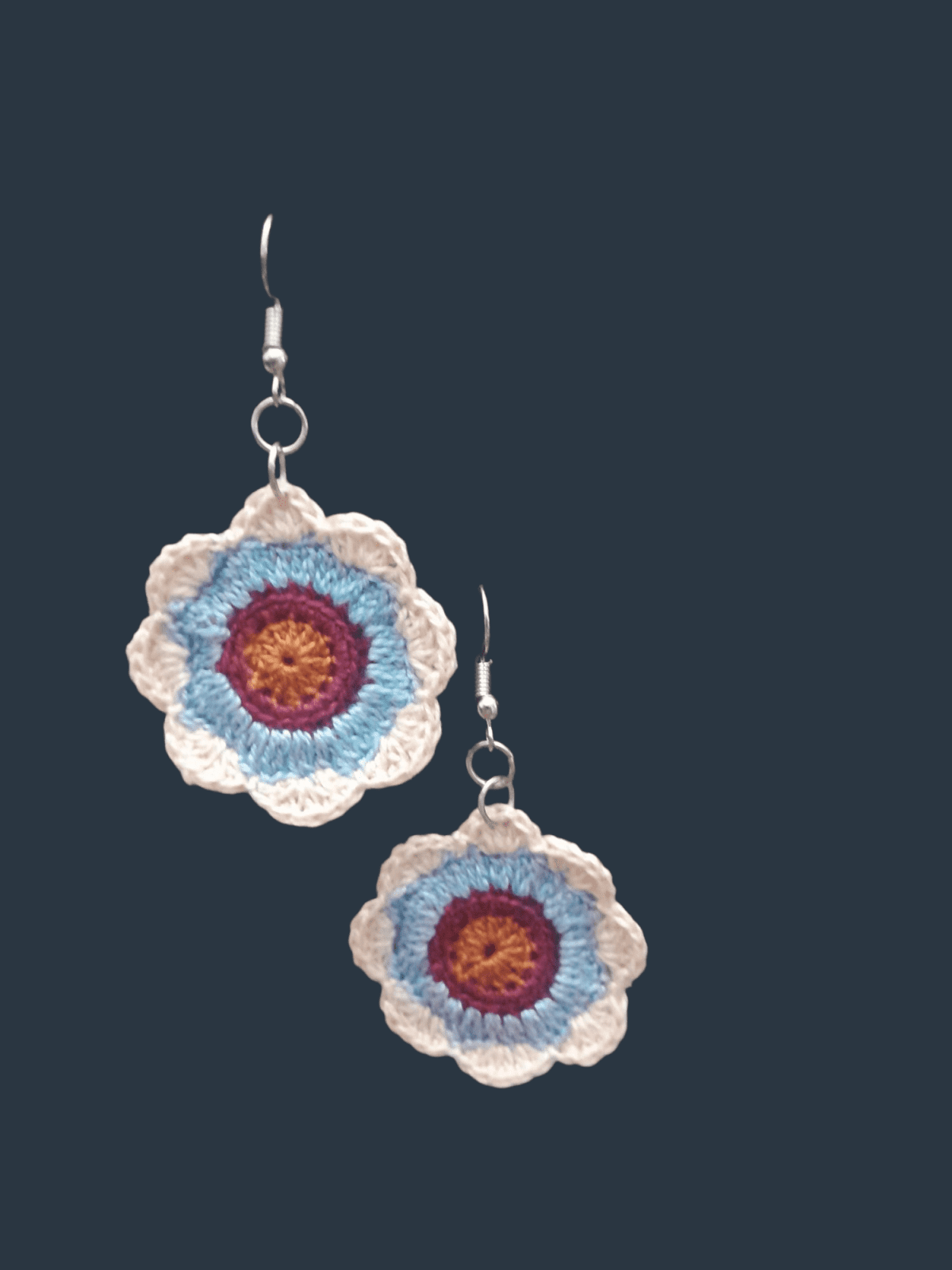 حلق كروشيه صناعة يدوي من خيوط قطن ناعمة وخفيفة على الاذن مقاس ٣×٤ متاح بالوان الصيف المميزه