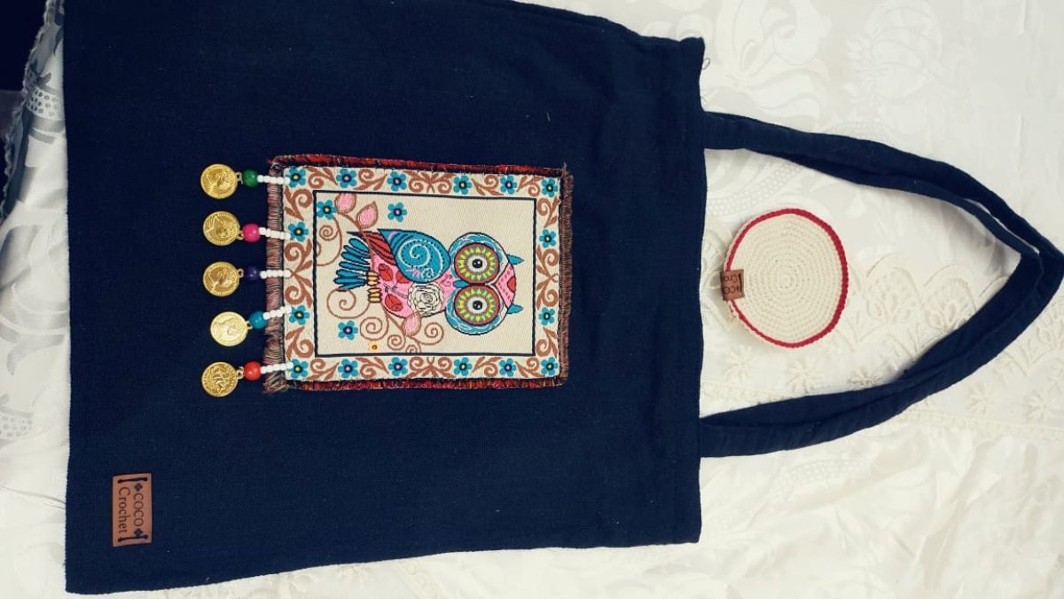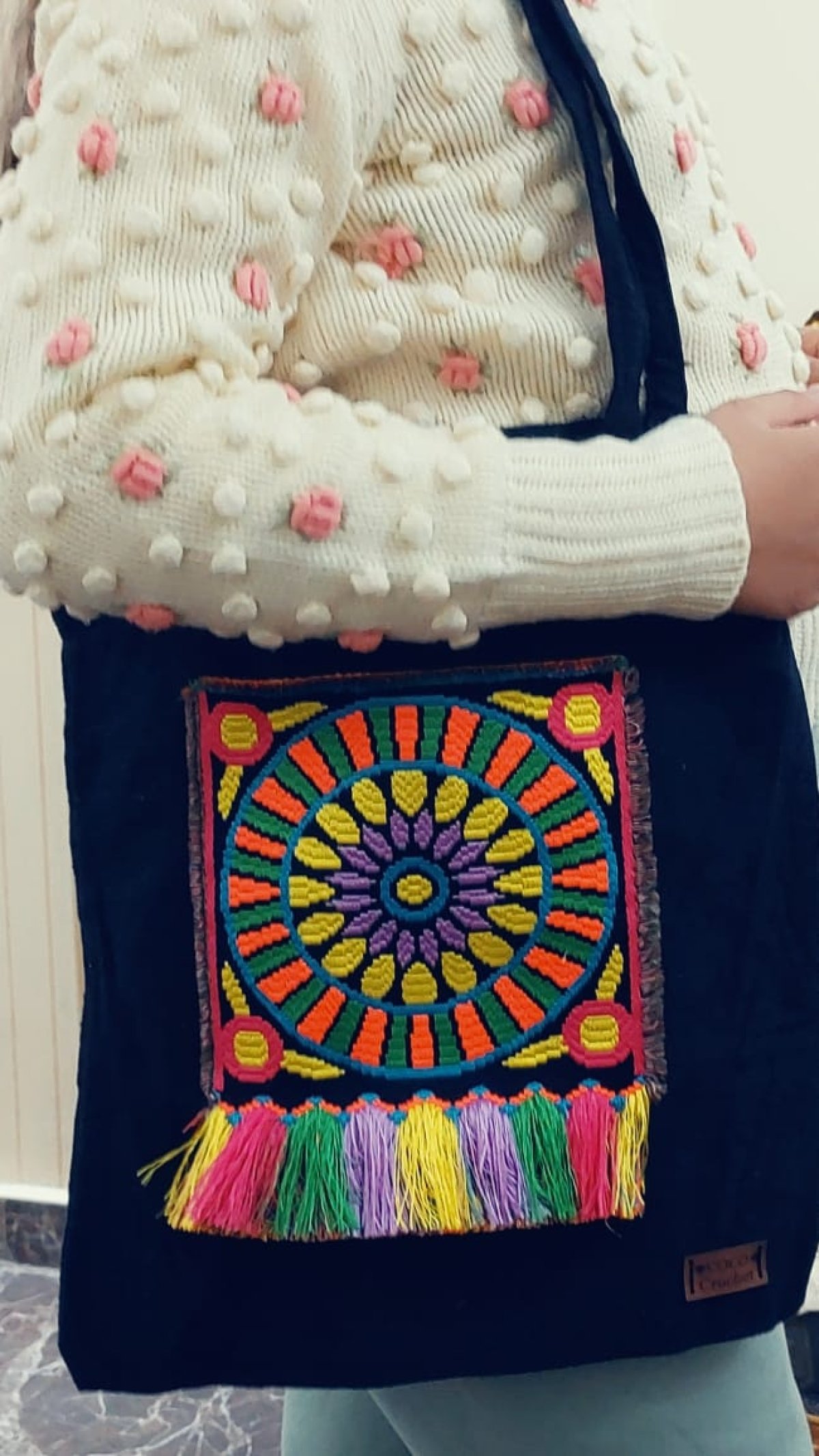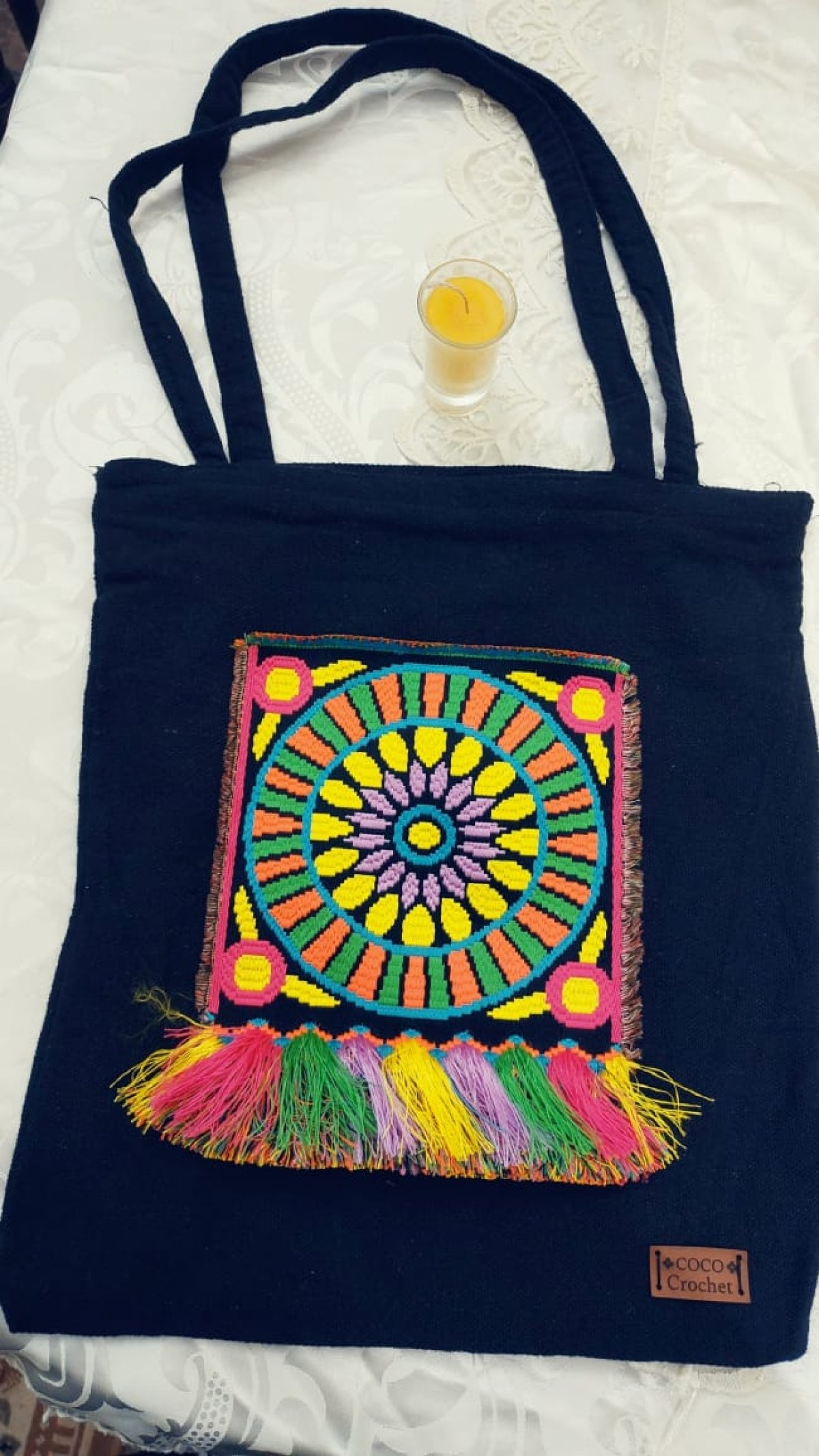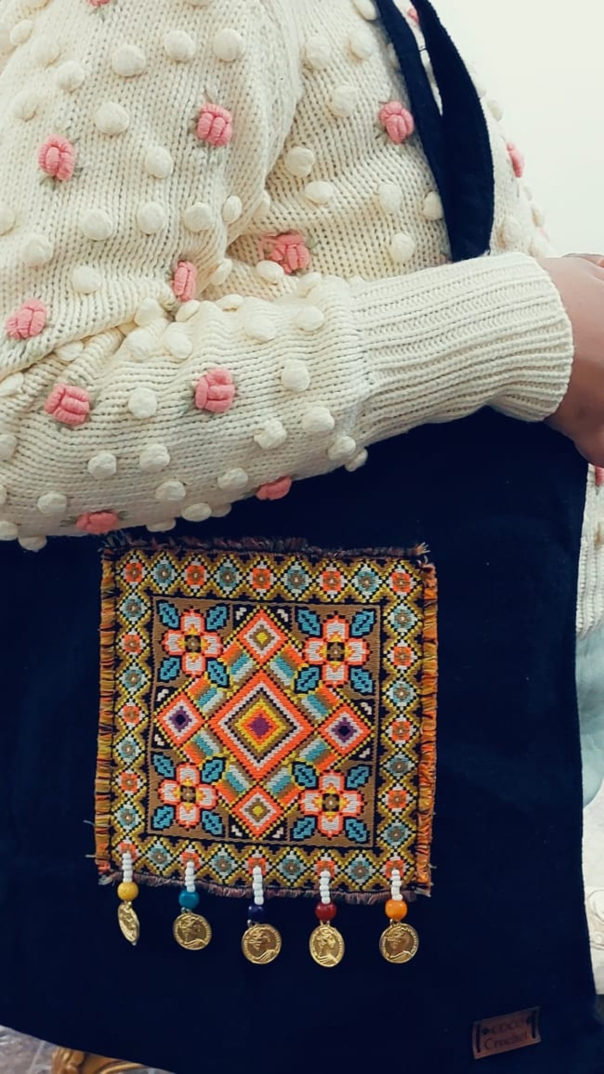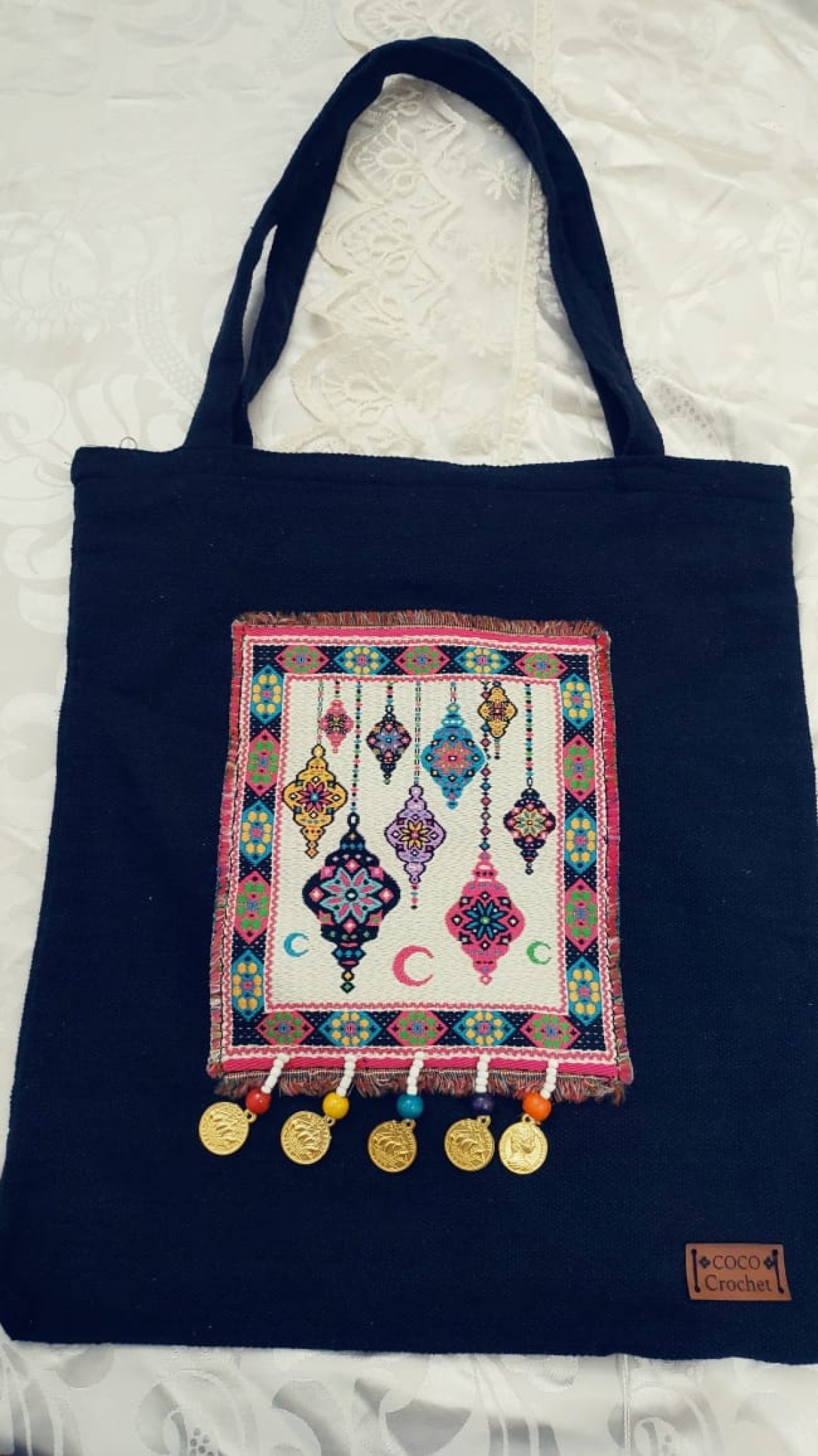 شنطة توت باج خامة دك بها بسوسته و مطعمة بشغل الفولكلور المميز مقاس ممتاز ومناسب جدا ٣٠×٣٥ سم