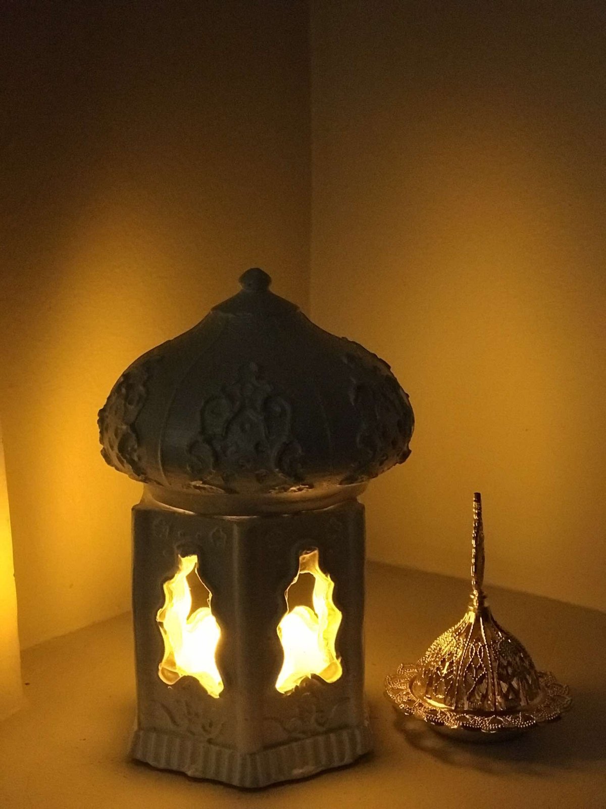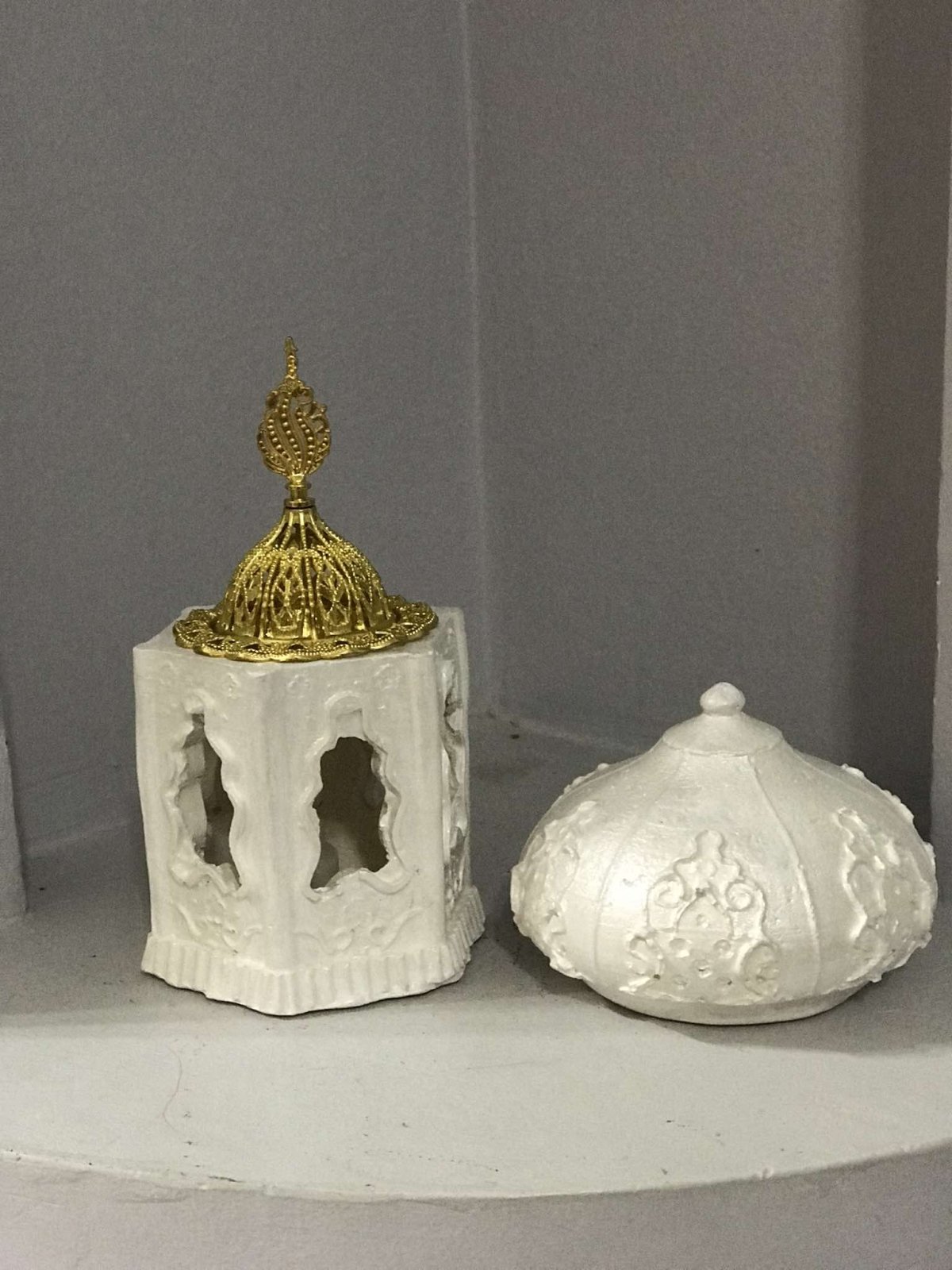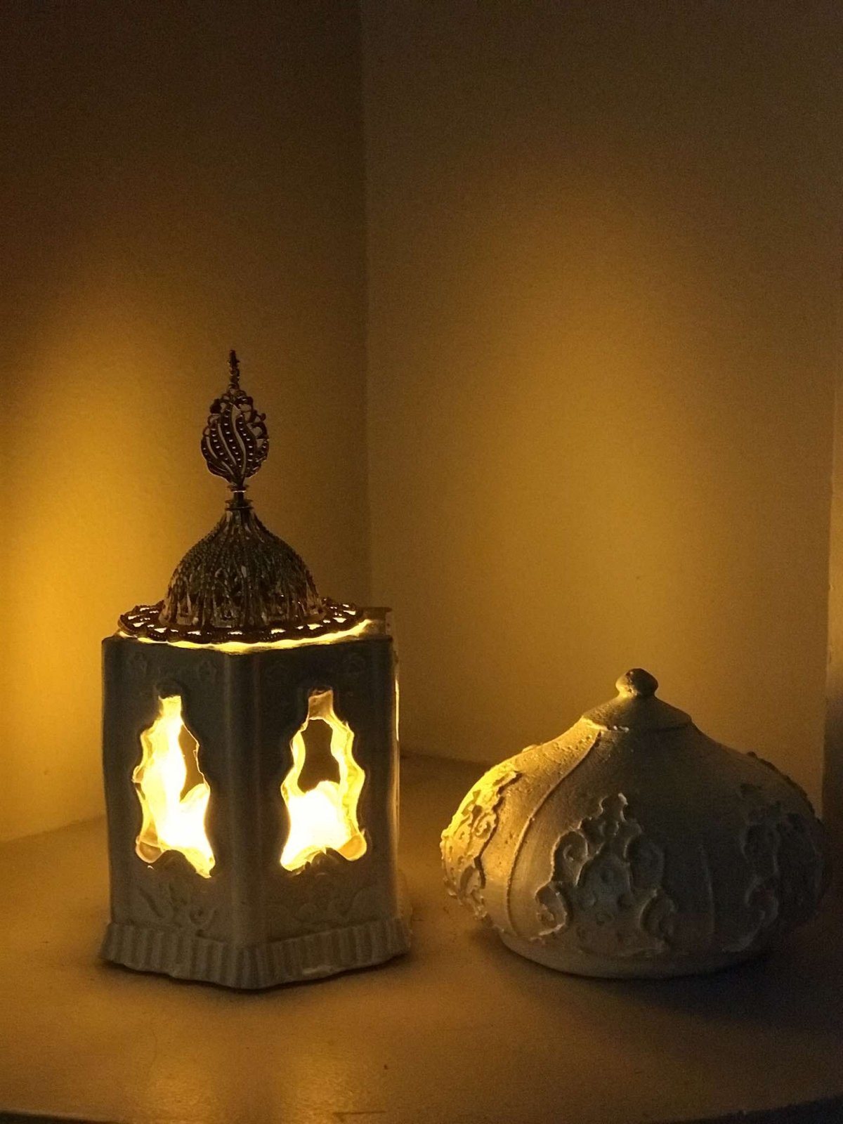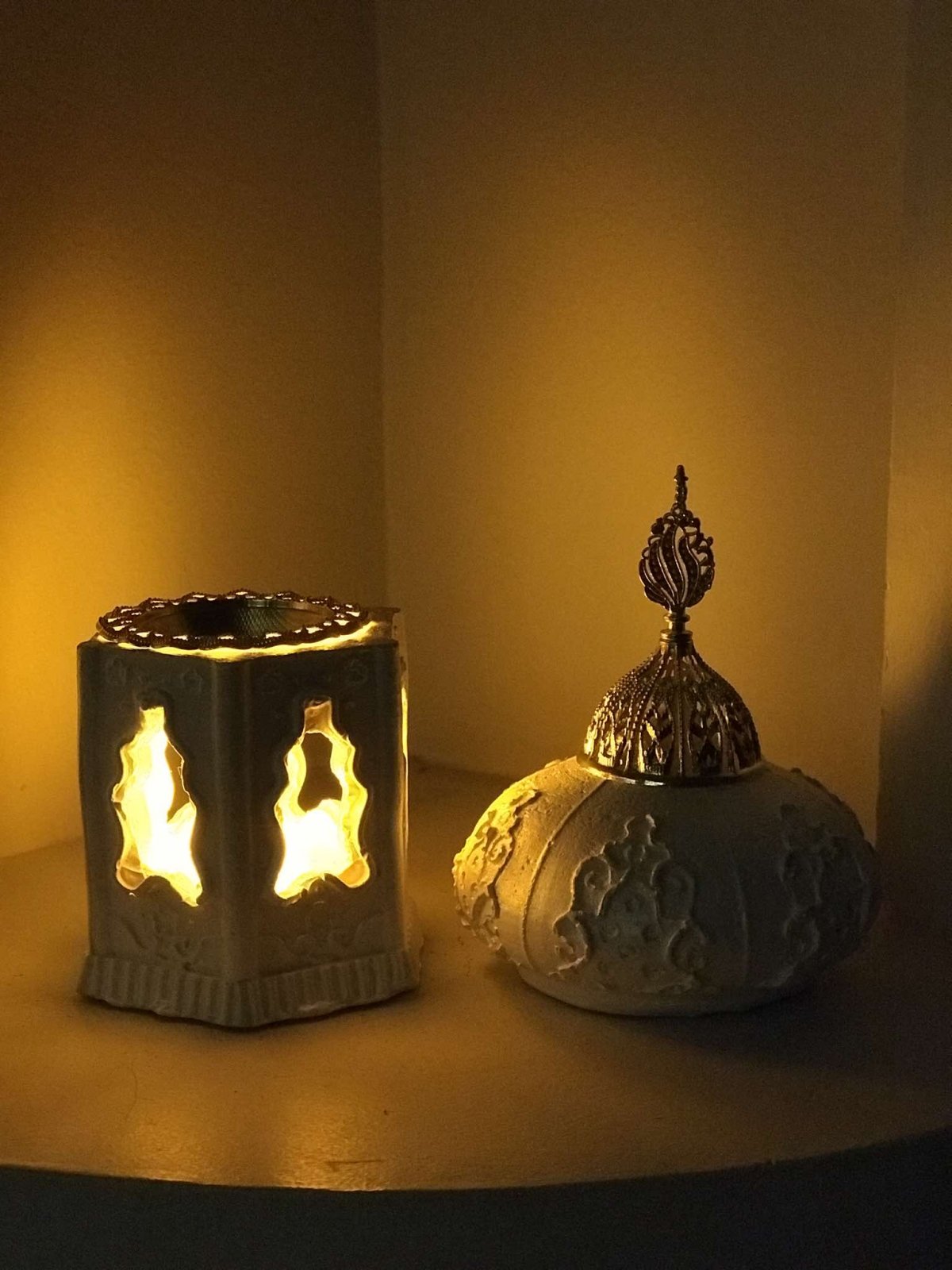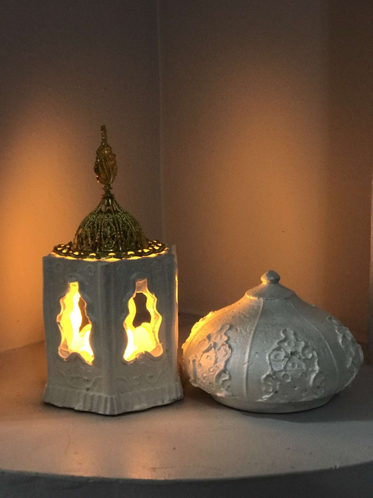 🕯️✨ **طقم ديكوري رمضاني أنيق – فوانيس مضيئة بتصميم تراثي فاخر** أضيئي زوايا منزلك بلمسة روحانية وجمالية مع هذا الطقم الفاخر المستوحى من الطراز الإسلامي الكلاسيكي، والمصنوع بدقة من مواد عالية الجودة. 🔸 **مكونات الطقم:** - **فانوس ديكوري مضيء**: بتصميم مثمن أنيق مع فتحات زخرفية تبرز الإضاءة بشكل جذاب، مغطى بقبه تعكس الطابع الشرقي. - **مبخره زخرفية صغيرة بغطاء**: مثالية لاستخدام البخور أو استخدامها كعنصر تزييني منفرد، مزخرفة بنقوش فاخرة تضيف لمسة ملوكية. 📏 **الخامة:** كونكريت بلمسة نهائية ناعمة ومطفية (إمكانية التنفيذ بخامة البوليستر حسب الطلب) 🎨 **(اللون:** أبيض عاجي ( متاح تغير اللون حسب الطلب 💡 ** الإضاءة:** LED داخلية ناعمة (يمكن تشغيلها بسهولة) إضاءة ✅ **المميزات:** - تصميم مستوحى من التراث الإسلامي - مثالي لأجواء رمضان والعيد - يصلح لتزيين المداخل، الأركان، الطاولات الجانبية، أو صواني الضيافة - يمكن تقديمه كهدية رمضانية راقية 🎁 *أضيفي لمسة من الدفء والرقي لديكورك الرمضاني مع هذا الطقم المميز*