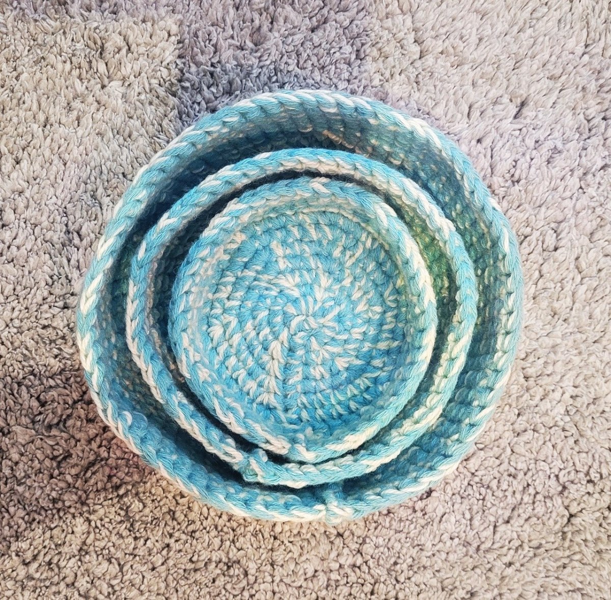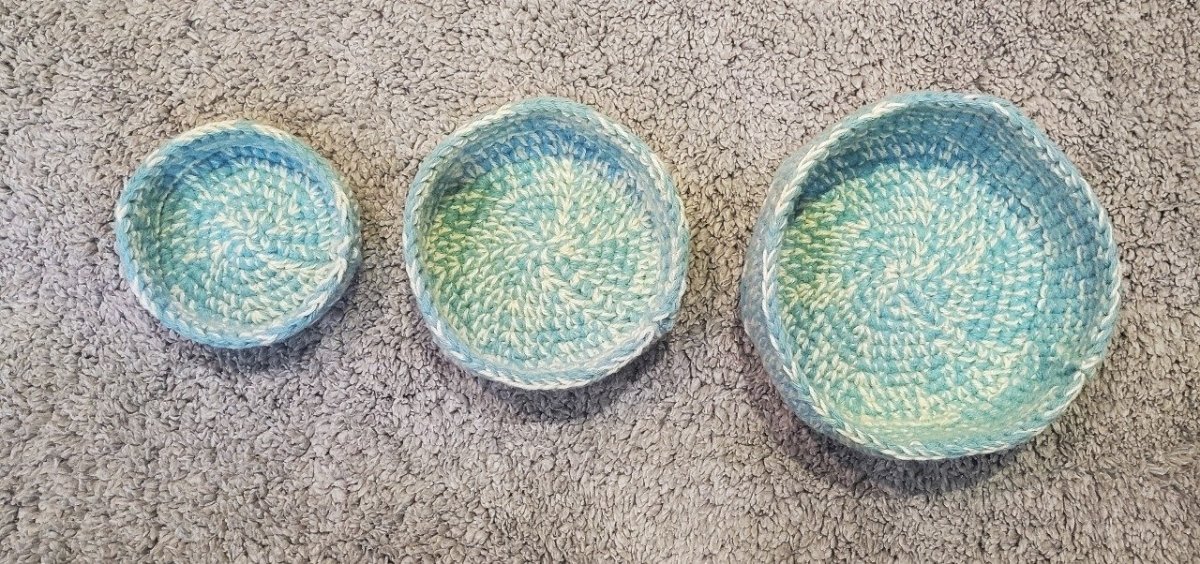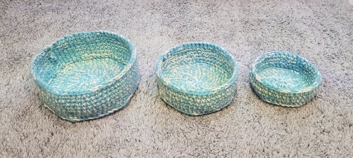 وحدات تخزين يدوية الصنع من خيط الصوف عالي الجودة يستخدم في تخزين الاكسسوار و الماكياج او أغراض دورة المياه تمنح مظهرا أنيقا و مرتب ٣ قطع مقاسات: ١١،١٤،١٧ سم