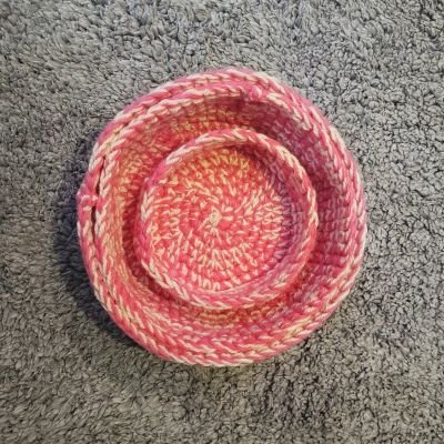 وحدات تخزين يدوية الصنع من خيط الصوف عالي الجودة يستخدم في تخزين الاكسسوار و الماكياج او اغراض دورة المياه يمنح مظهرا انيقا و مرتب ٣ قطع مقاسات: ١١،١٦،١٨ سم