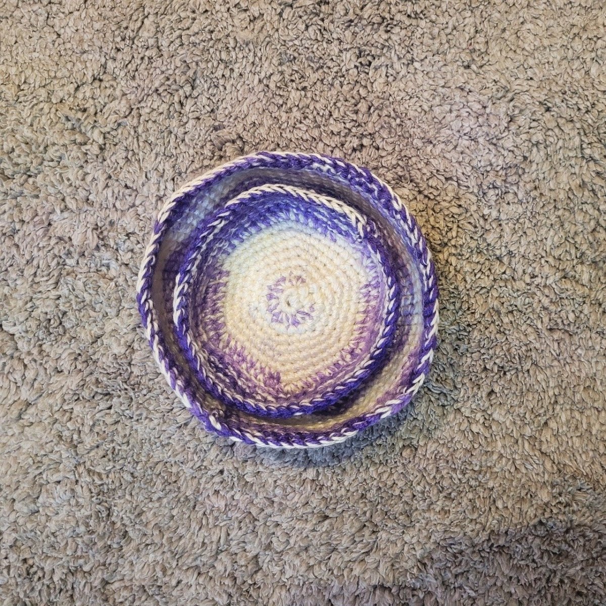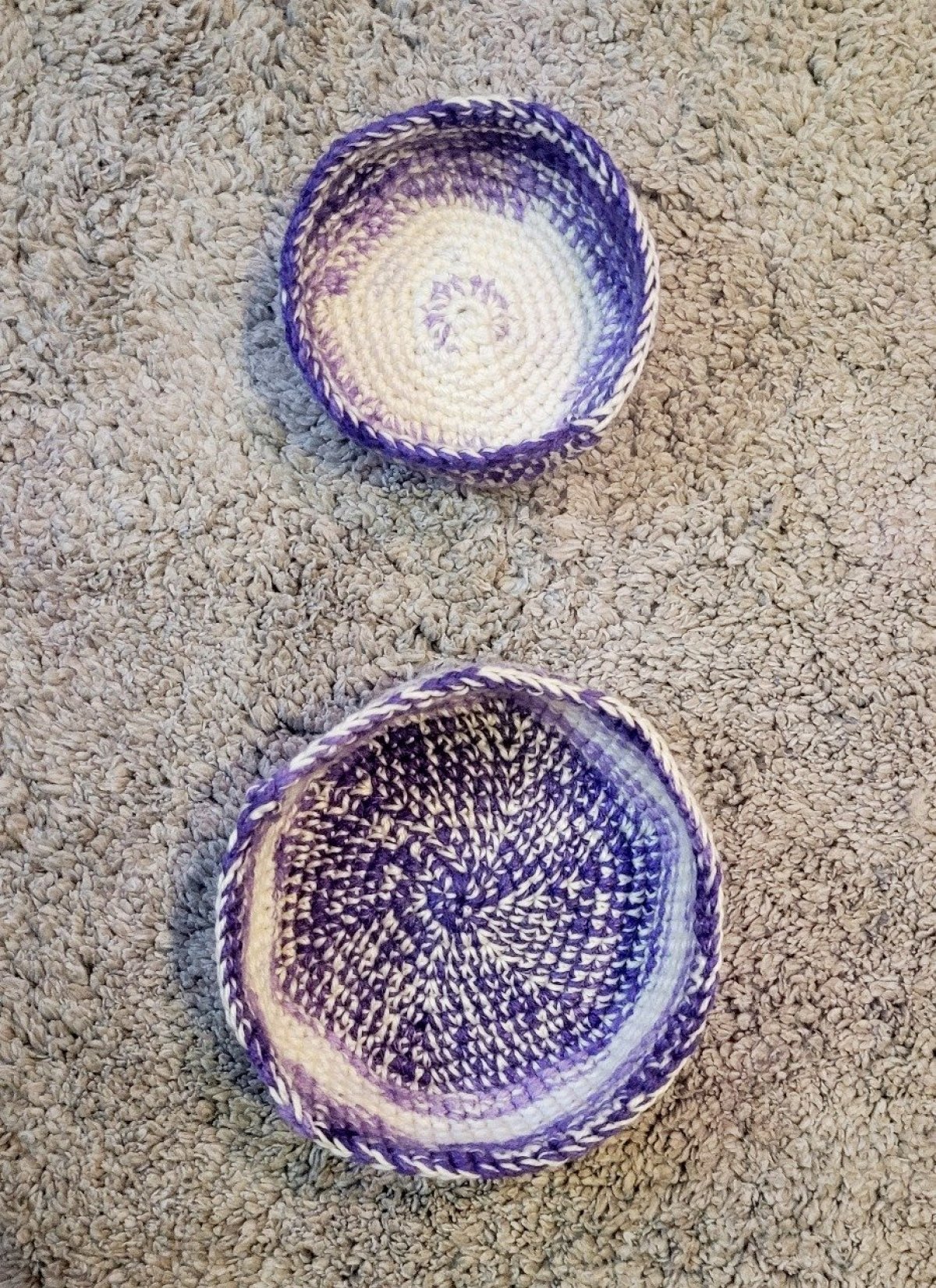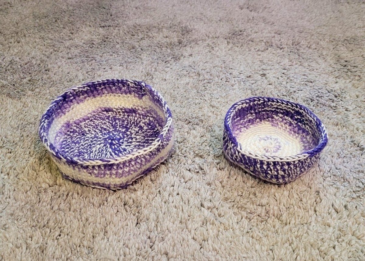 وحدات تخزين يدوية الصنع من خيط الصوف عالي الجودة يستخدم في تخزين الاكسسوار و الماكياج او اغراض دورة المياه يمنح مظهرا انيقا و مرتب قطعتين مقاسات: ١١،١٥ سم