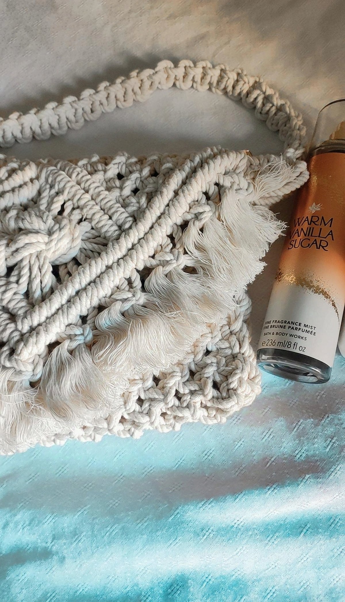 شنطه مكرمية بالخيوط القطن مقاسها 30 سم *20 سم