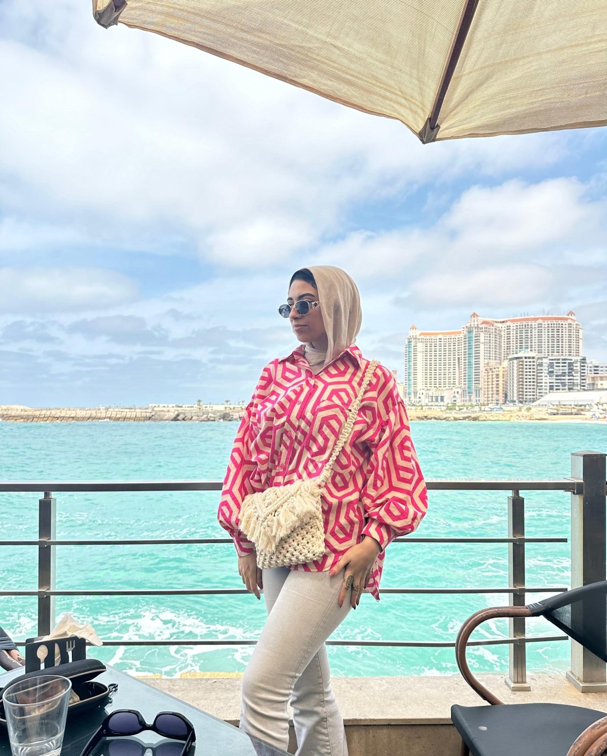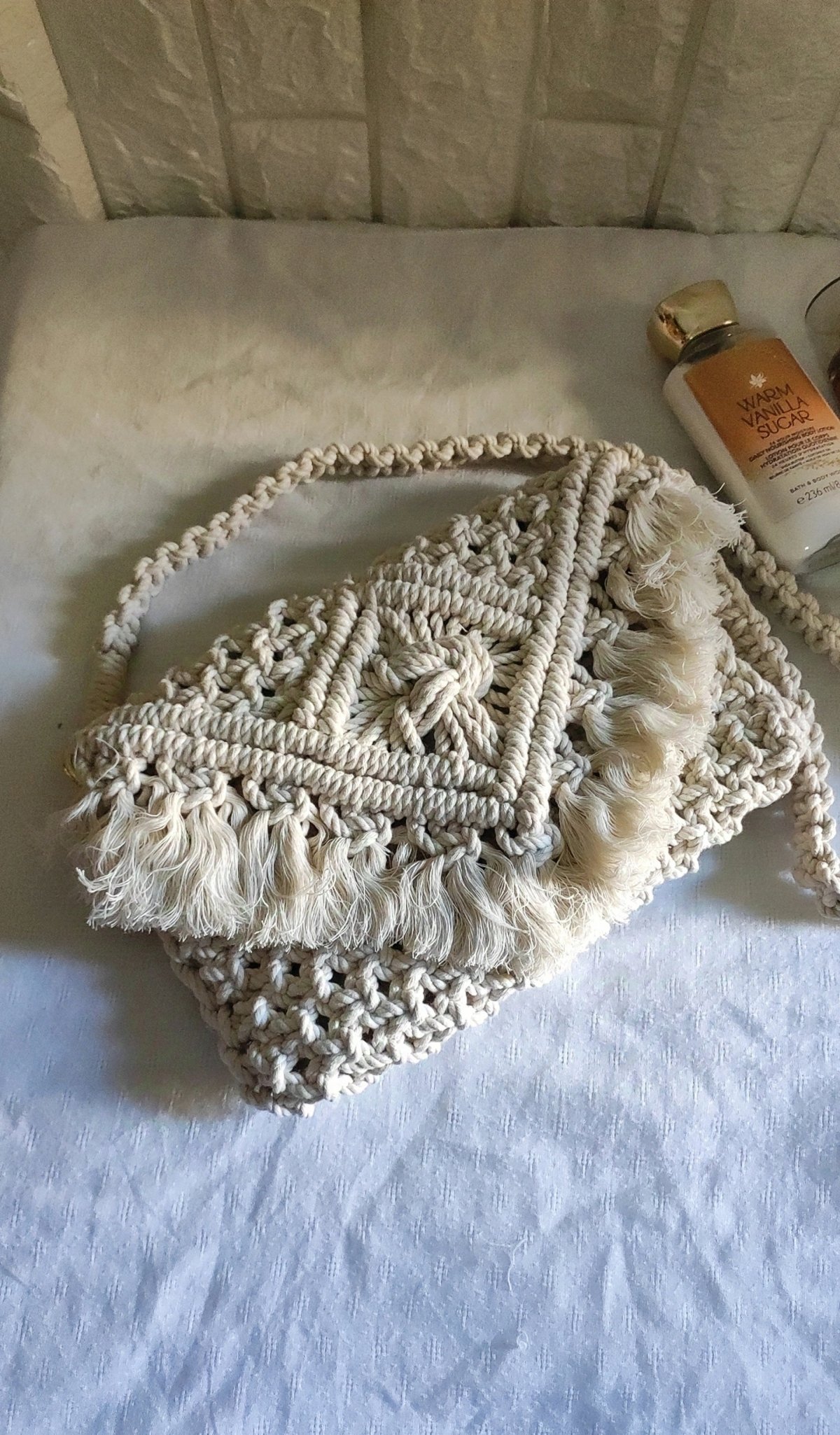 شنطه مكرمية بالخيوط القطن مقاسها 30 سم *20 سم