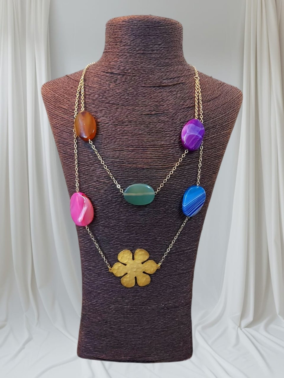 عقد من احجار العقيق ودلايه نحاس بيور مطلى دهب
