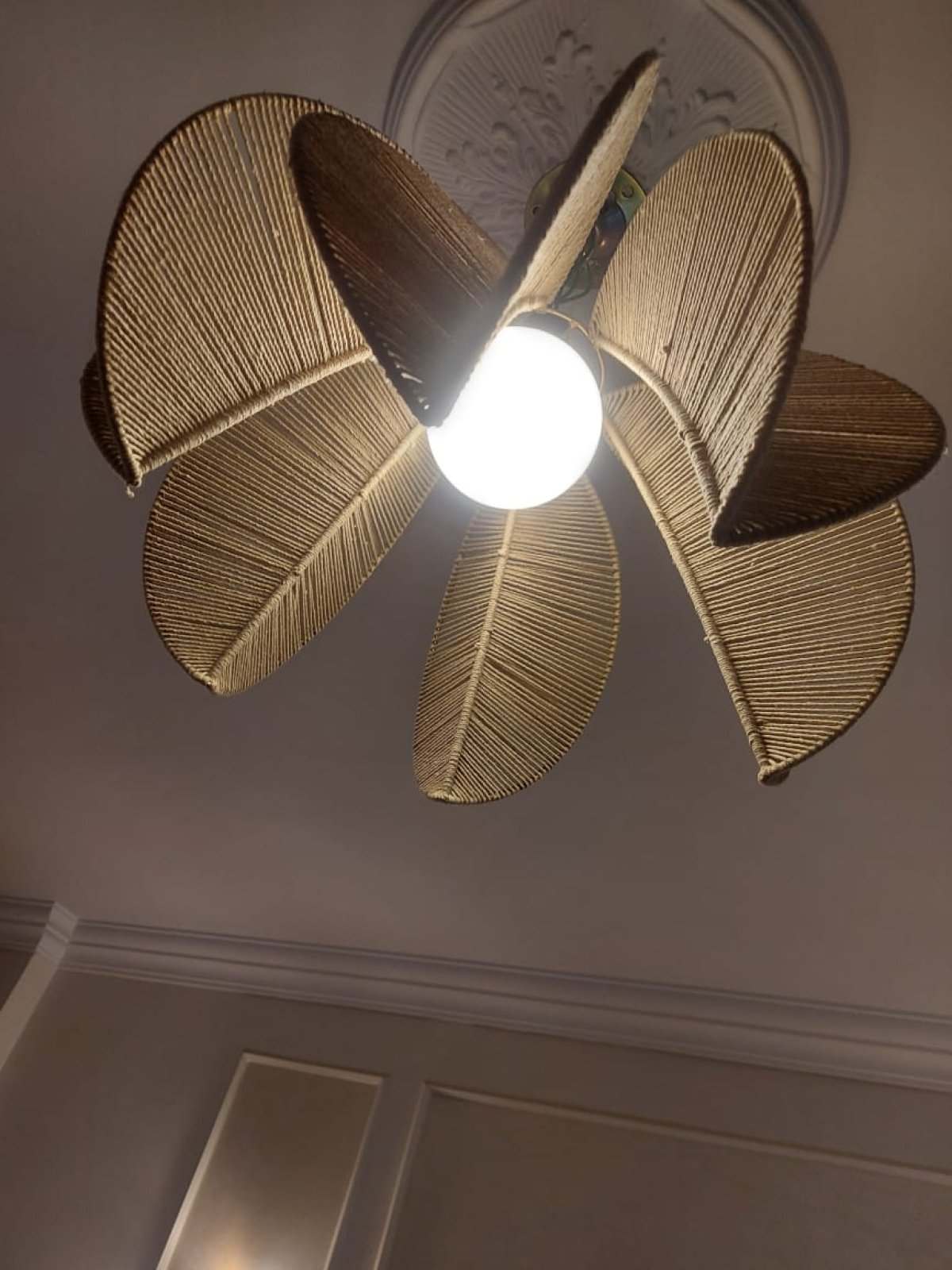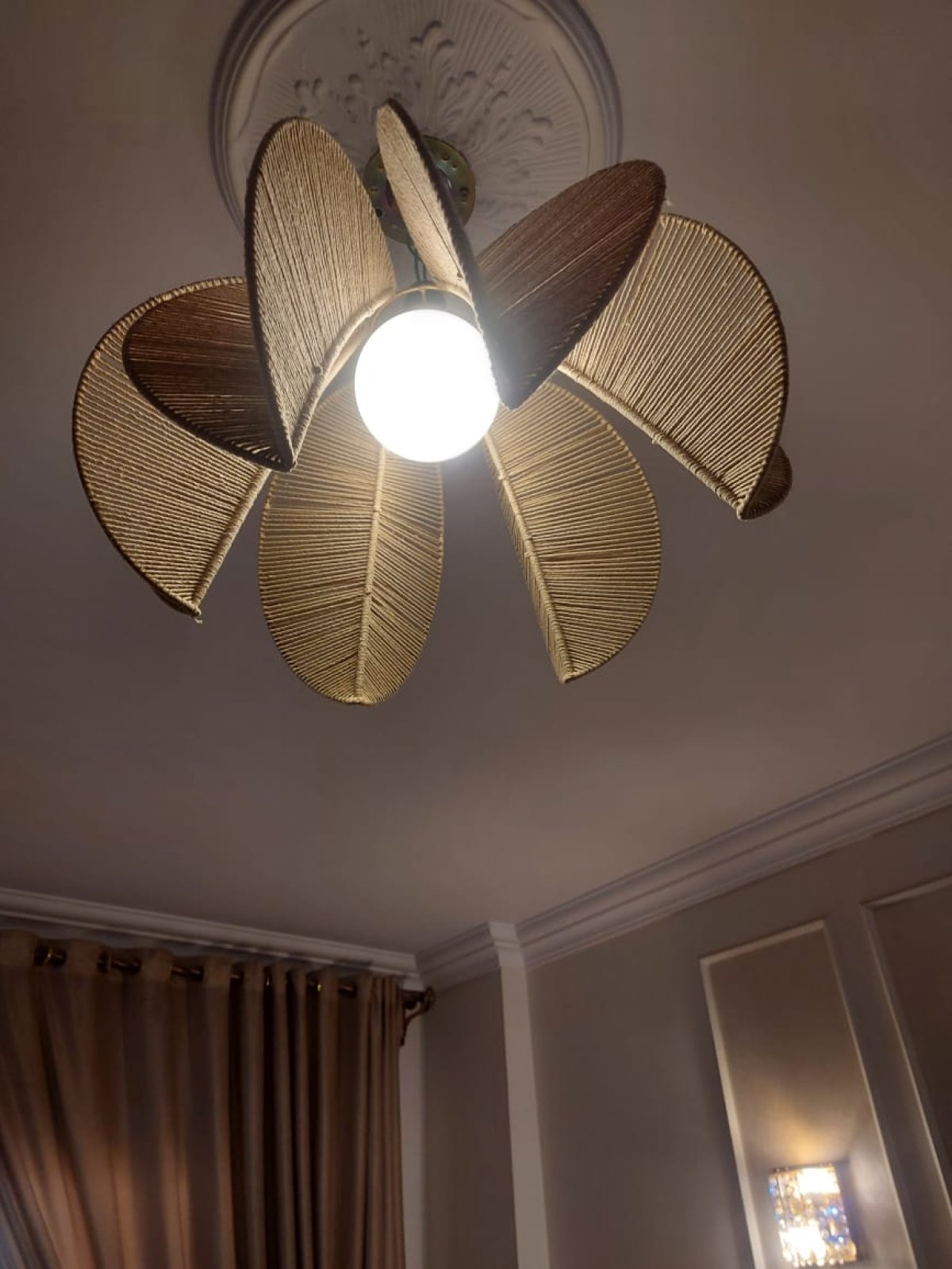 نجفة مكرمية بشكل الموزه شكل وديكور تحفة واضائة مناسبه جدا مقاس :٤٠ سم