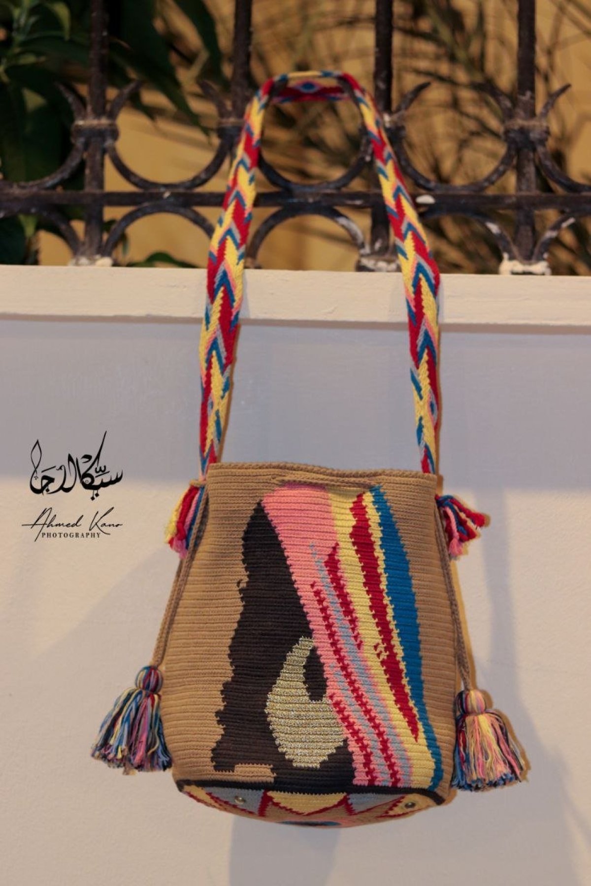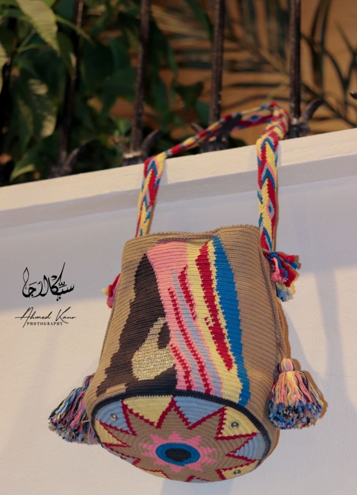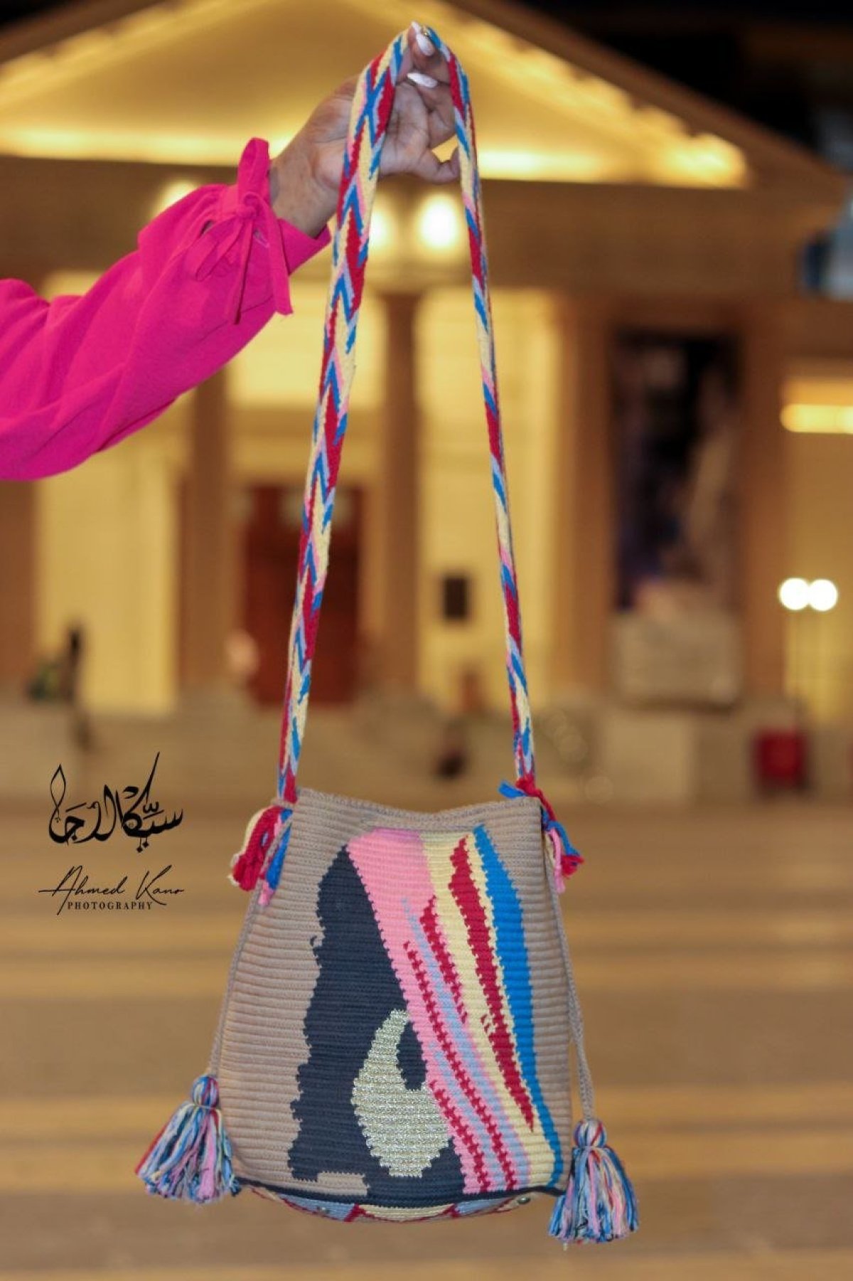 حقيبة موتشيلا 100% صناعة يدوية الطول 30 سم وقطر القاعدة 25 سم الخامة: خيط اكريليك ملمس القطن بألوان ثابته وزاهيه يمكنك تخصيص الألوان والحجم