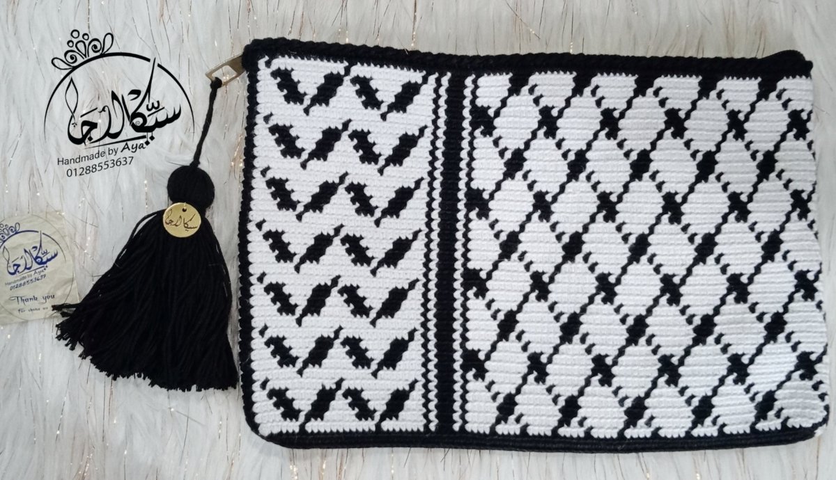 مقاس الكلاتش 30سم * 20سم الخامة خيط تركي أكريليك ناعم ملمس القطن متاح التنفيذ بألوان ومقاسات أخري