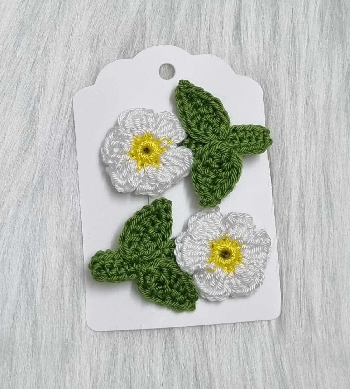 توكة كروشيه يدوية بتصميم ورد أبيض ناعم ولمسة ربيعية مبهجة مصنوعة بإتقان من خيوط كروشيه قطنية، بتفاصيل رائعة لورود بيضاء صغيرة مع مركز أصفر مشرق وأوراق خضراء بارزة تضيف لمسة من الحيوية والرقي توكة مثالية للبنوتات في المناسبات أو الخروجات اليومية، وهدية أنيقة لكل اللي بيحبوا التفاصيل الناعمة والستايل الطبيعي