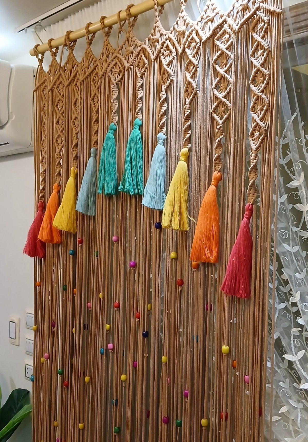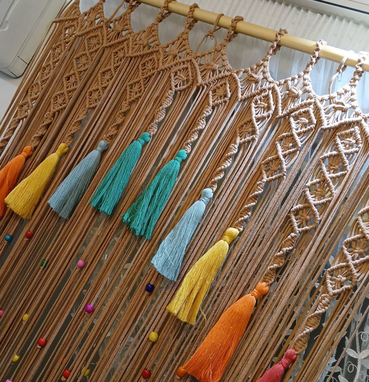 ستارة من خيط الكوردون الممتاز لسهول التنظيف مع خيوط مكرمية المحلول التركي مقاس ١٠٠×٢٣٠ سم