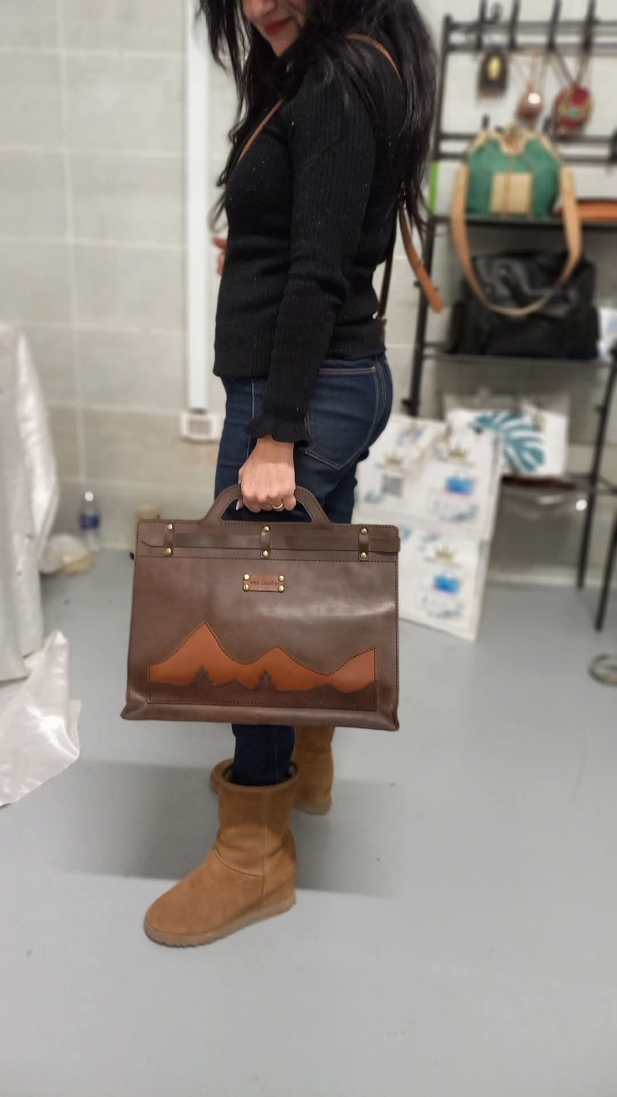شنطه جلد طبيعى هاندميد تصلح للملفات او لابتوب رسمه كريسماس من ااجلد الوان بنى وهافان أبعاد ٤٠ × ٣٨ سير للغلق يد صغيره