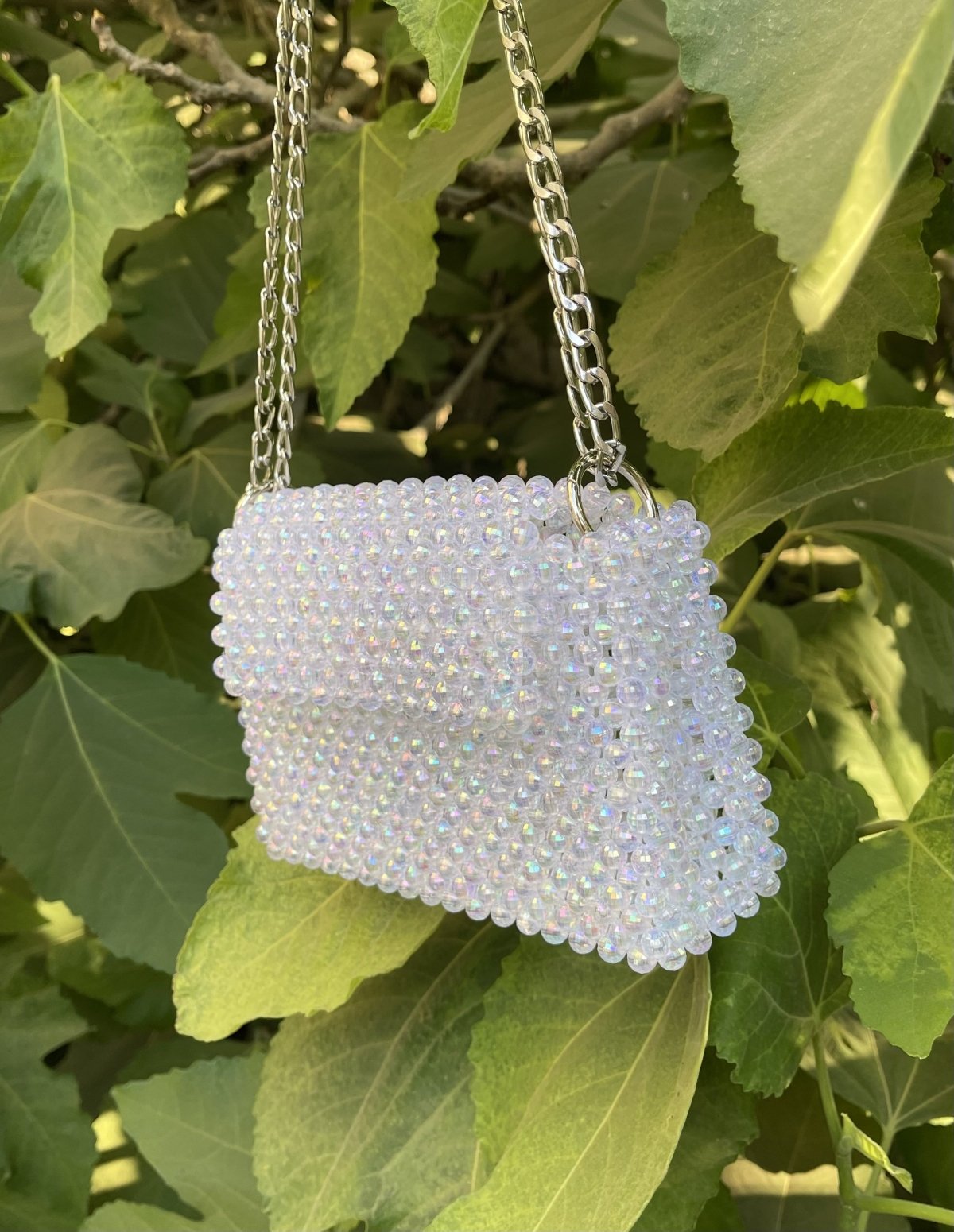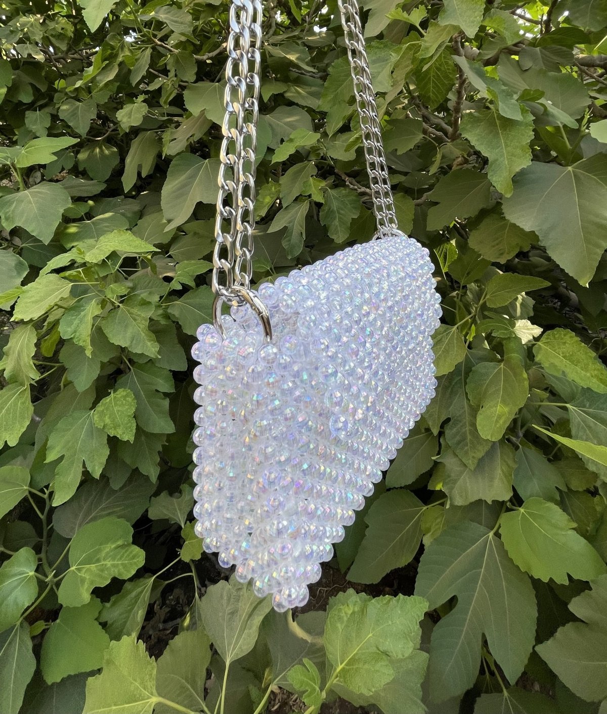 شنطة من الكريستال البلاستيك الشفاف الذى يعطى ألوان الطيف بلونها الرائع مع حزام فضى وحلقات من المعدن الذى يحتفظ بلونه مع قفل مغناطيس للغلق تكفى ٢ موبايل و محفظة وباور بنك ومفاتيح الطول ١٣سم العرض ٢٠سم العمق ٦ سم