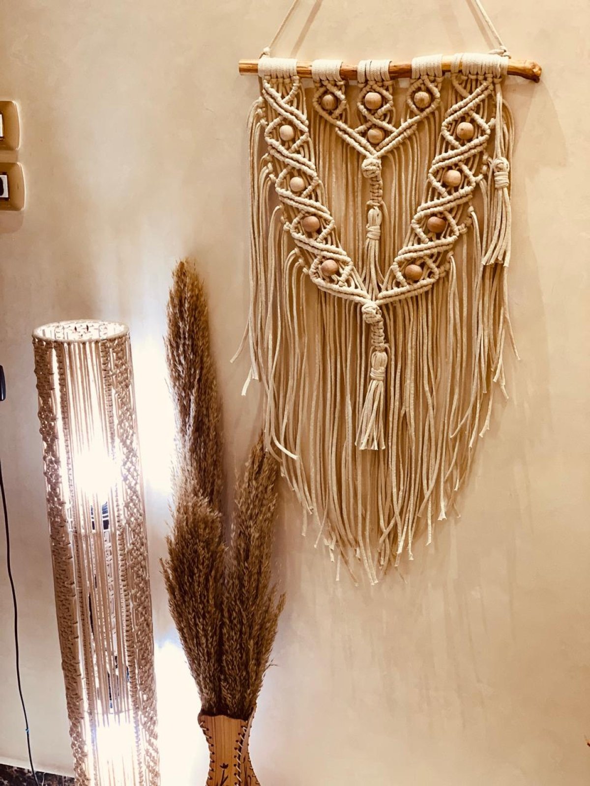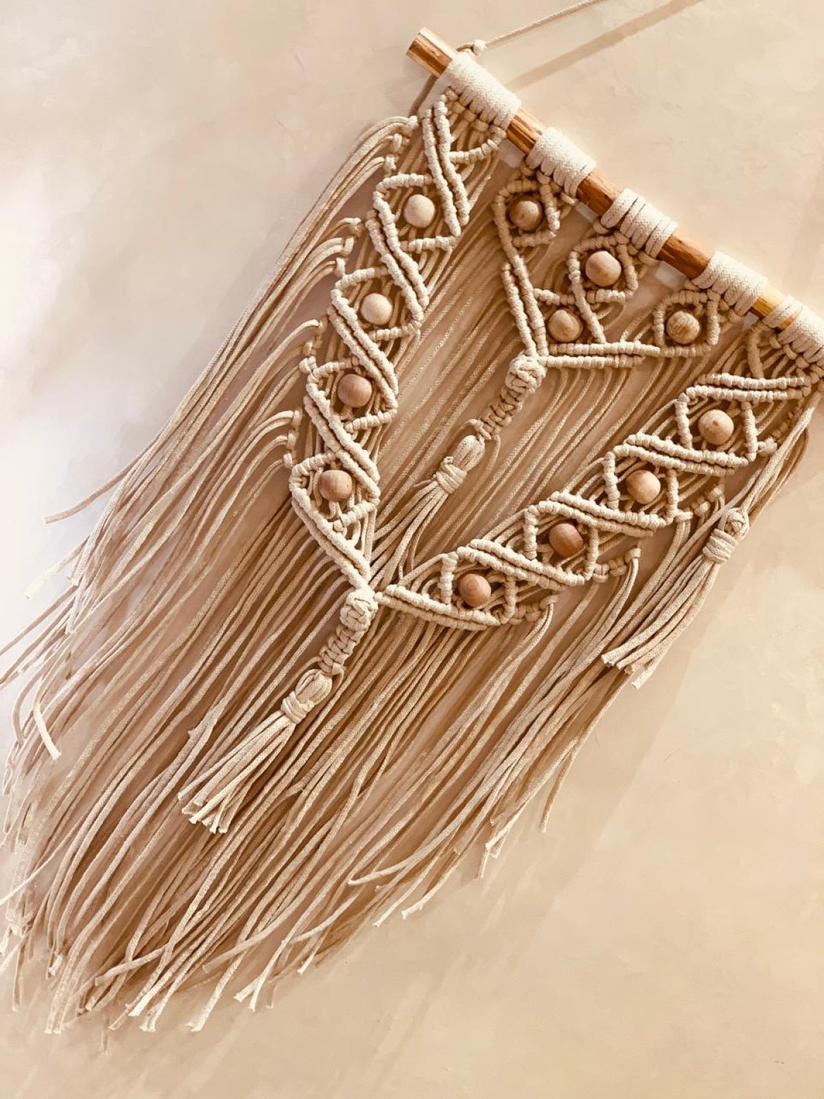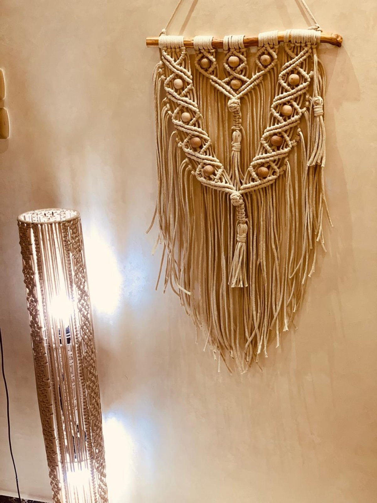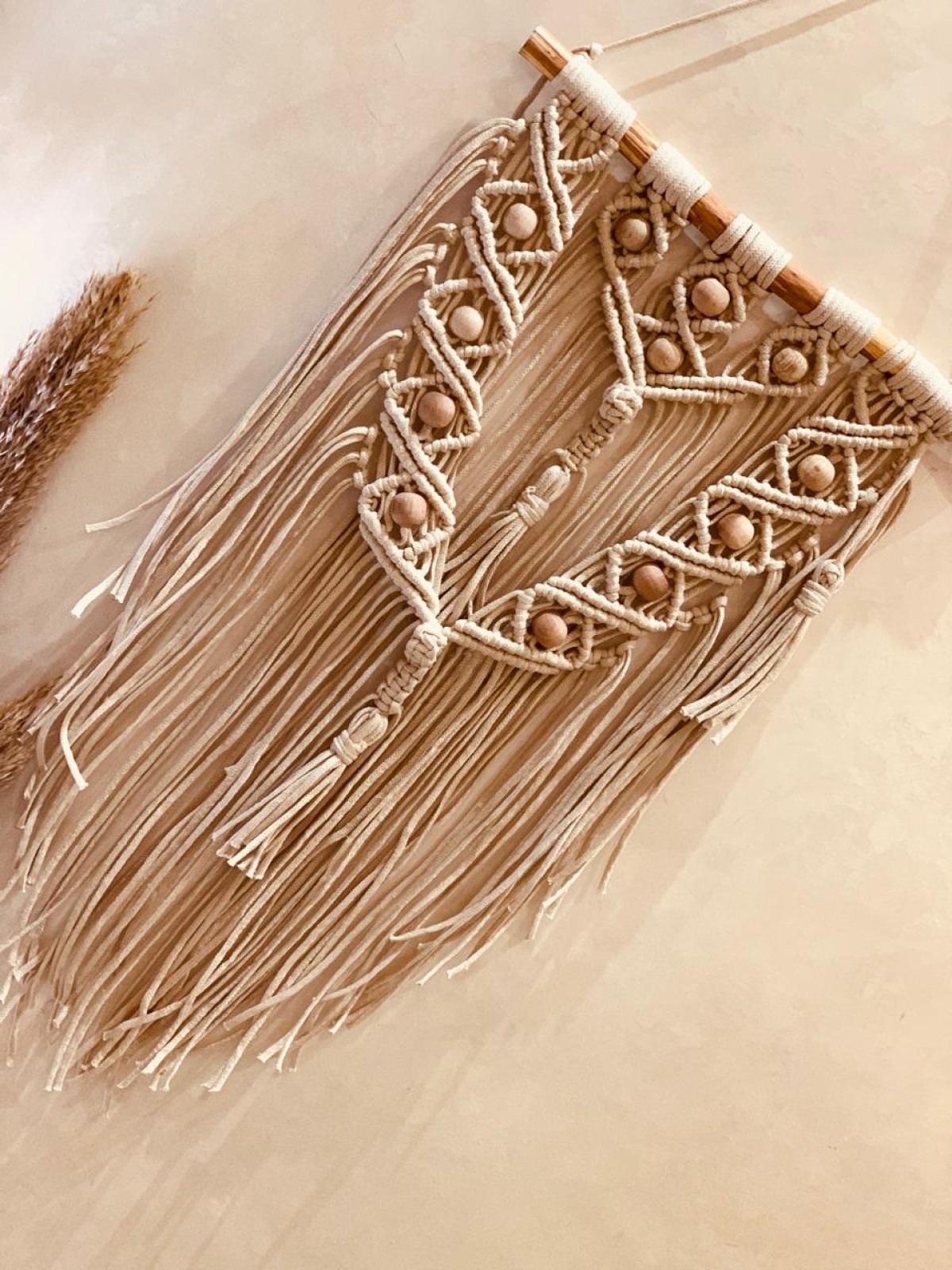 معلقه مكرميه مقاس 50سم موديل مميز مزود بالخرز الخشب لونها مميز ويناسب اى مكان