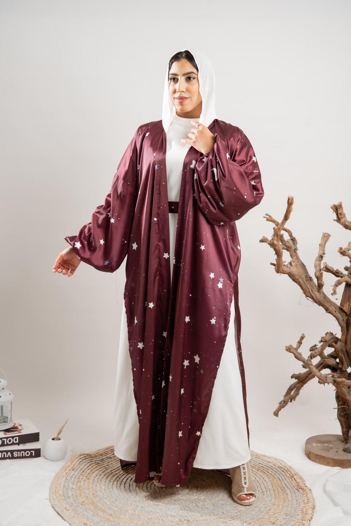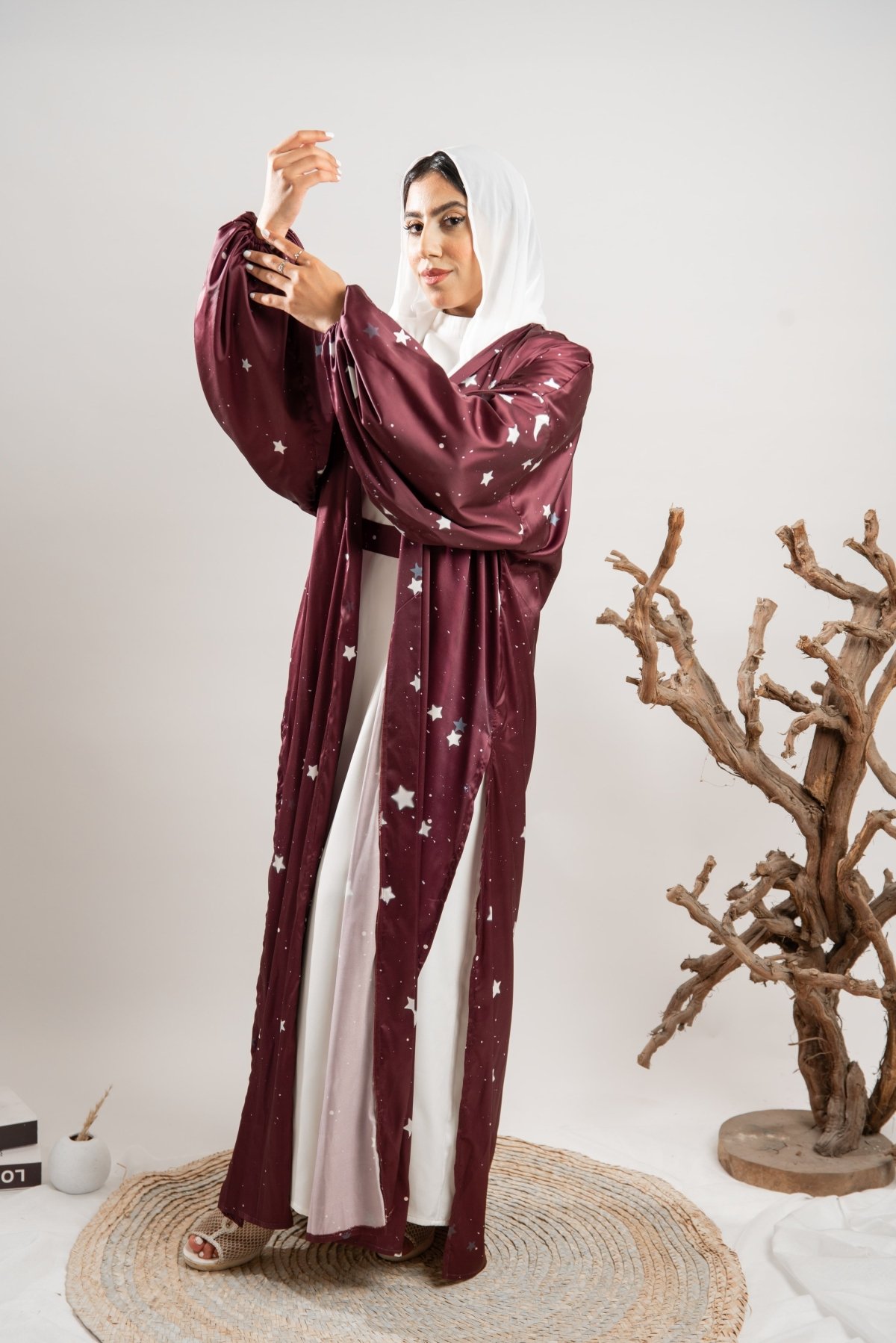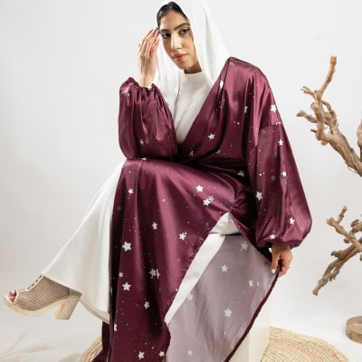 كارديجان بشكل انسيابي وناعم وبرسمه ستان كم . لونة بنفسجي وان سايز يلبس ل 85ك