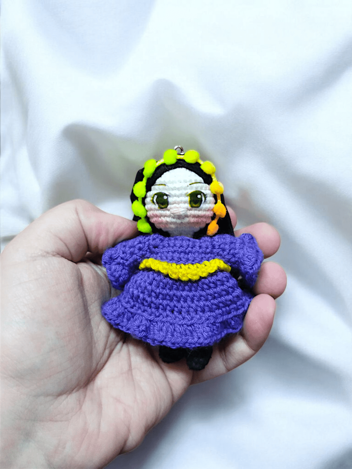 ميدالية فلاحة صغيرة اللون موف ٨ سم عيون ستيكر طرحة قماش