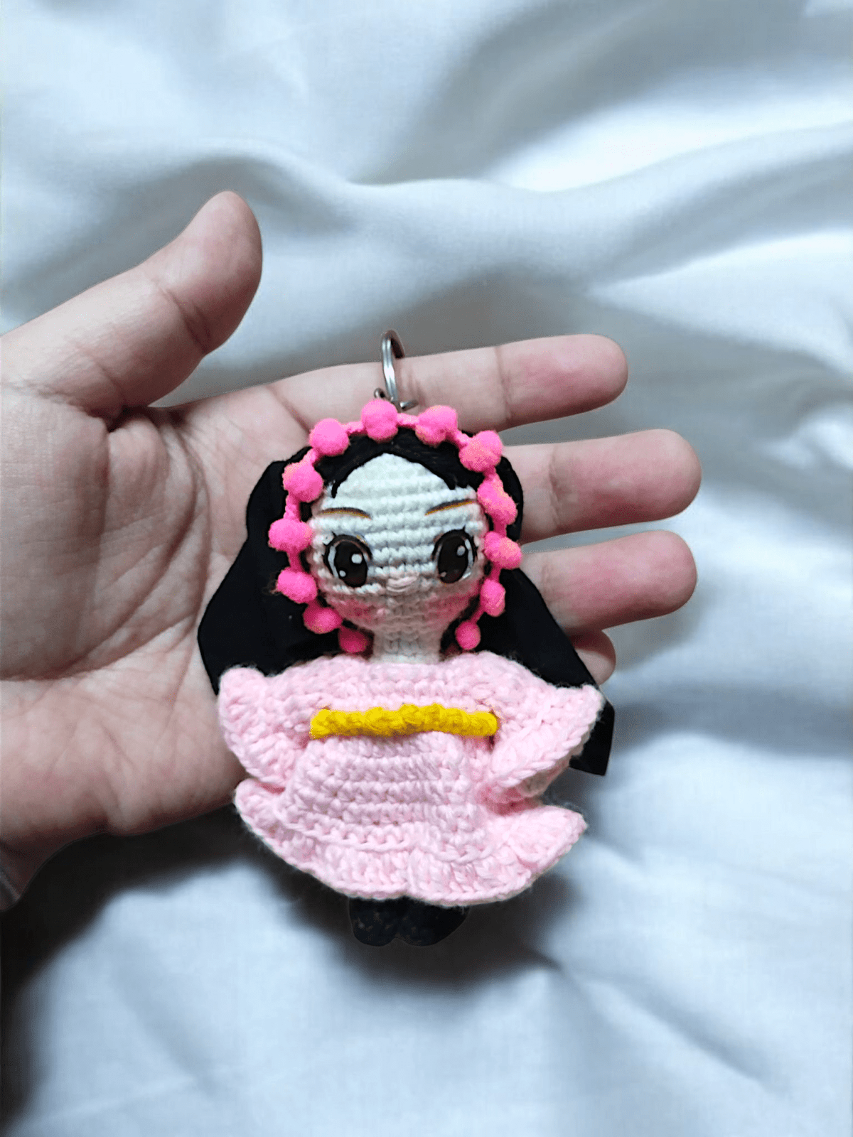 ميدالية فلاحة صغيرة اللون روز ٨ سم عيون ستيكر طرحة قماش