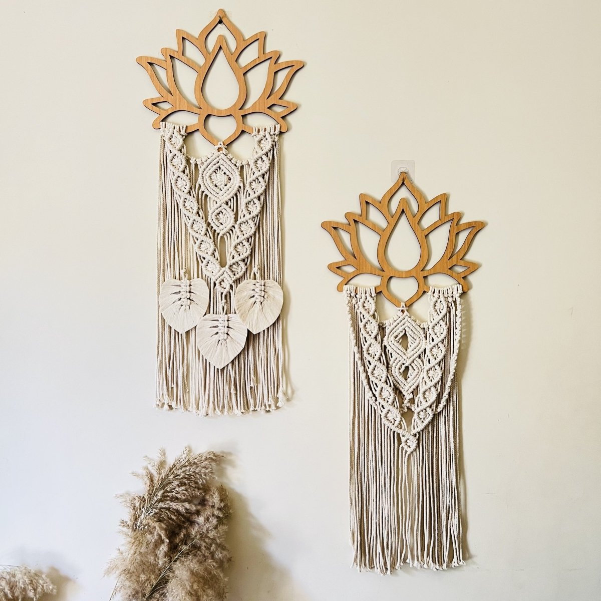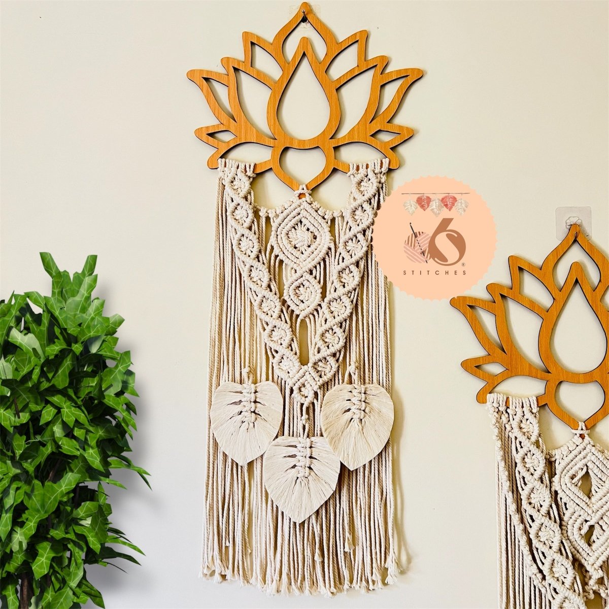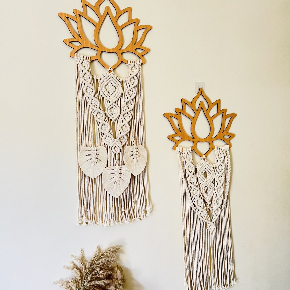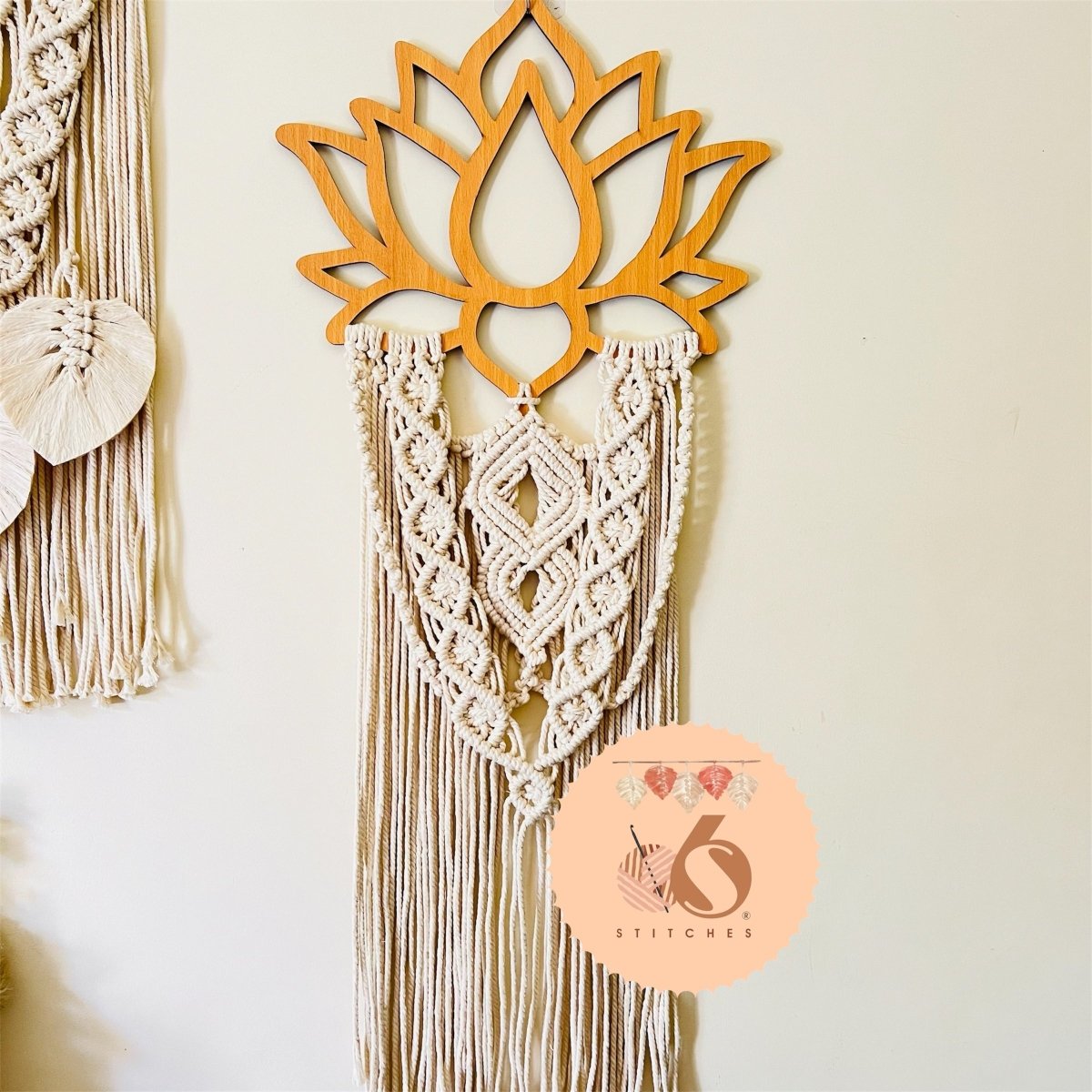معلقة خشب بالمكرميه على شكل لوتس ٤٠ * ١٠٠ سم