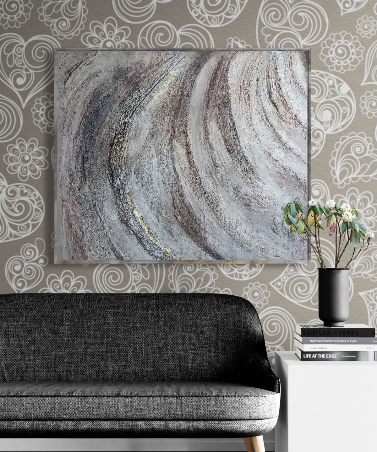 تابلوه كانفس هاند ميد بارز مع لمسة ورق الذهب مقاس 100*120