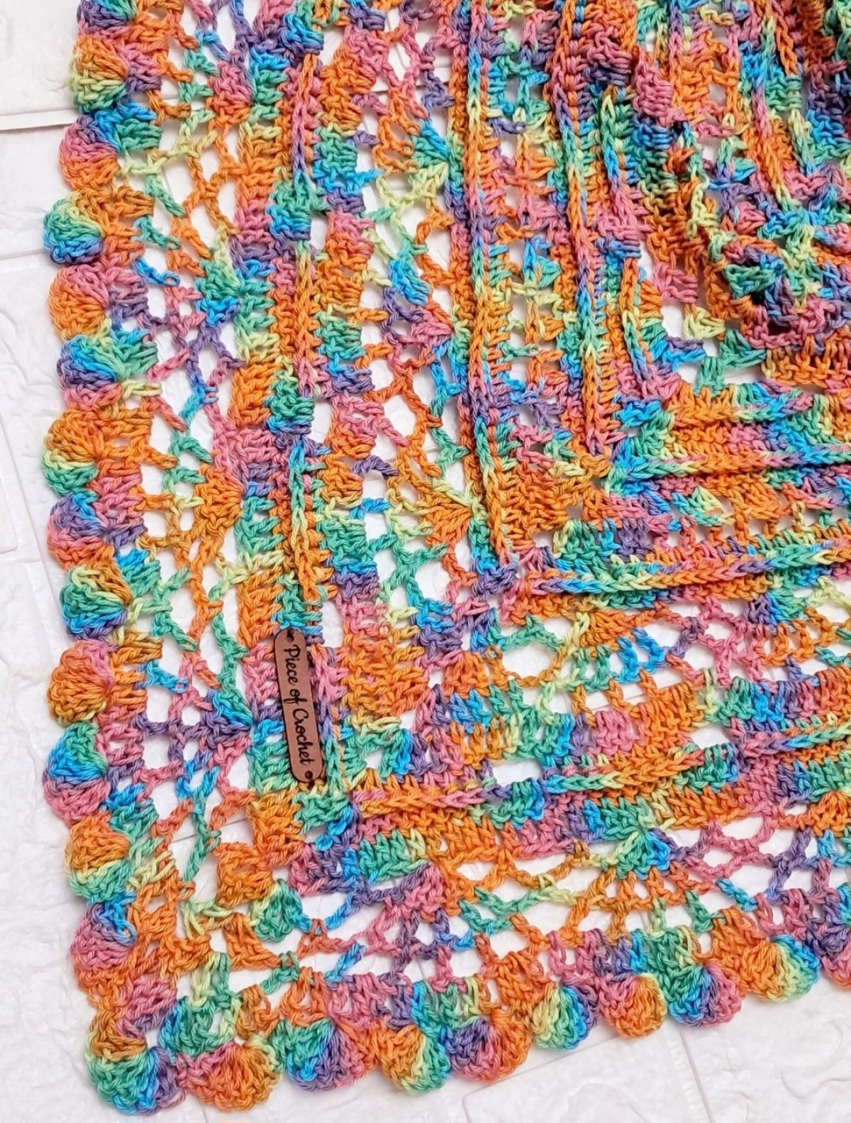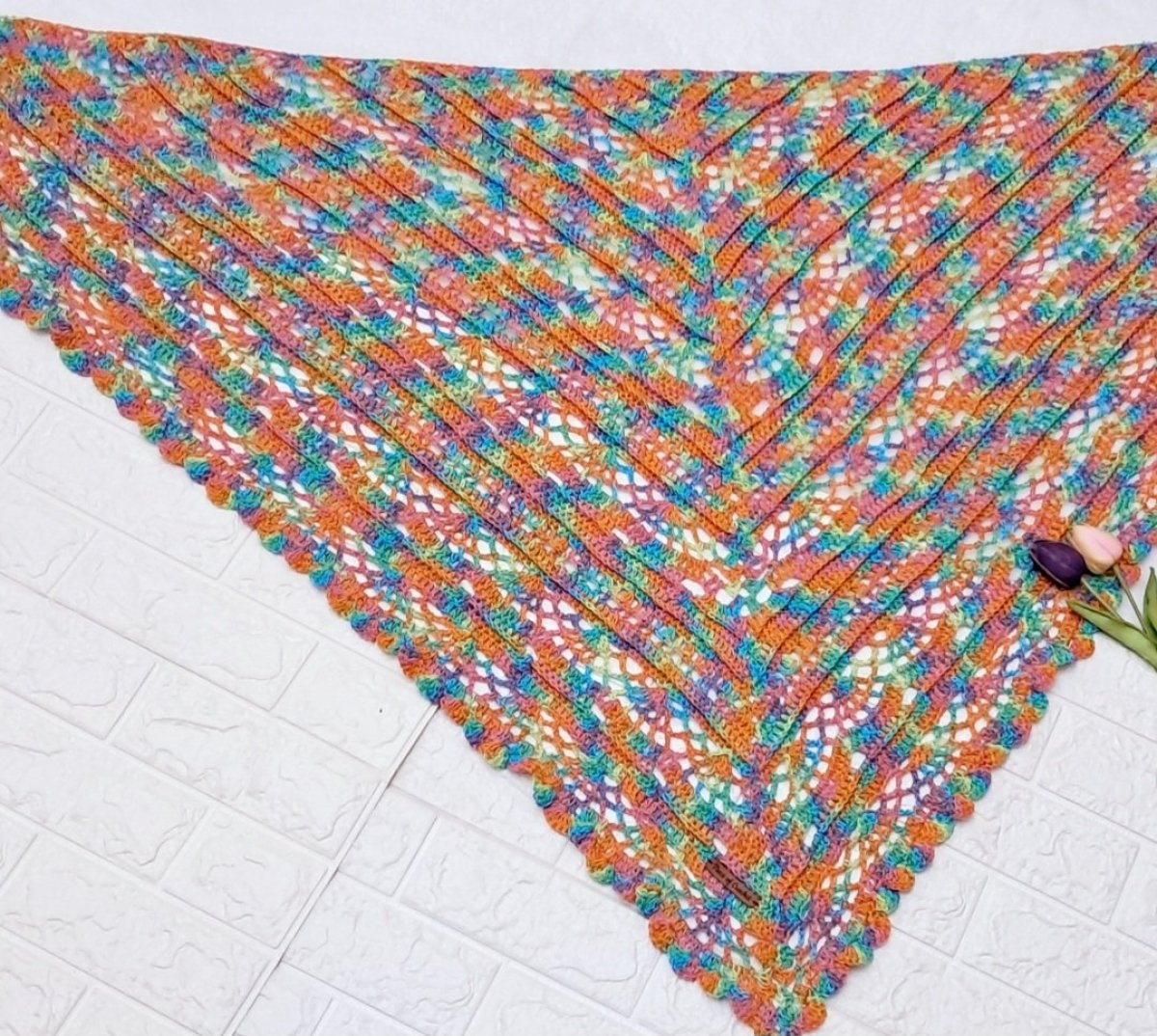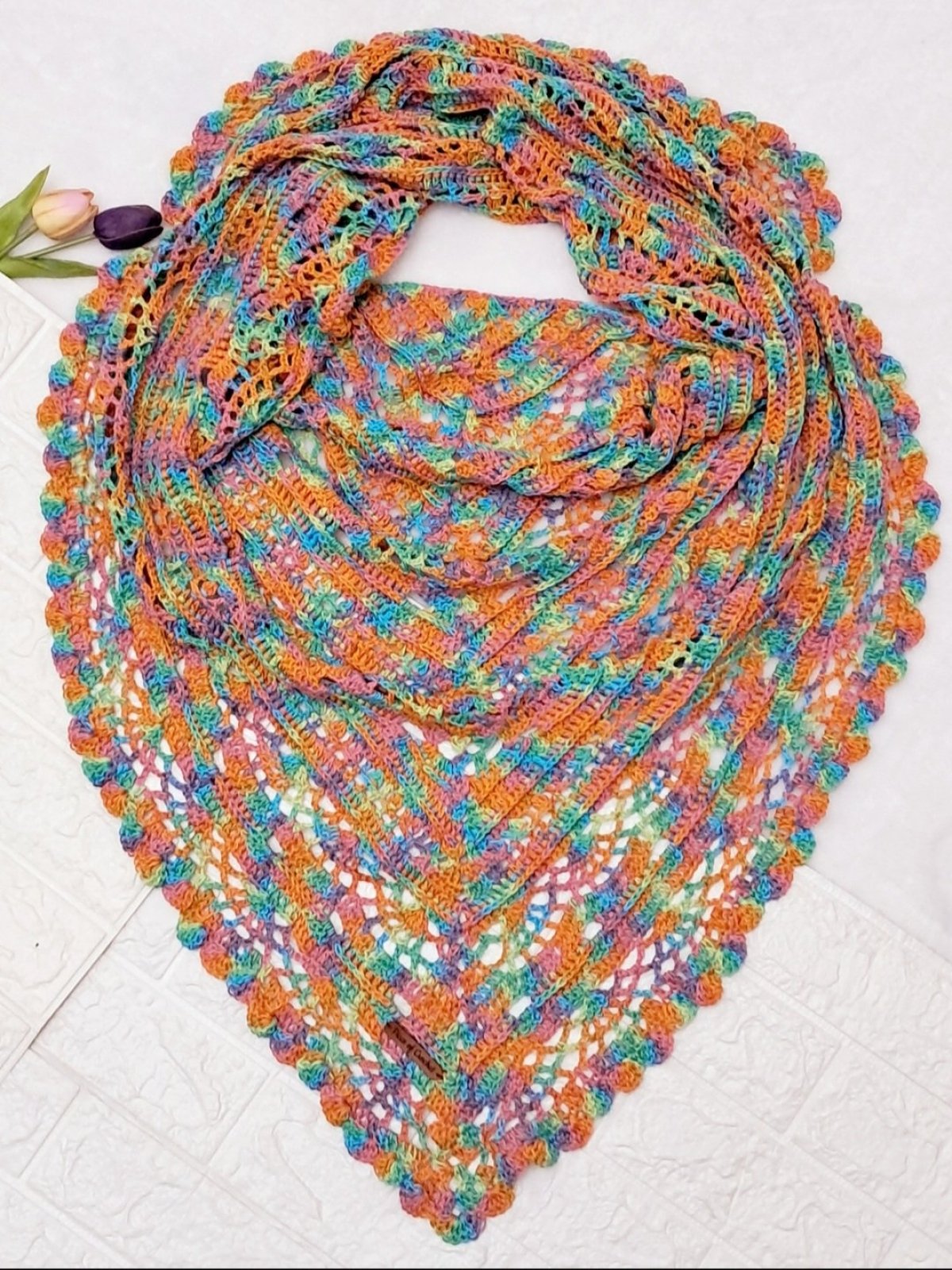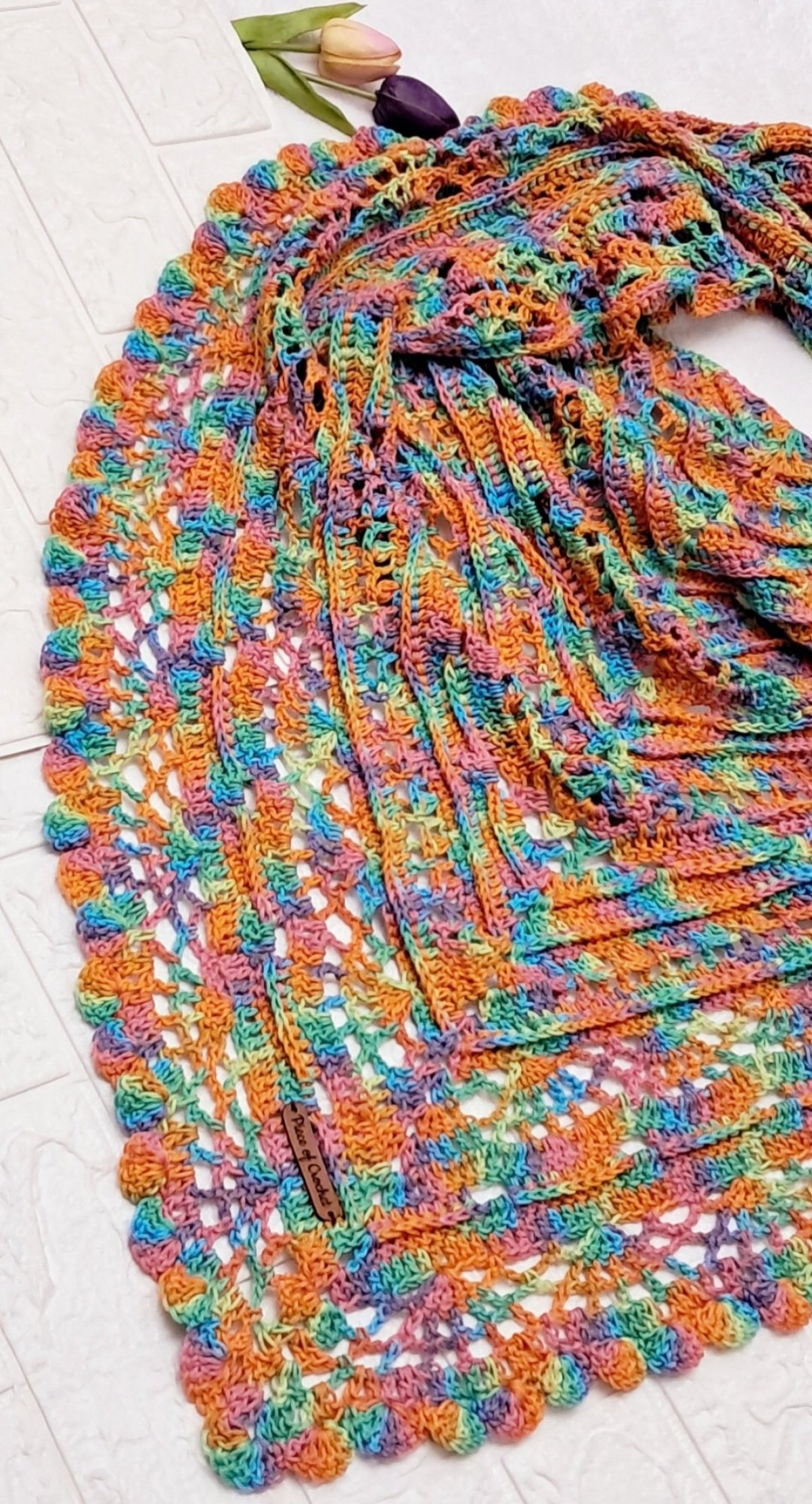شال كروشية مشغول بخيط قطن ١٠٠% ناعم وشيك ومناسب لكل فصول السنة . الشال بخامة مثالية لأصحاب البشرة الحساسة تجاه الصوف . مقاس الشال من اعلى المنتصف حتى زاوية الشال من تحت ٩٠ سم . متاح تنفيذ الشال باى مقاس وبالوان كتير مختلفه سواء سادة او جنجاه .