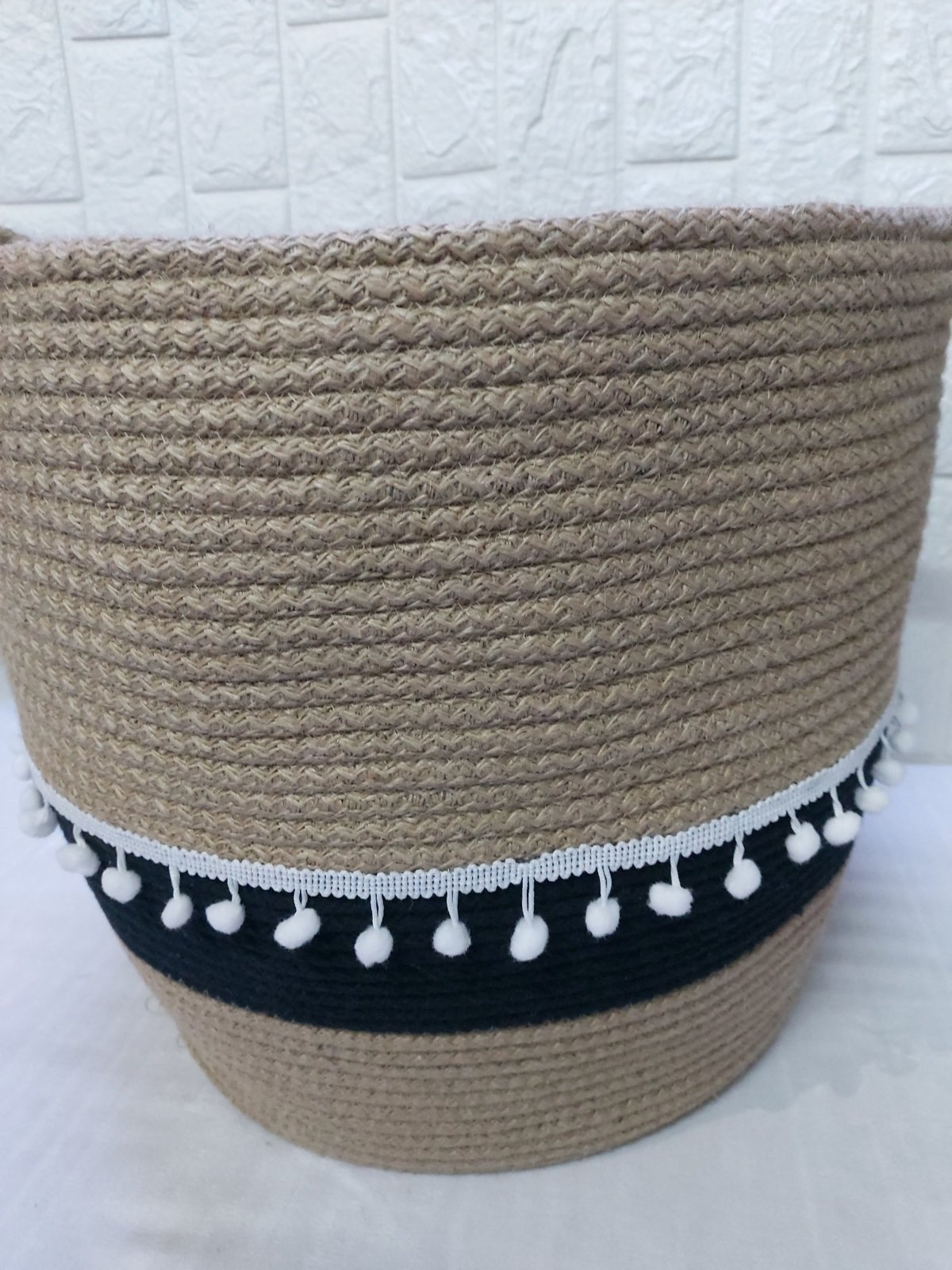 باسكت او سله منظمه مصنوع من حبال الخيش والقطن مقاس كبير متعدد الاستخدامات يمكن استخدام كسلة غسيل ، ل العاب الاطفال ، للتخزين المقاس القطر السفلى ٣٥ القطر العلوى ٤٥ الارتفاع ٣٧ يمكن تغيير الالوان حسب الطلب