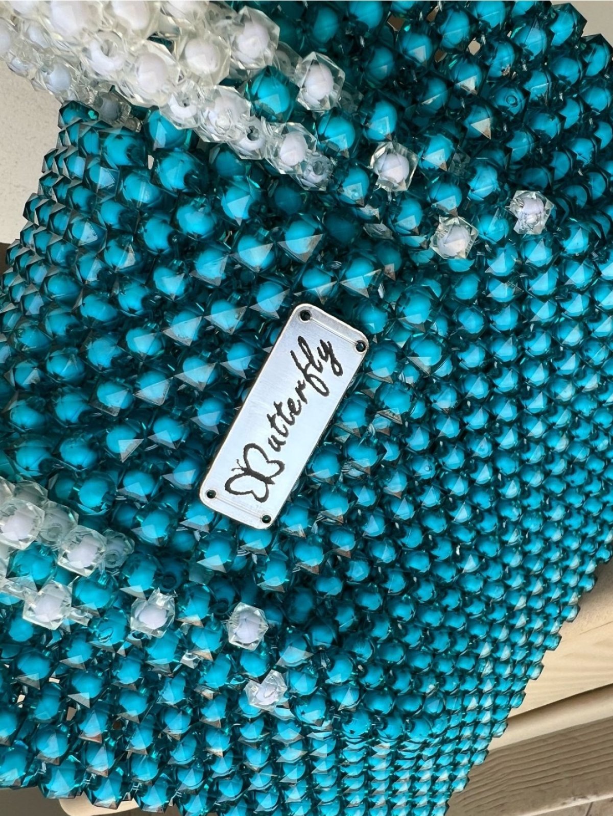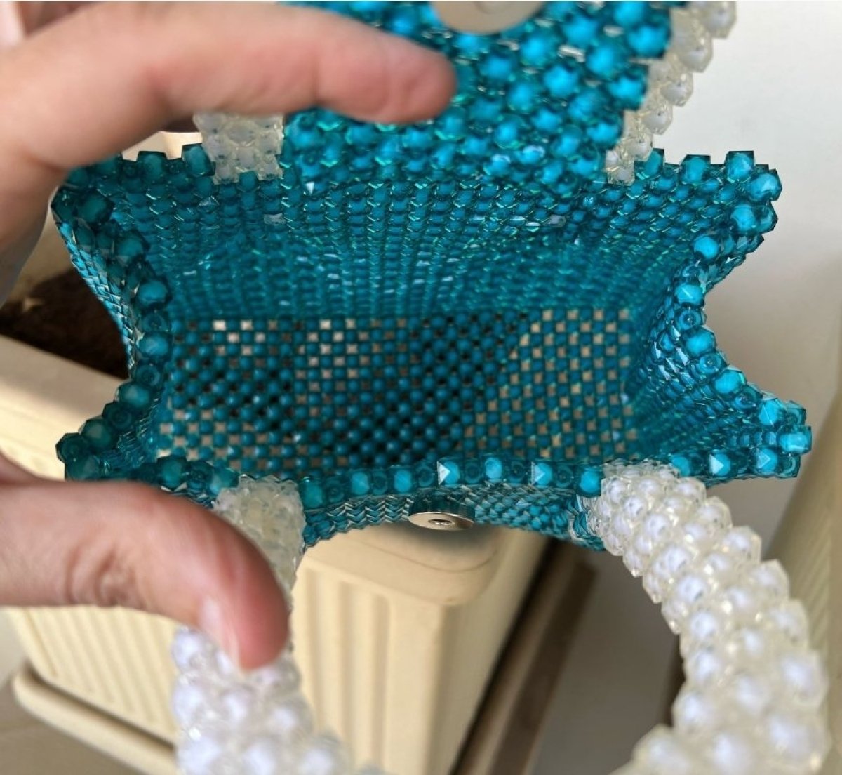 شنطه كريستال مصنوعه من الكريستال الملون مقاساتها ... القاعده 22*10 طول الشنطه بدون اليد 18 سم و طولها باليد 28 سم
