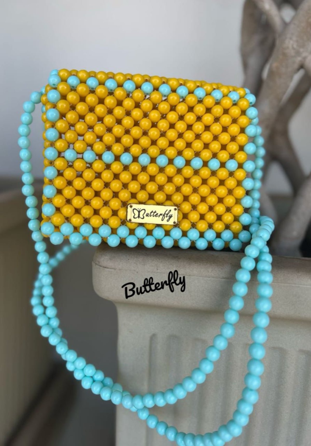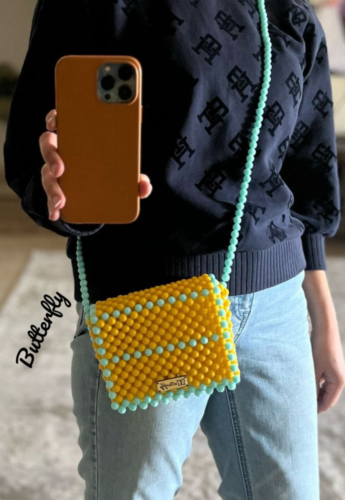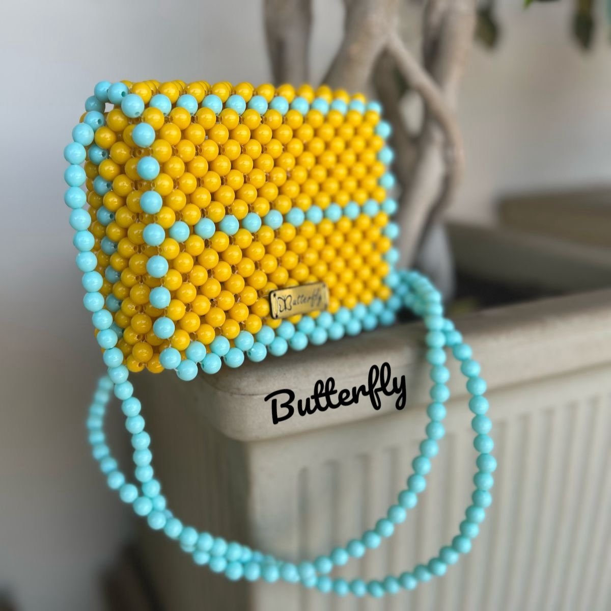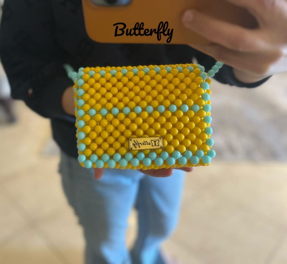 شنطه خرز مصنوعه من الخرز الملون مقاساتها ... الطول ١٣سم عرض ١٦سم عمق ٥سم