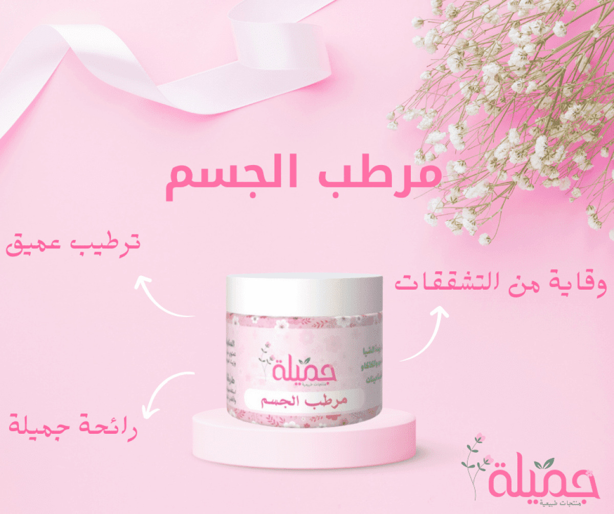 دللي جسمك بترطيب عالي ورائحة أنثوية مع مرطب الجسم من جميلة❤️ 🌸قوام كريمي سهل الفرد والامتصاص غنية بزبدة الشيا الافريقية وزبدة الكاكاو🌸 الطبيعية وزيت اللوز والجوجوبا والبانثينول والجلسرين. 200جرام