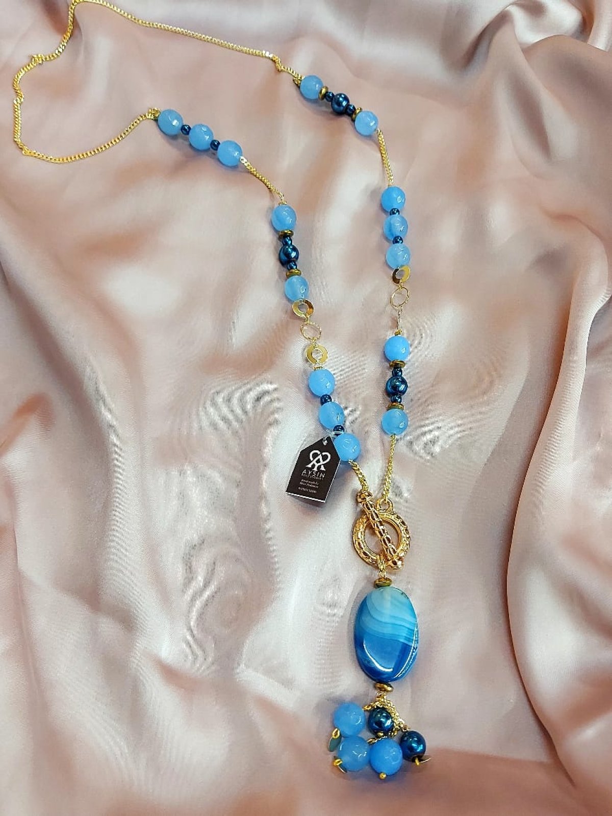 سلسله من الدهب الصينى الجولد من احجار العقيق وفواصل هيماتيت