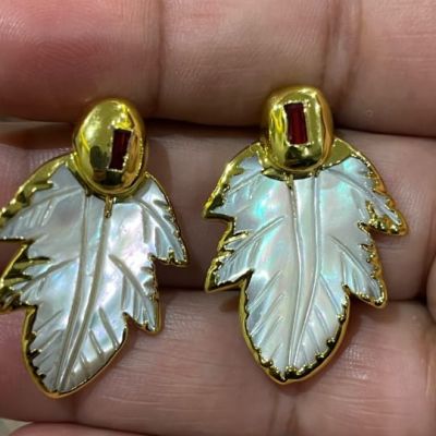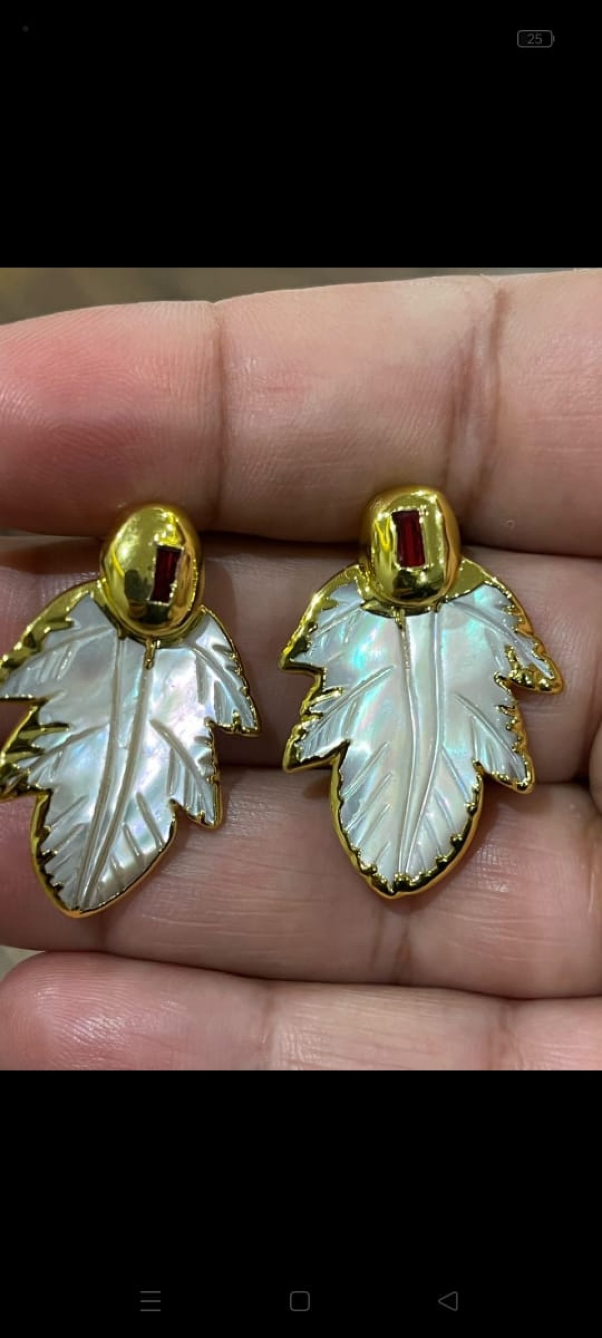 حلق نحاس مطلي دهب ٢١ من الصدف الطبيعي وفص عقيق احمر
