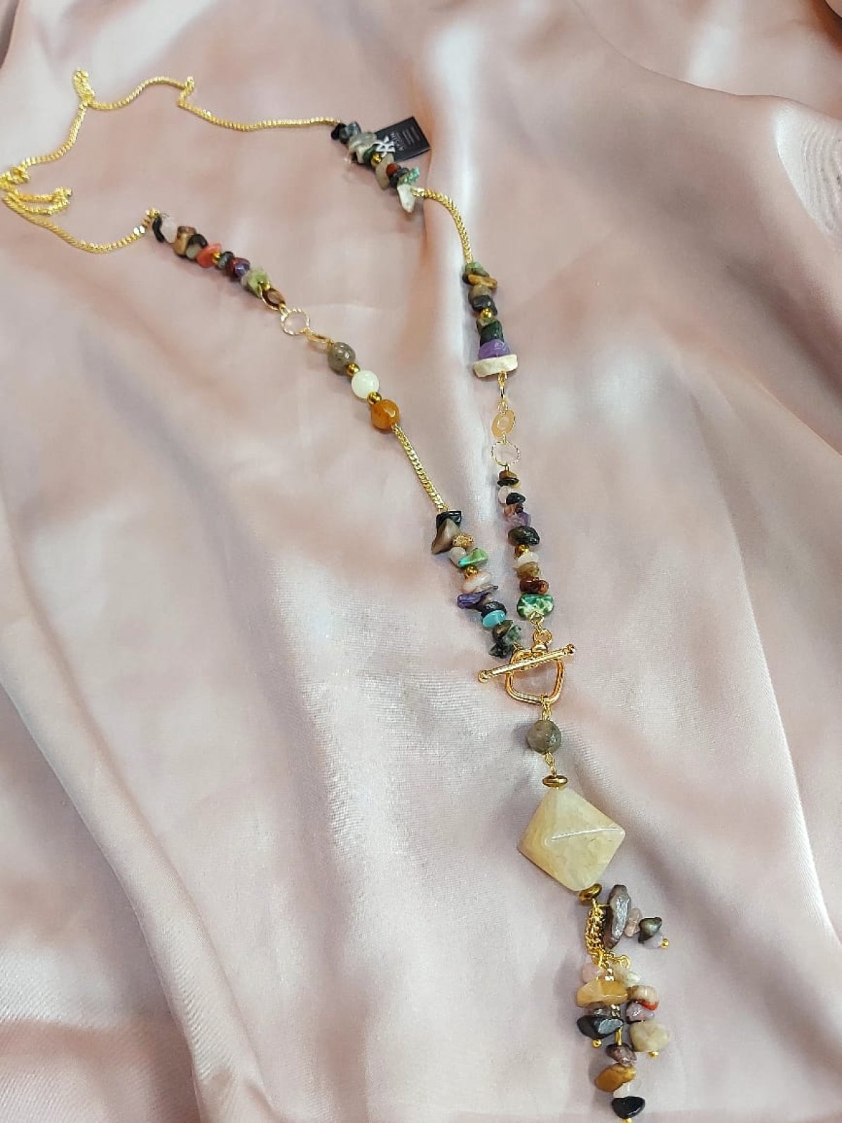 سلسله من الدهب الصينى الجولد من احجار العقيق وفواصل هيماتيت
