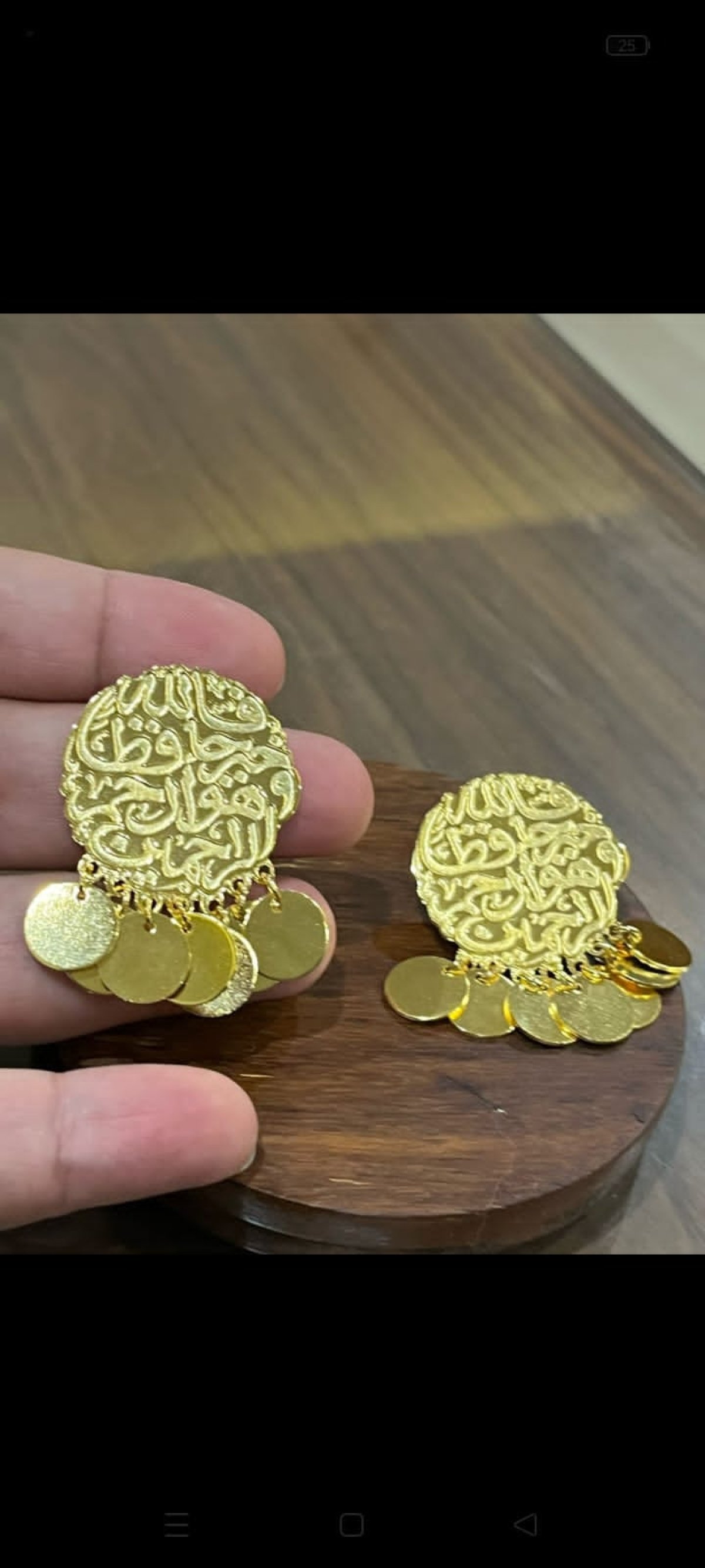 حلق نحاس شغل حفر يدوي مطلي دهب ٢١ لا يغير لون