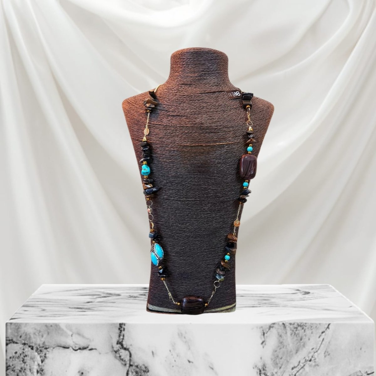 عقد من احجار الجاسبر والفيروز وفواصل هيماتيت والسلاسل والحلقات والاقفال دهب صينى جولد مش بتغير لون متاح اى طول ومتاح عمل انسيال وحلق بنفس الديزاين بنفس الحجر