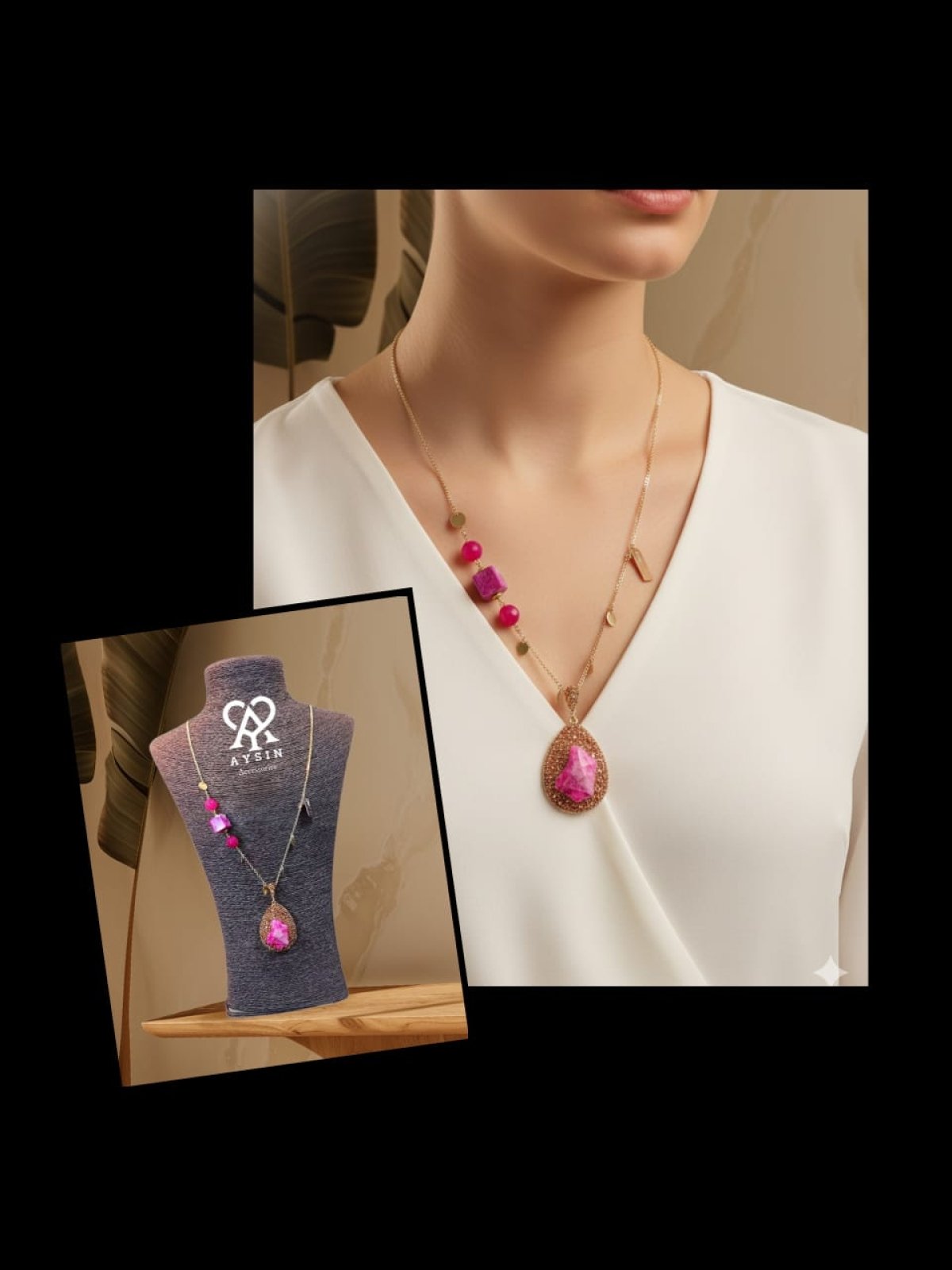 عقد من احجار العقيق والكوارترز ودلايه بفصوص ماركزيت وفواصل هيماتيت والسلاسل والحلقات والاقفال دهب صينى جولد مش بتغير لون متاح اى طول ومتاح عمل انسيال وحلق بنفس الديزاين بنفس الحجر