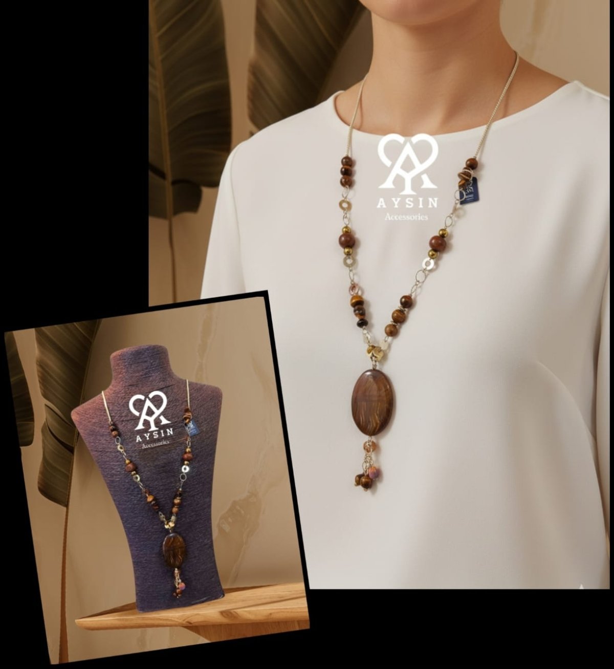 عقد من احجار التايجر آى عين النمر