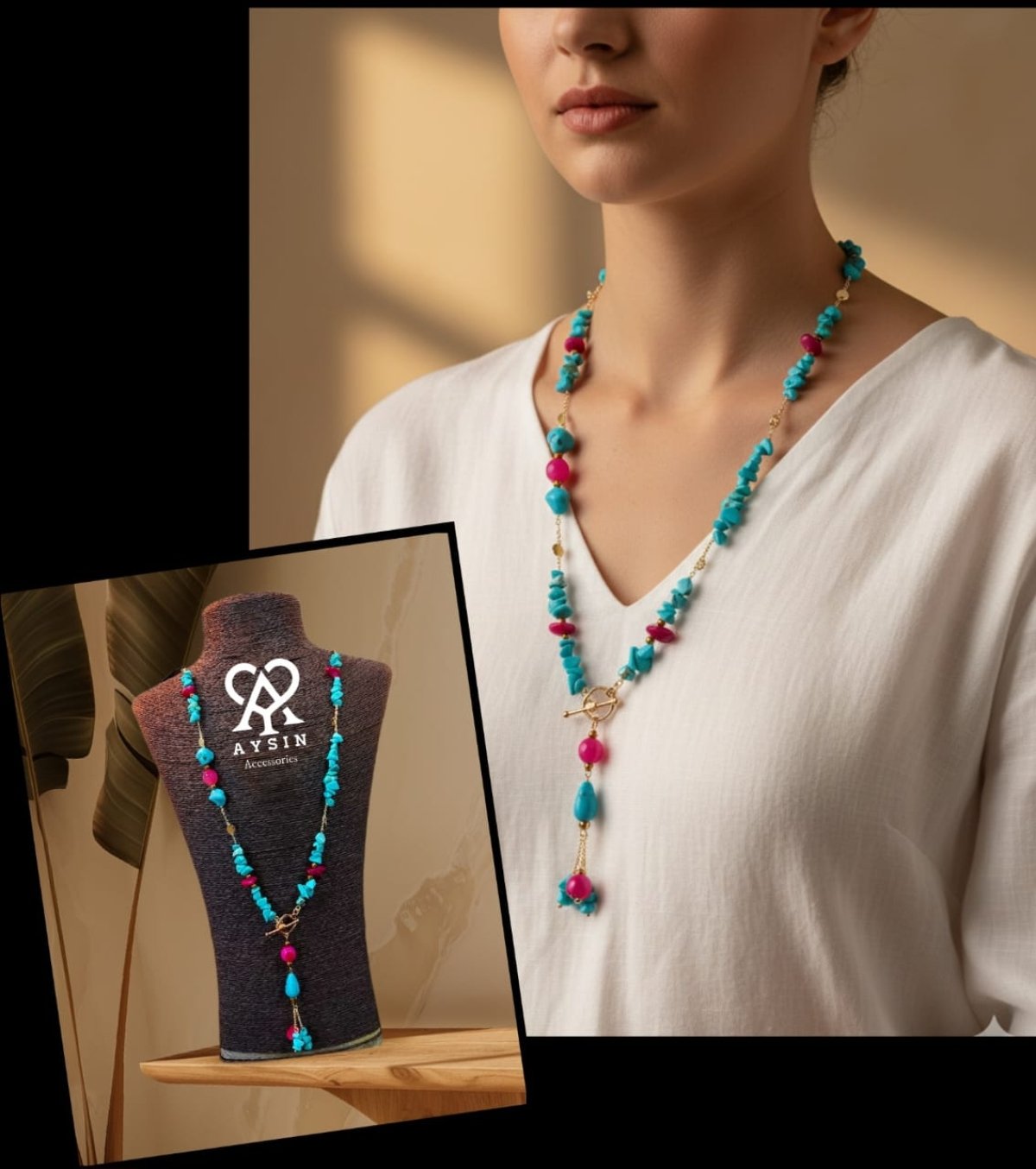 عقد من احجار العقيق والفيروز وفواصل هيماتيت والسلاسل والحلقات والاقفال دهب صينى جولد مش بتغير لون متاح اى طول ومتاح عمل انسيال وحلق بنفس الديزاين بنفس الحجر