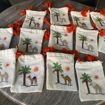 كيس هدايا قماش مطرز – شغل هاند ميد كيس مميز هيضيف لمسة شياكة لأي هدية. • المقاس: 13 × 15 سم • الخامة: قماش قطن مبطن • الرباط: حبل بسيط وسهل الاستخدام • ممكن نعمللك أي تصميم حسب طلبك ينفع للهدايا، المناسبات، توزيع