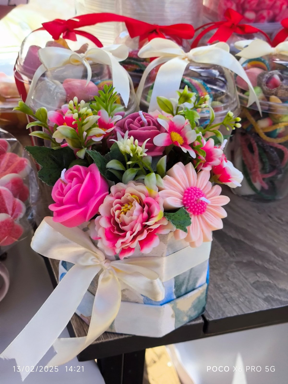 بوكيه ورد من الشمع فيه ٦ شمعات وورد زينه