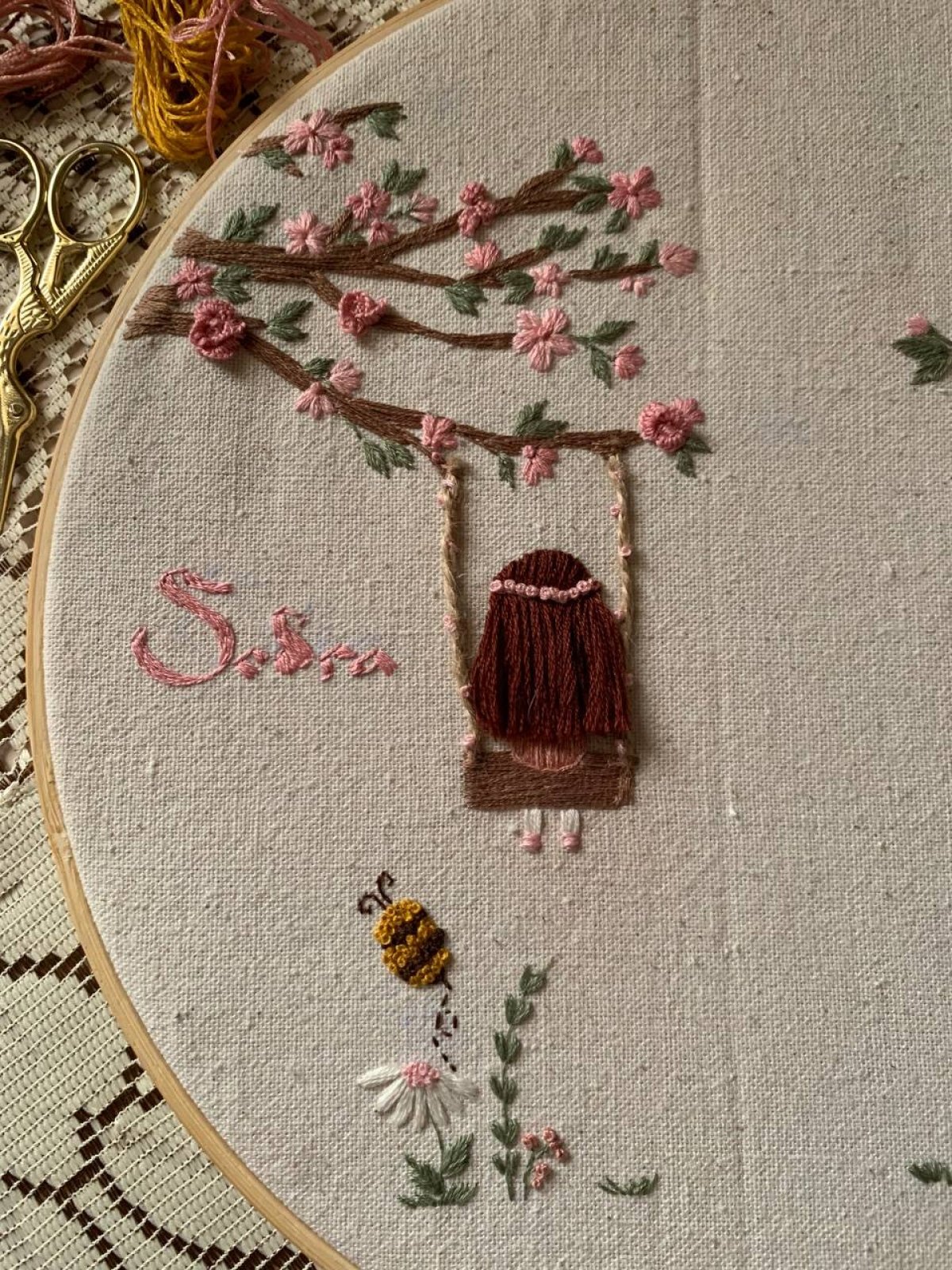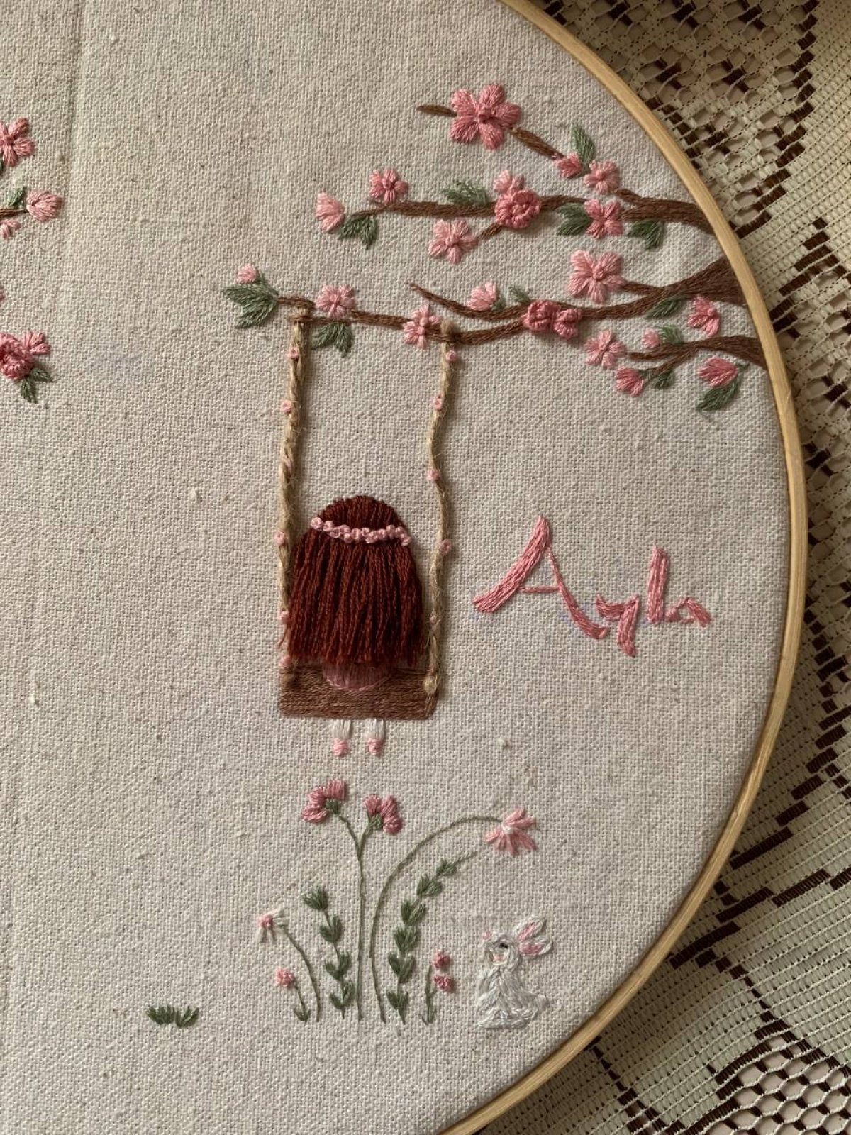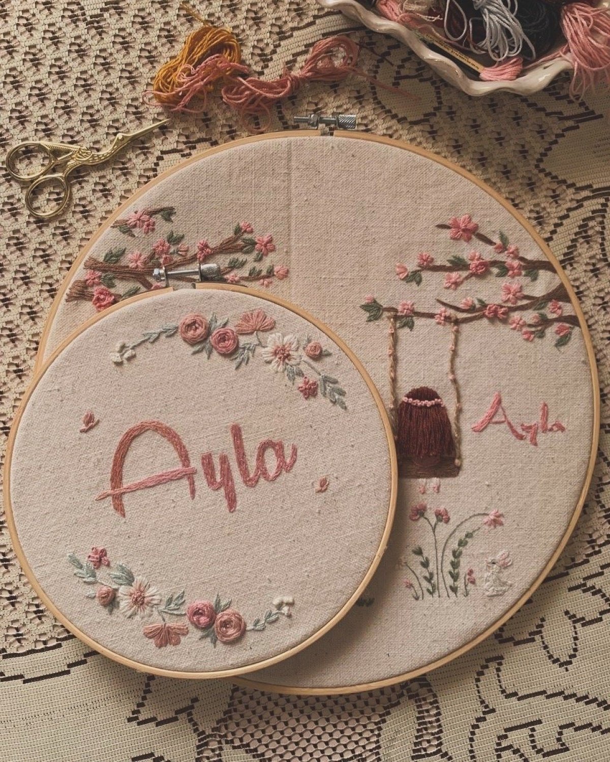 طارة اسم مطرزة (على حسب الطلب) مقاس: ٣٥ متاح تغيير الإسم والألوان الماتريال: خشب
