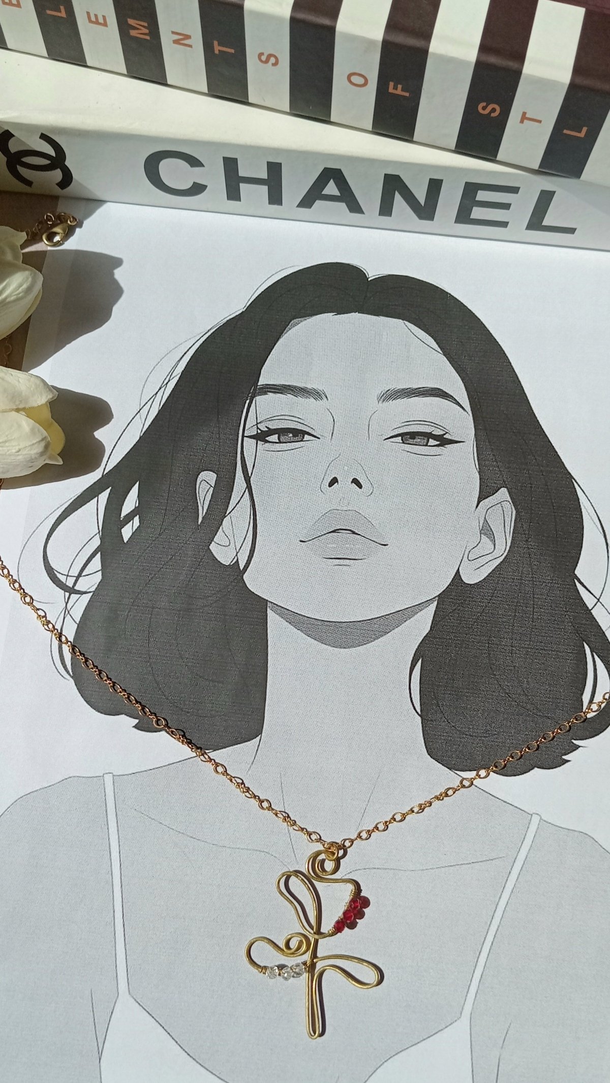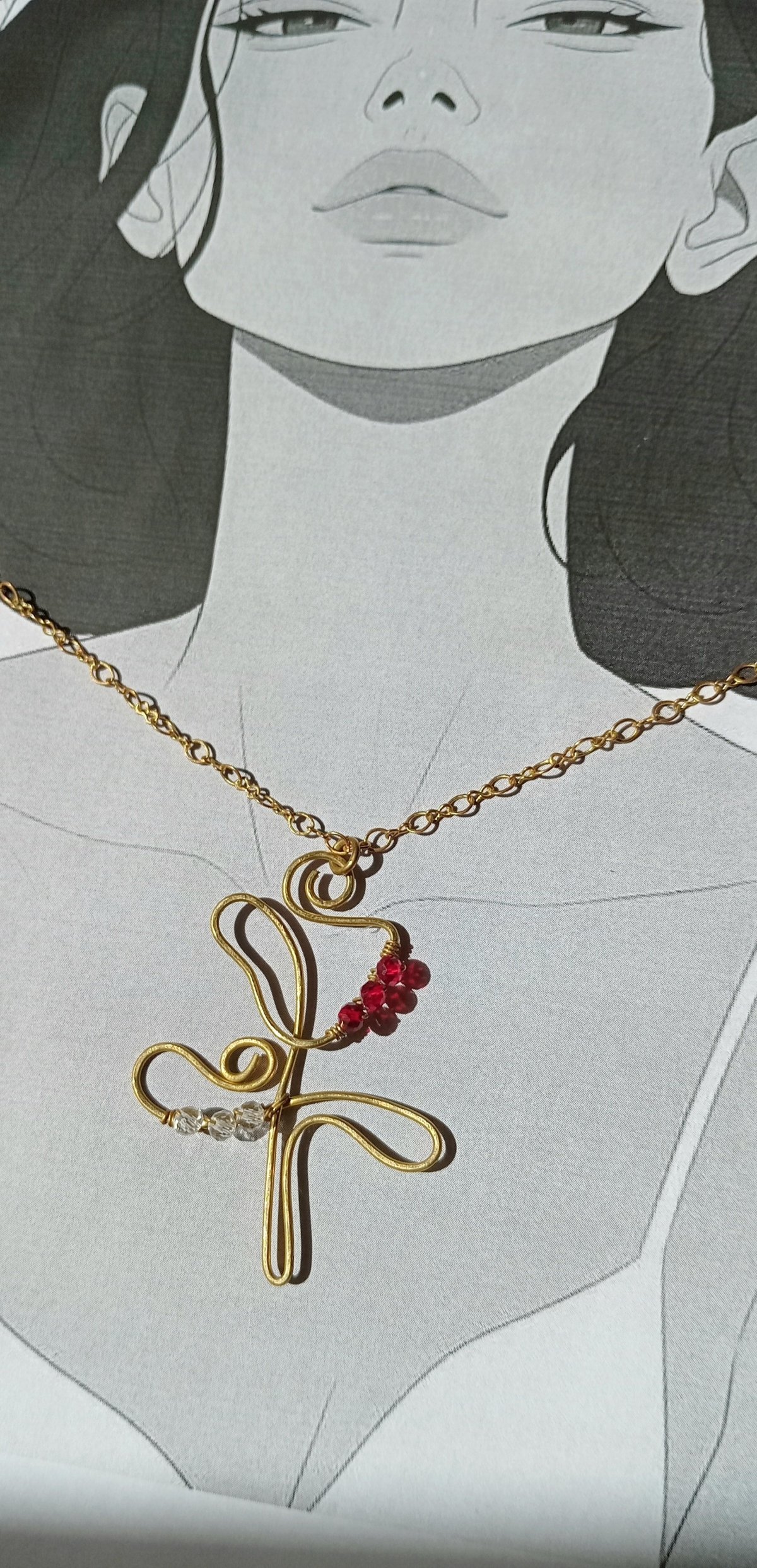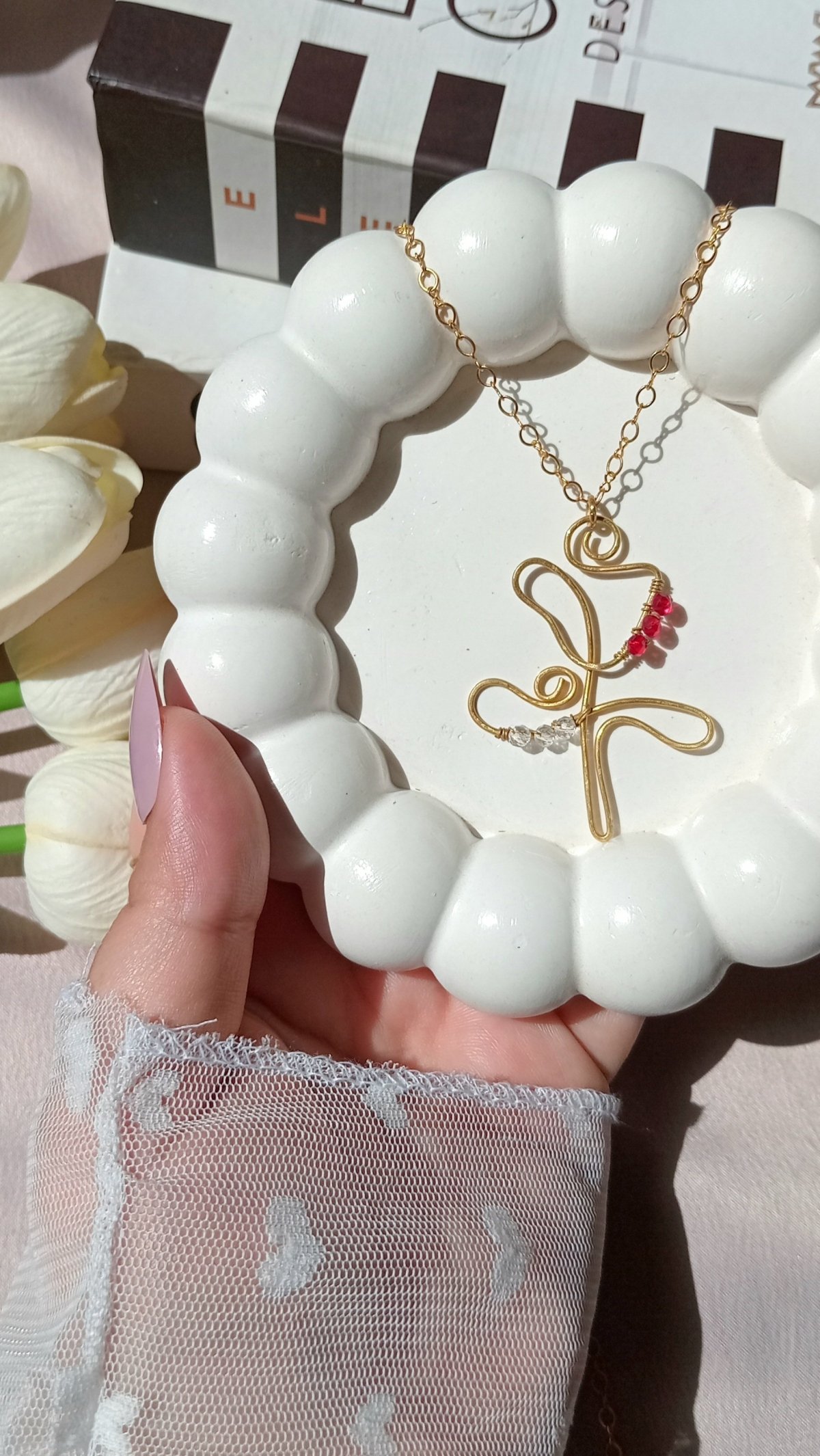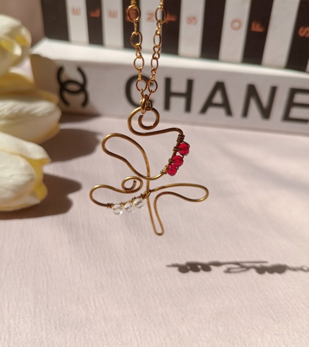 سلسلة ورده نحاس هاندميد بدلايه على شكل وردة مع خرز كريستال النحاس ضد الصدأ الخامات عالية الجودة طول السلسلة ٥٠سم