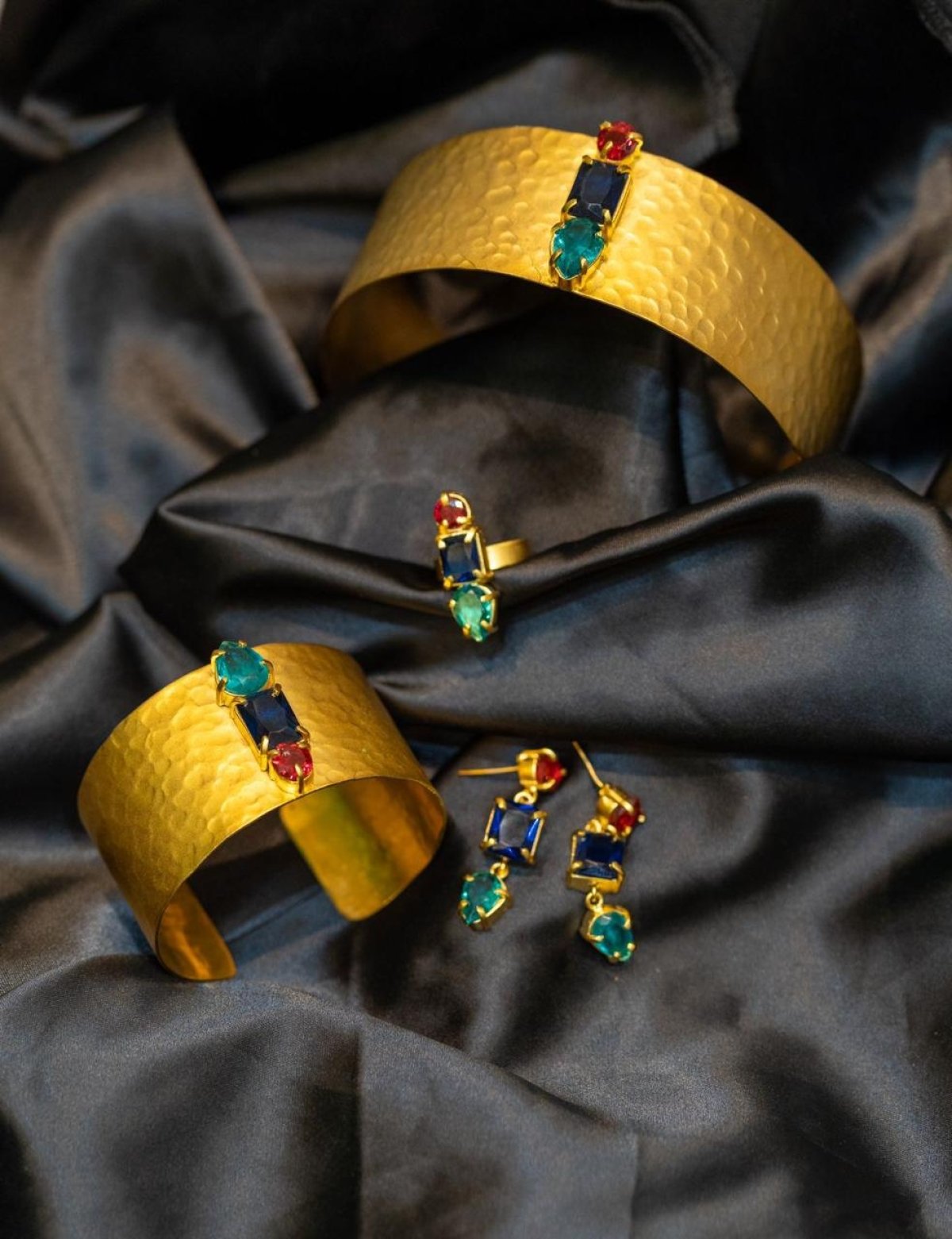 تشوكر واسورة وخاتم وحلق من النحاس المطلي دهب وفصوص من الاحجار الكريمه