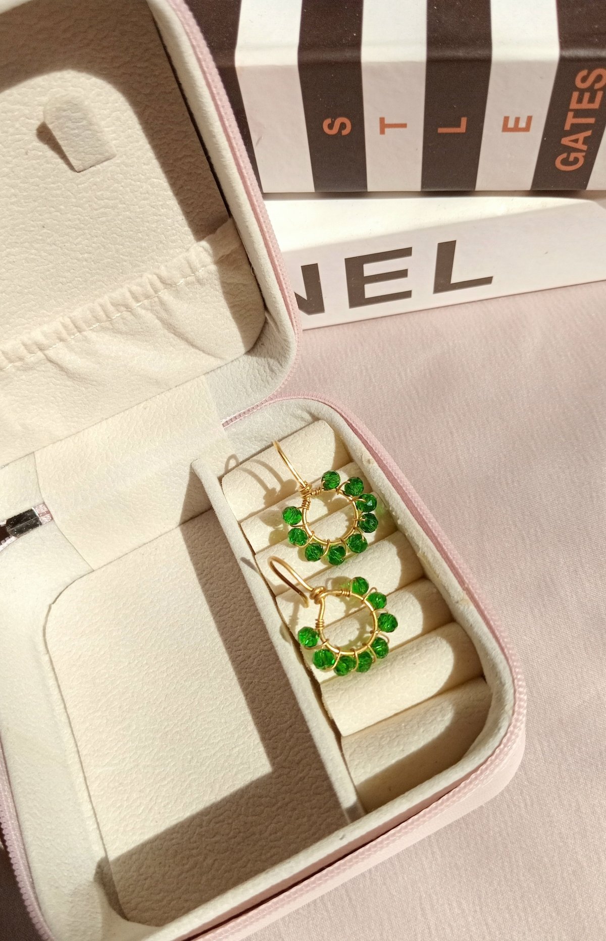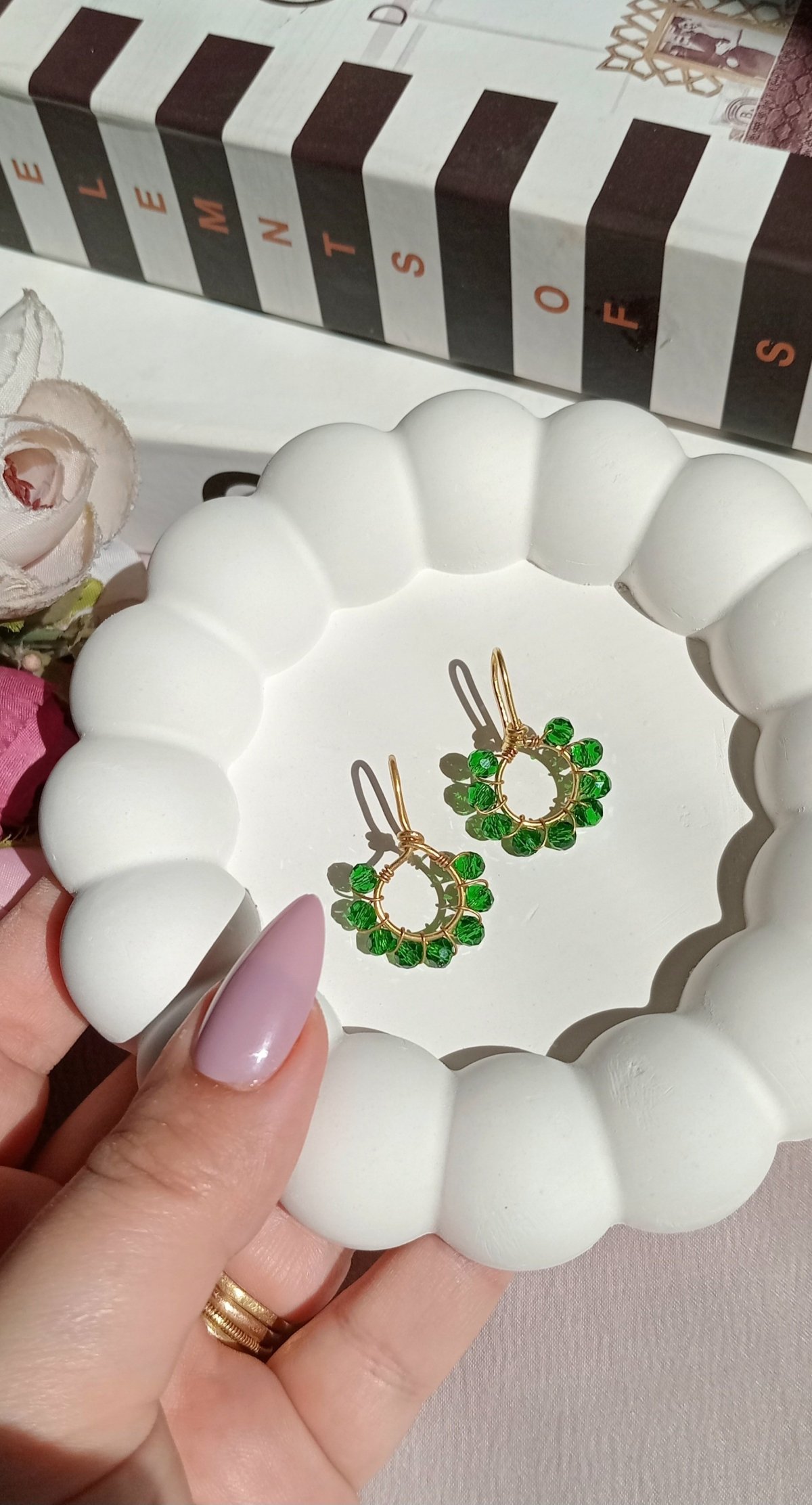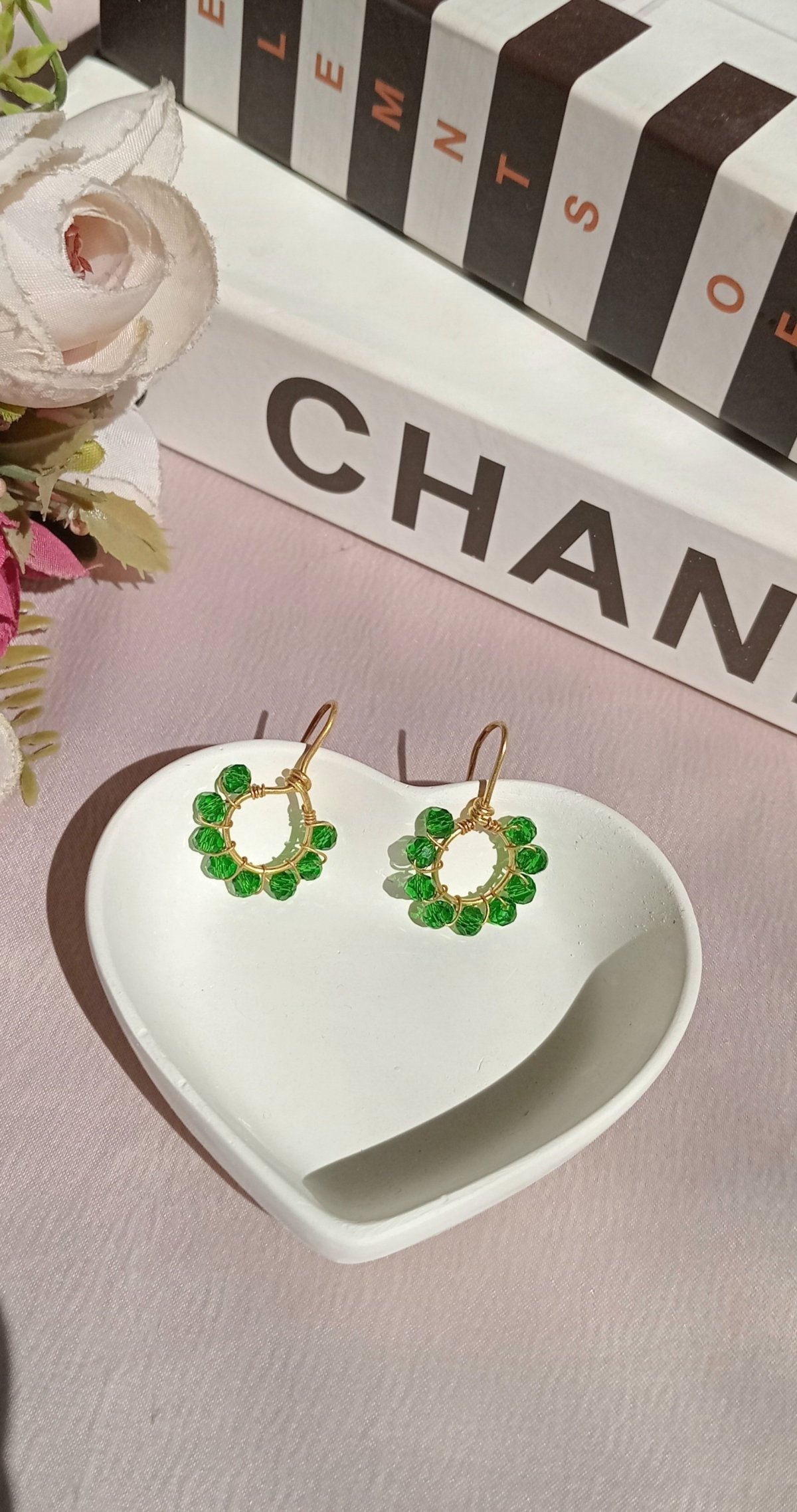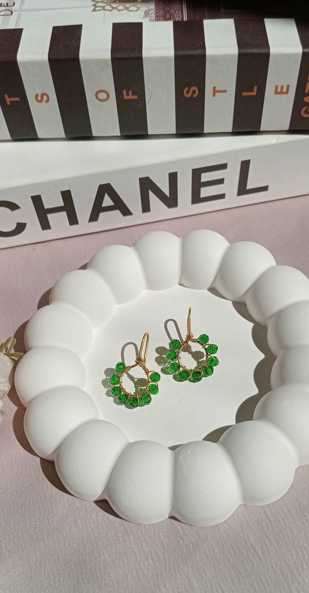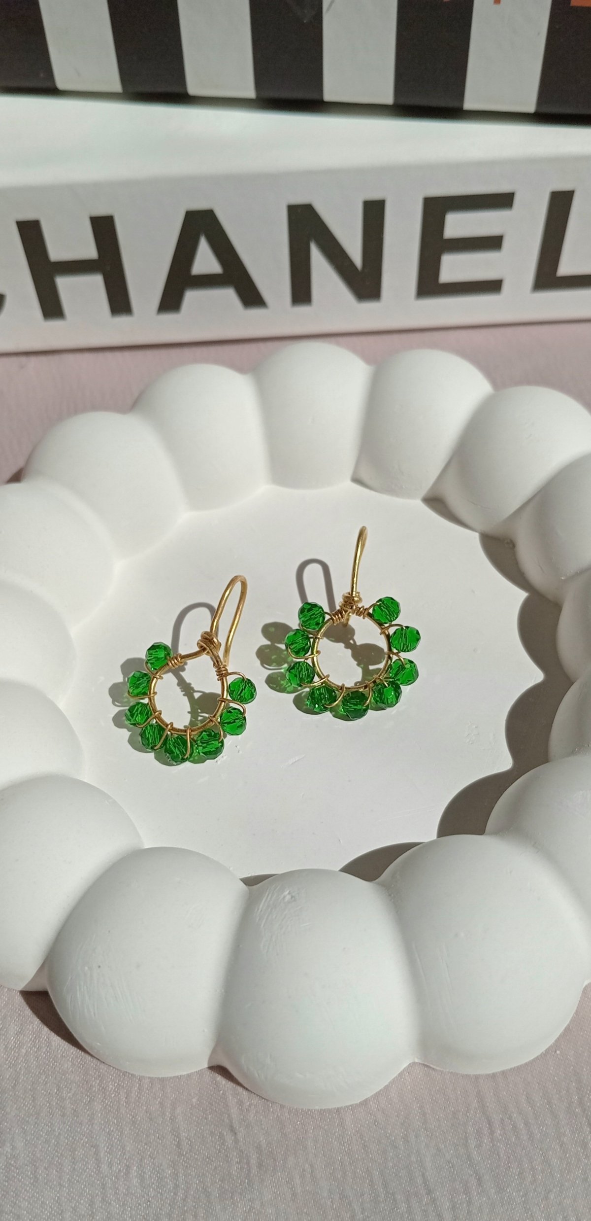 أقراط نحاس هاندميد بخرز كريستال أخضر النحاس ضد الصدأ الخامات عالية الجودة