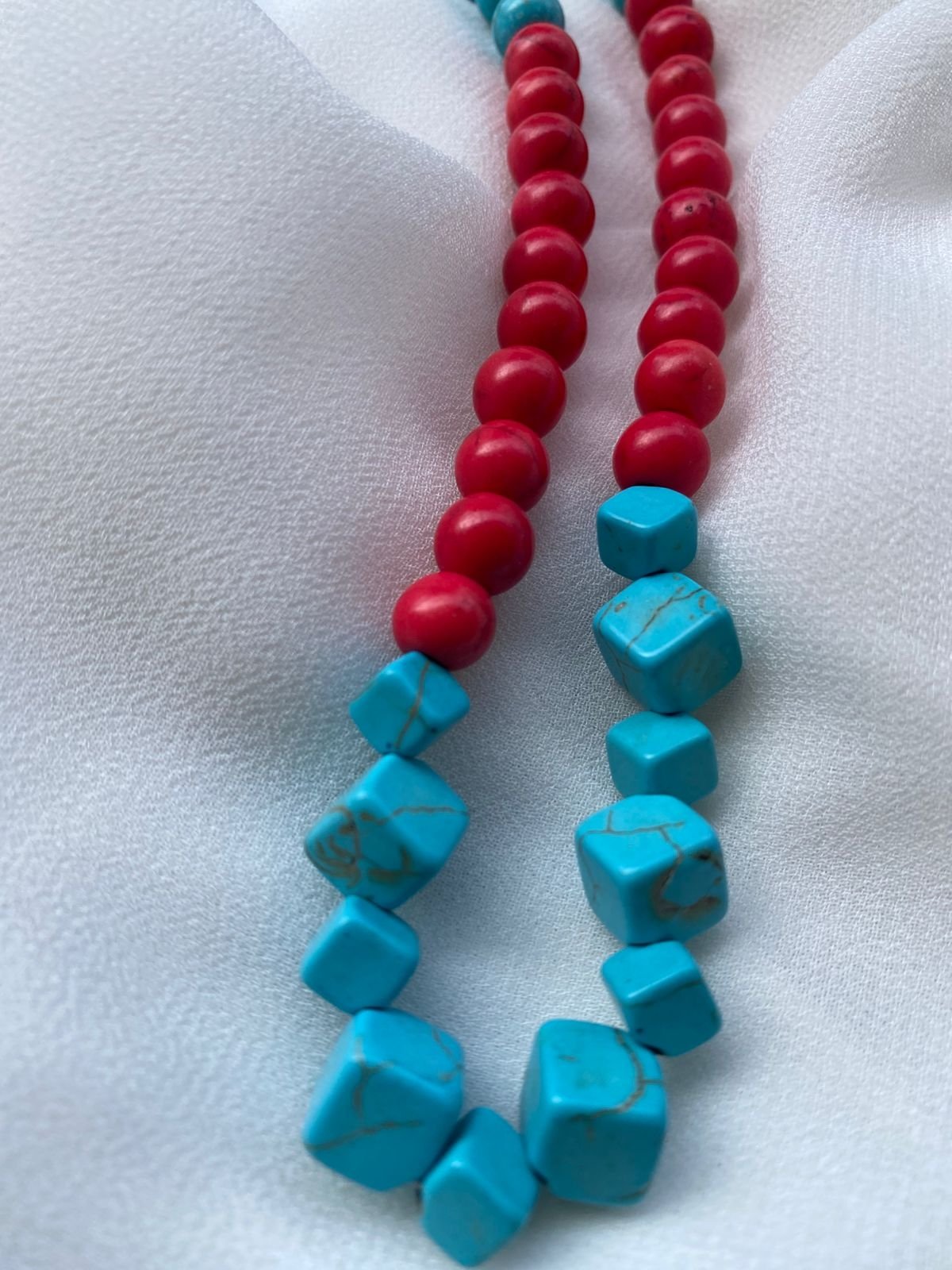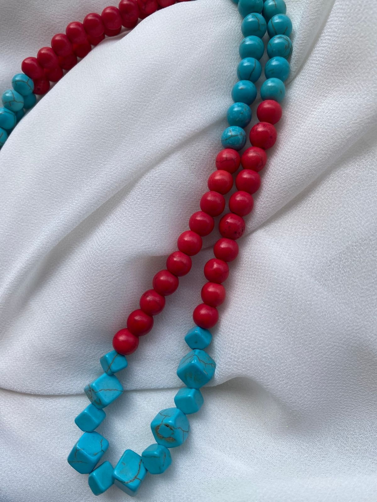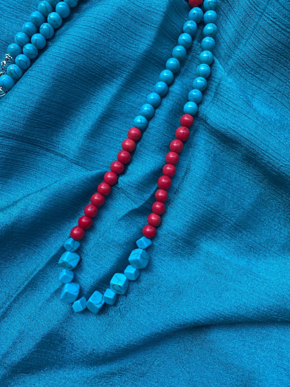 عقد مصنوع من حجر الفيروز بالونين الاحمر و الازرق