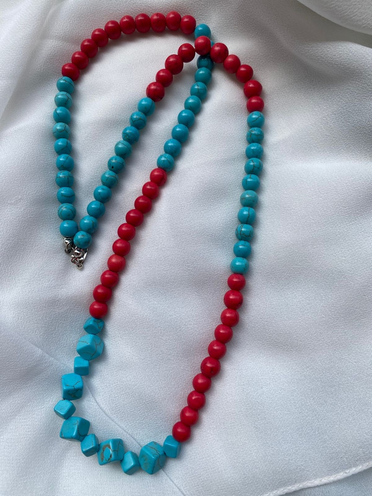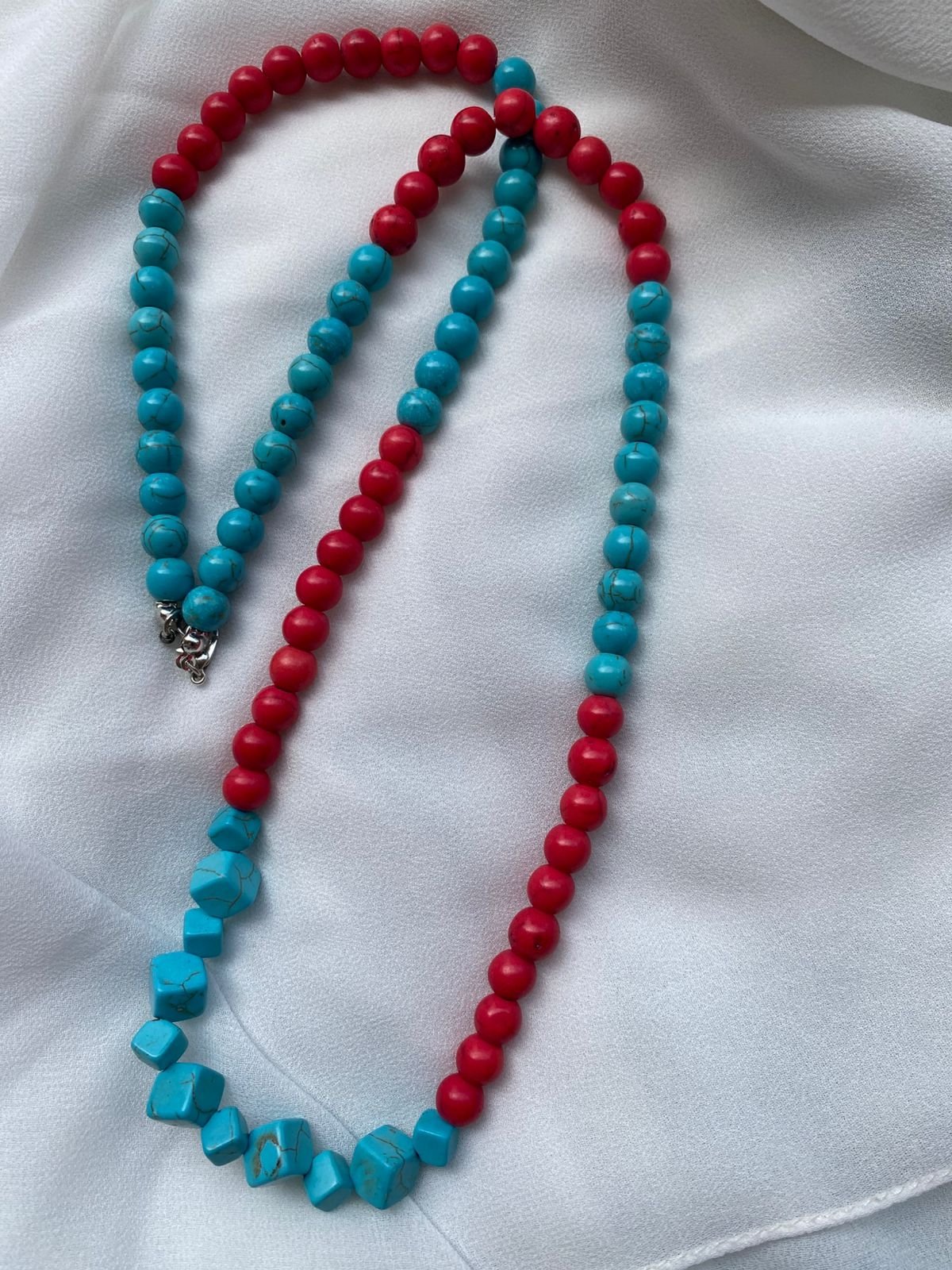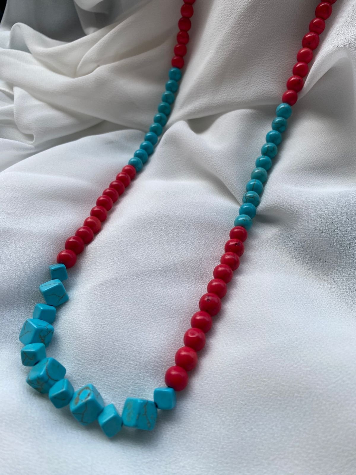عقد مصنوع من حجر الفيروز بالونين الاحمر و الازرق