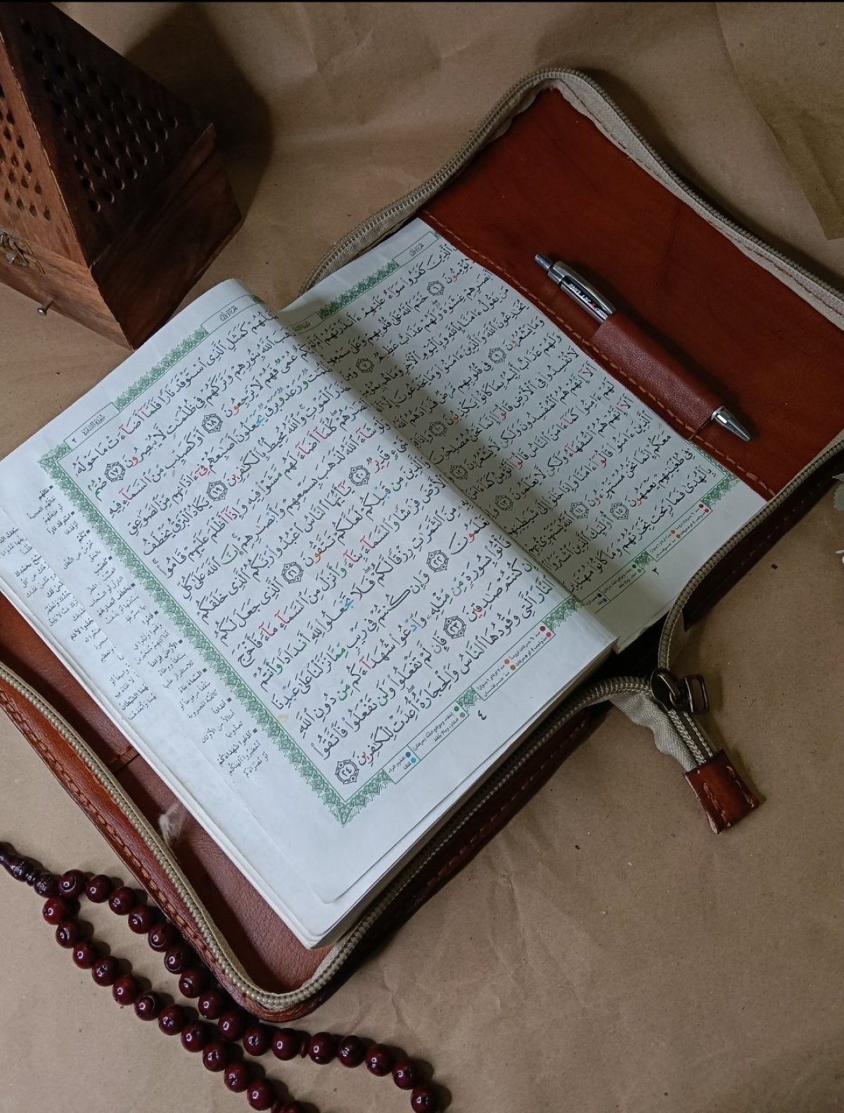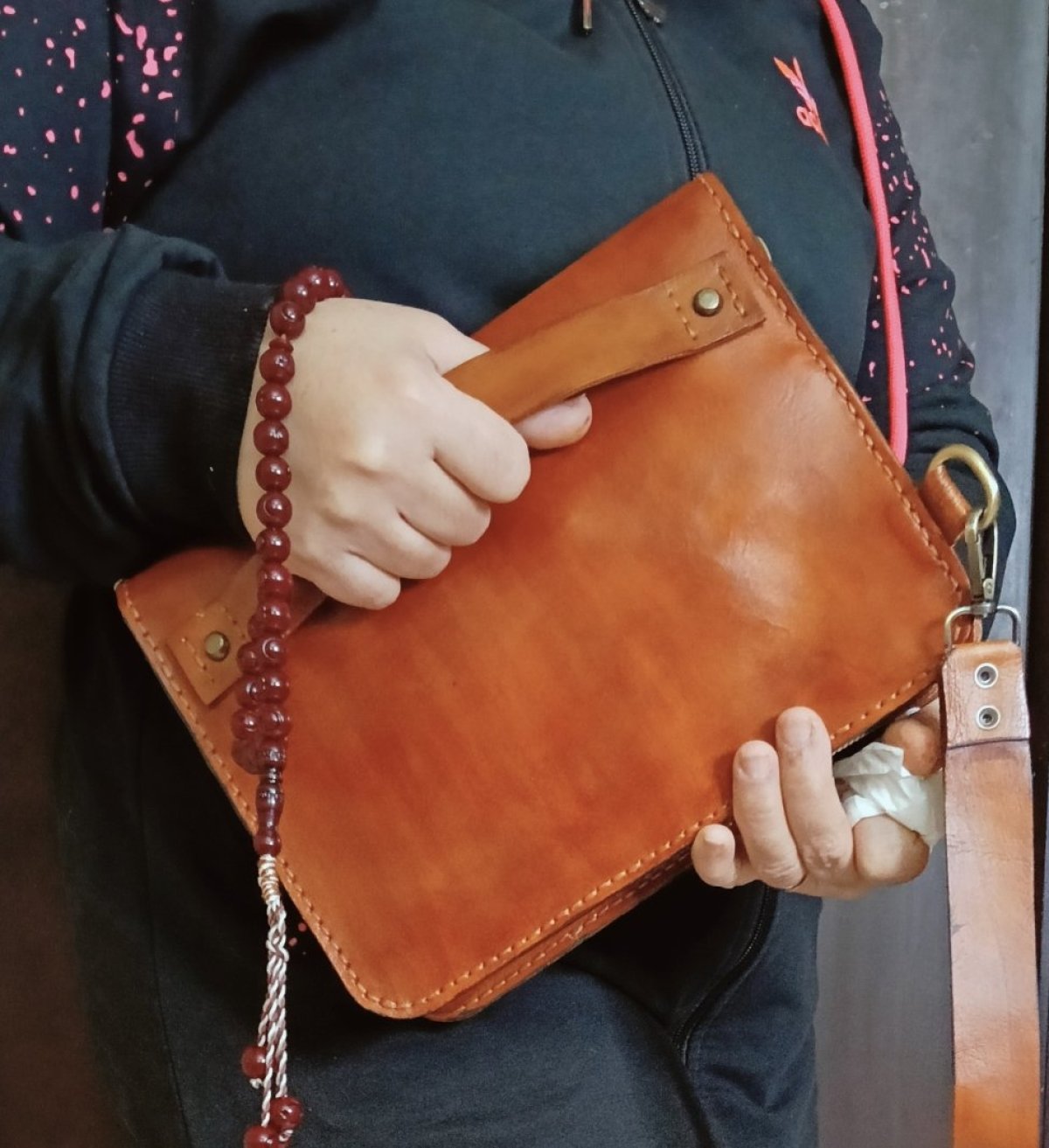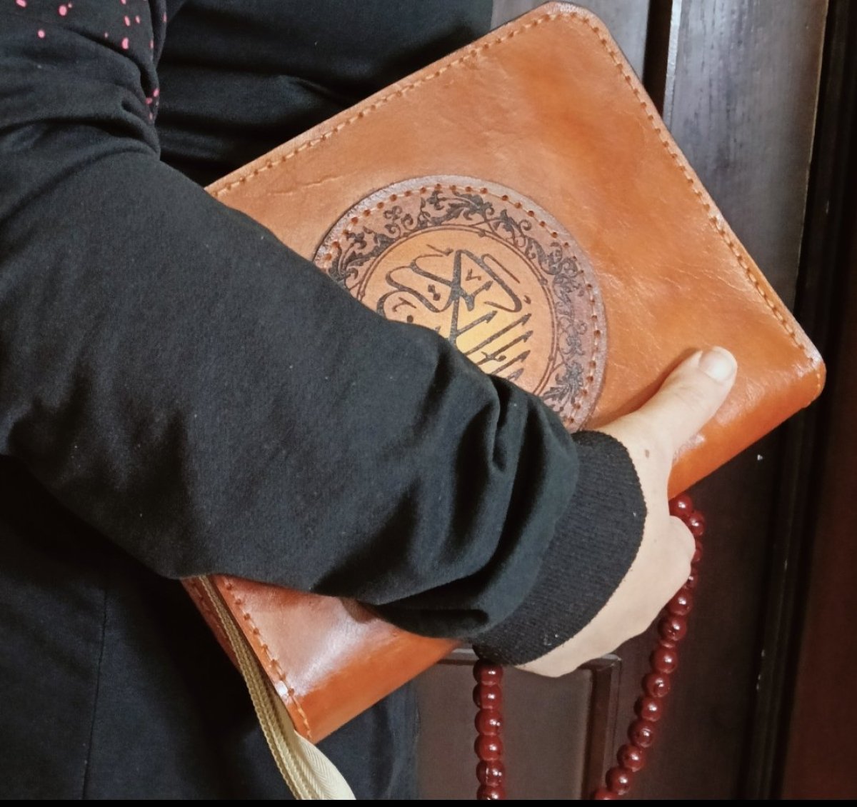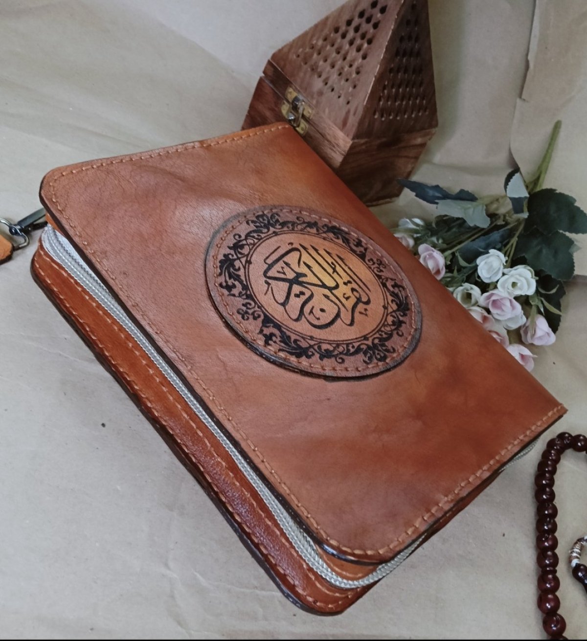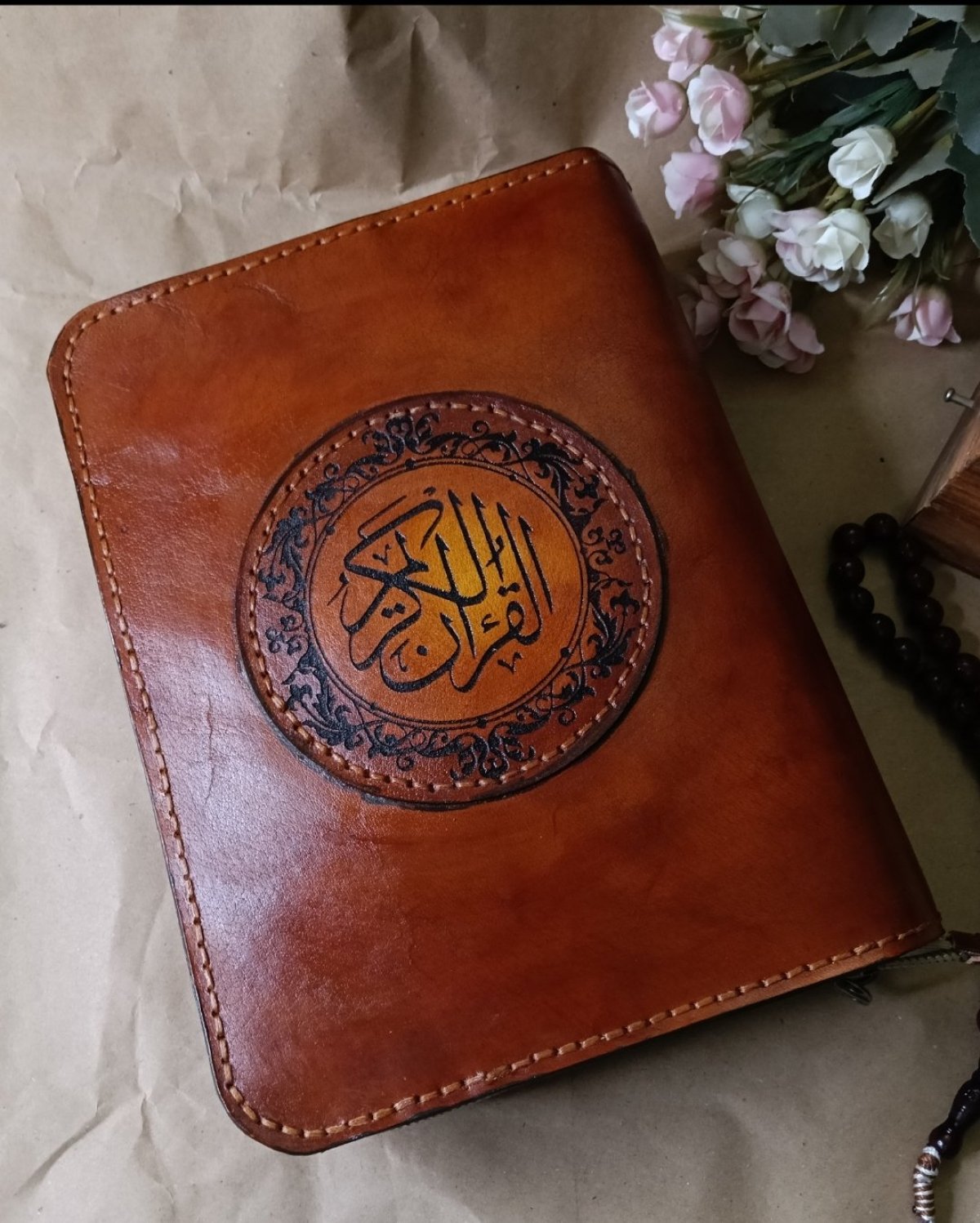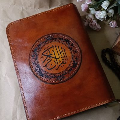 كڤر للمصحف الشريف من الجلد الطبيعي بسوستة و٢ يد مكان للقلم مناسب لمصحف مقاس ٢٤*١٨*٣.٥ ممكن تنفيذه بأى مقاس