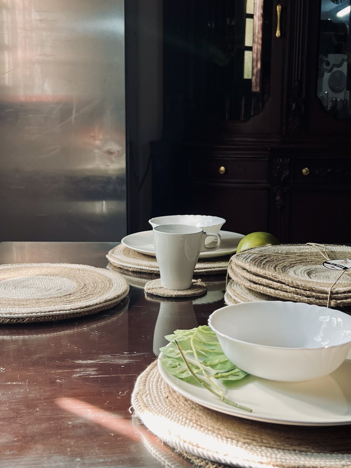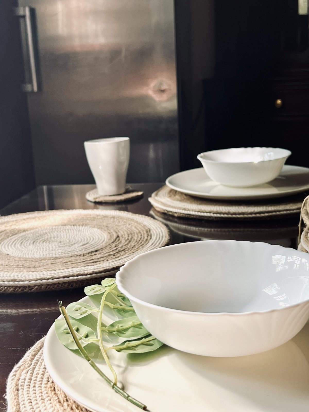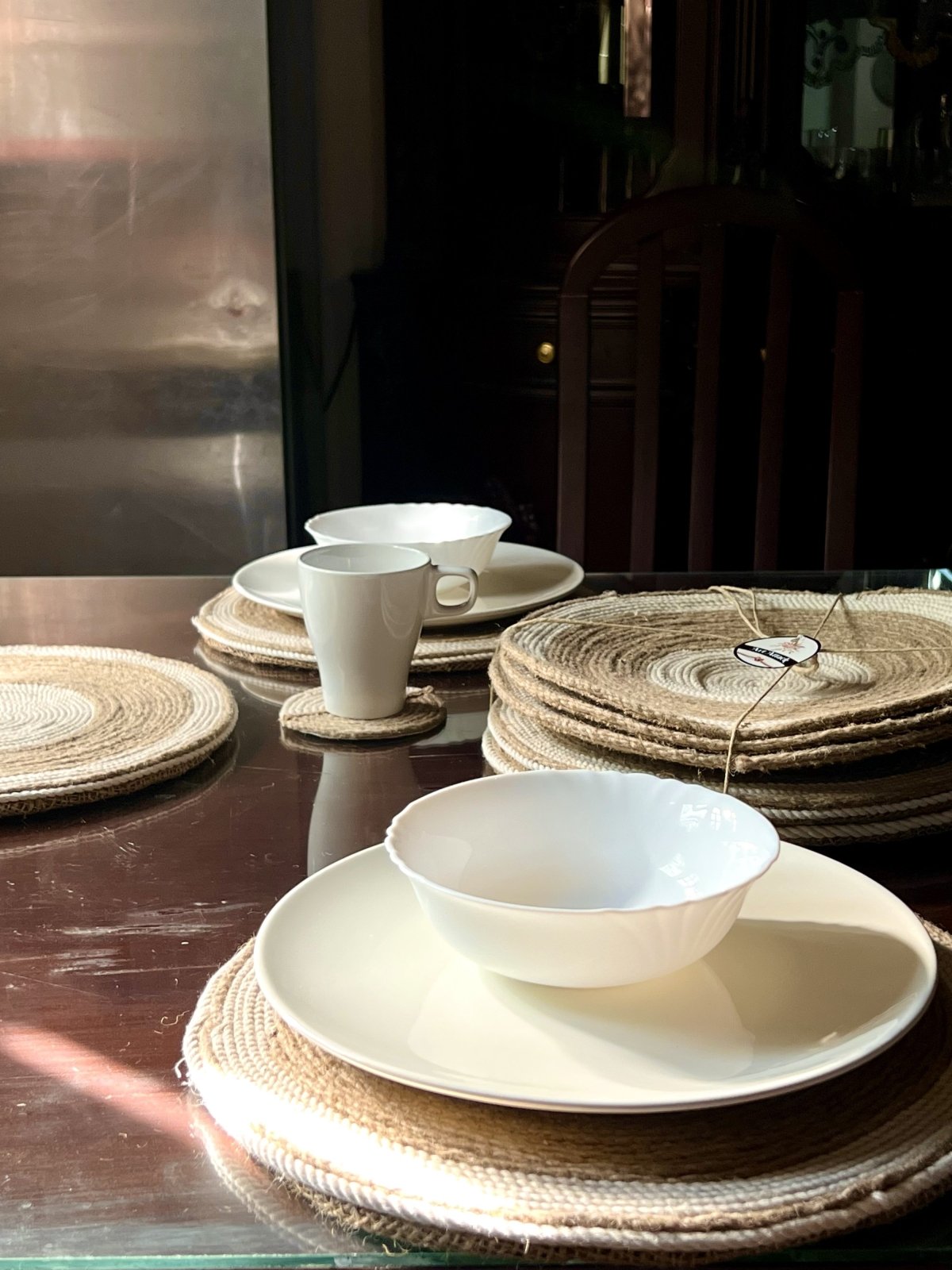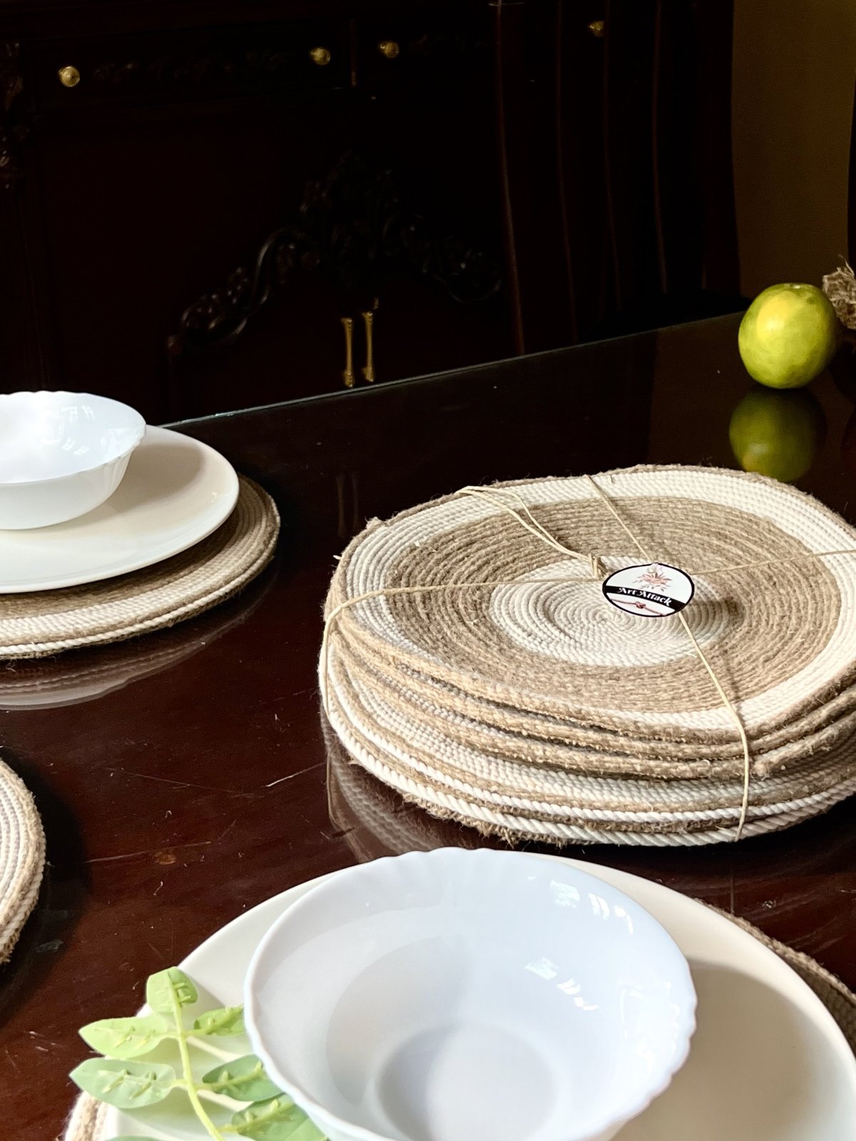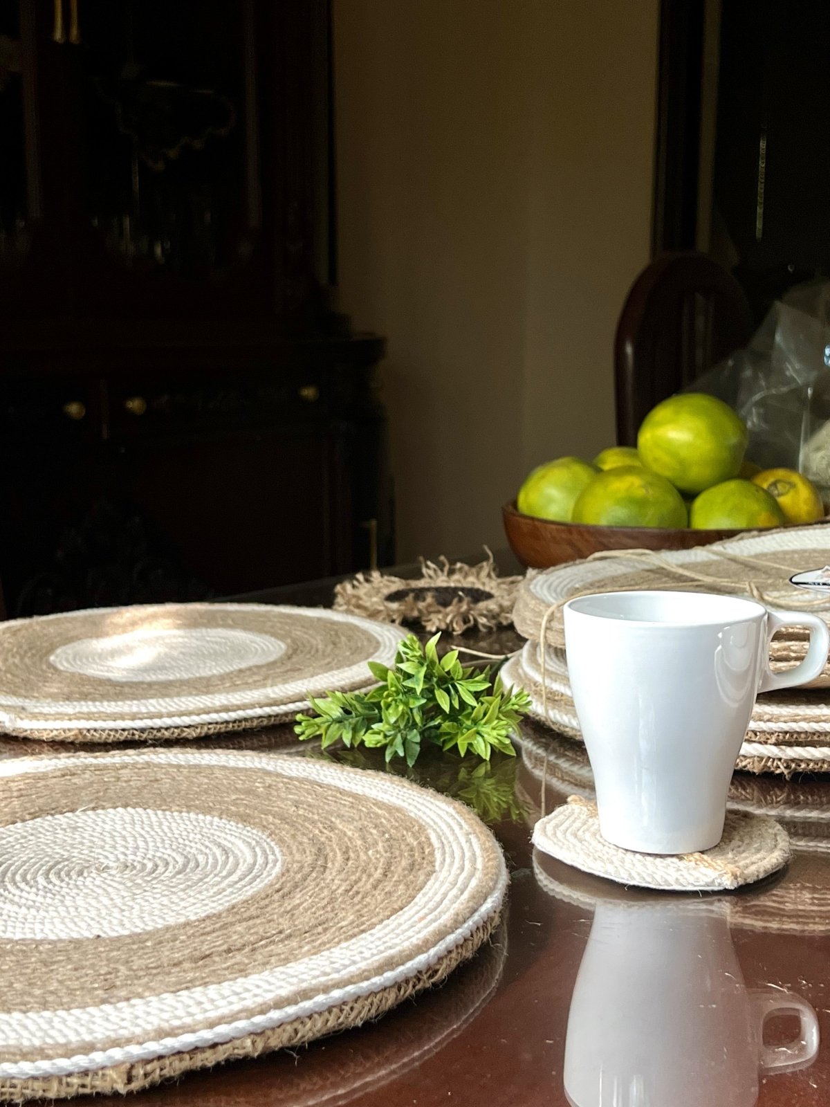 مجموعة مكونة من كوسترات الاطباق من خيوط الخيش والمكرمية