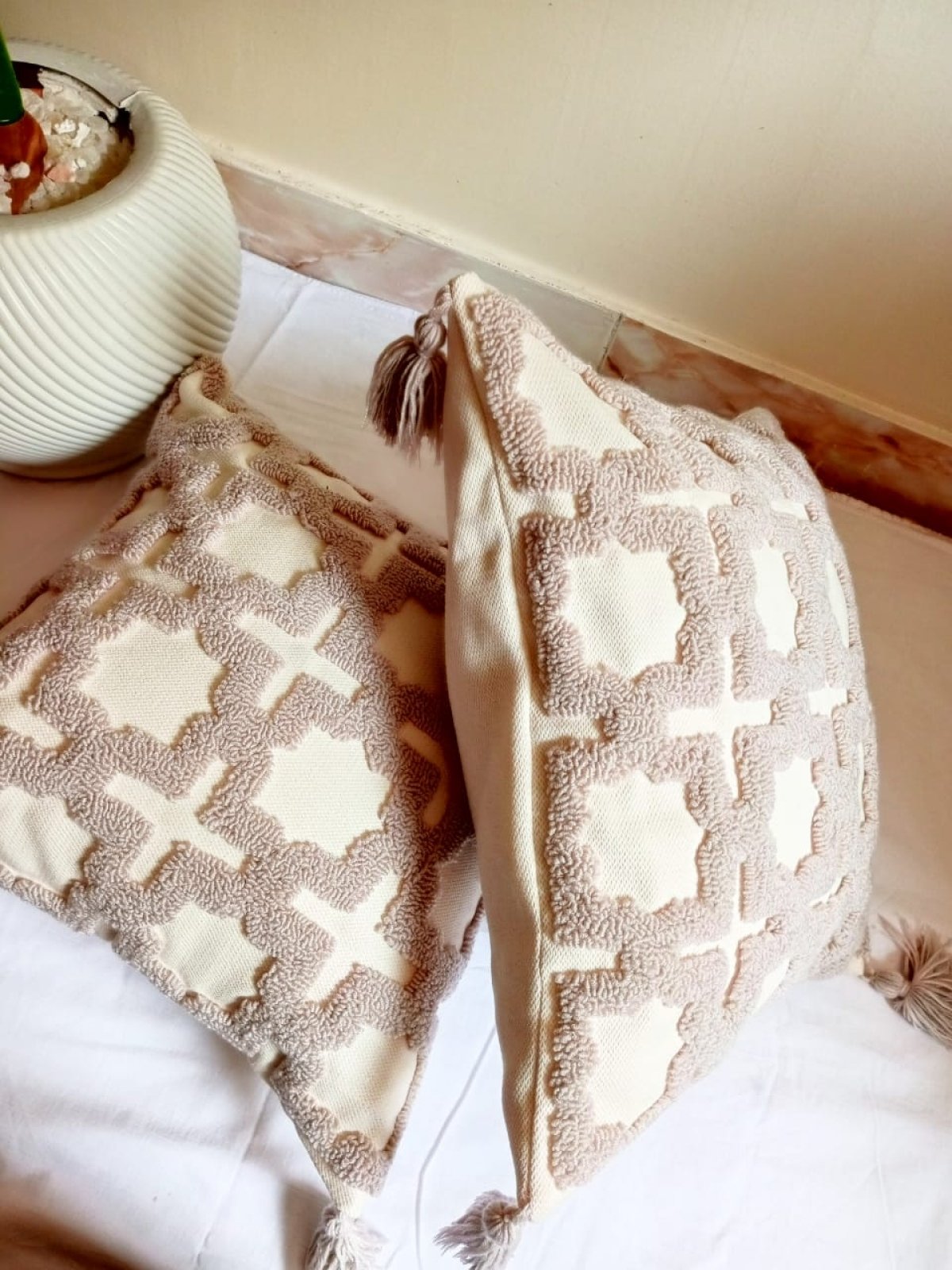 كوشن الوحده الاسلاميه مقاس 45*45 بخيوط قطن وقماش كتان متاح تغيير المقاسات والالوان