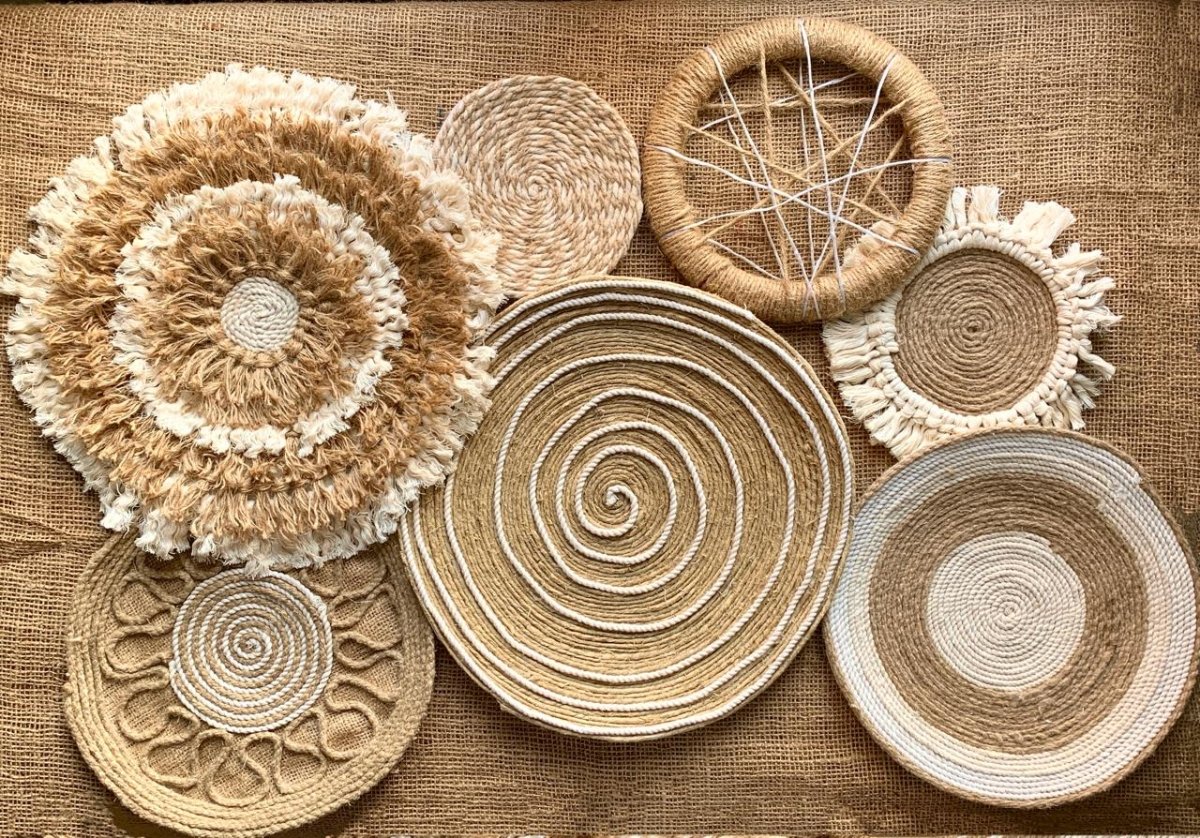 مصنوعة من مادة الجوت والمكرمية، تتراوح الأحجام بين 32-15 سم