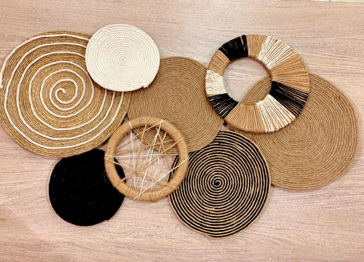 مجموعة من ٨ كوسترات من الخيش والمكرمية تتراوح بين ١٥-٣٠سم