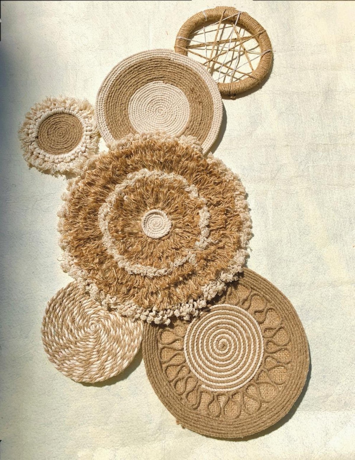 مجموعة من ٦ كوسترات من الخيش والمكرمية الحجم : ١٨-٣٥سم