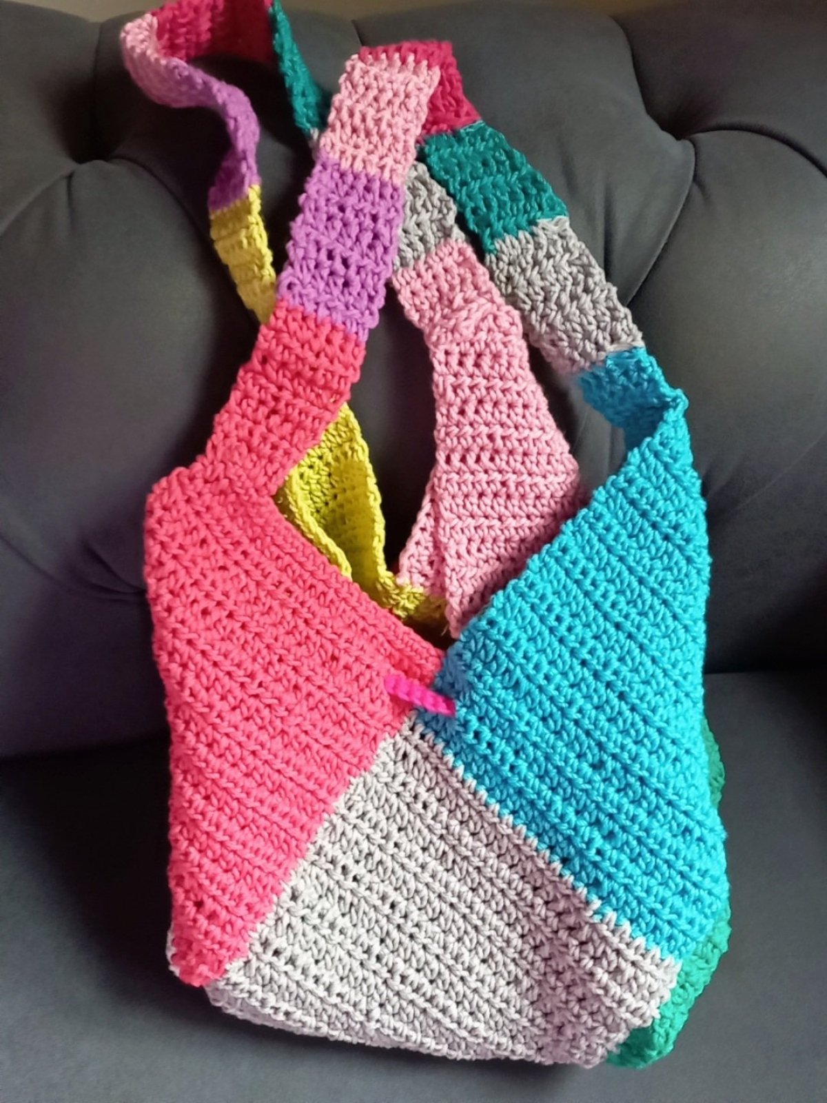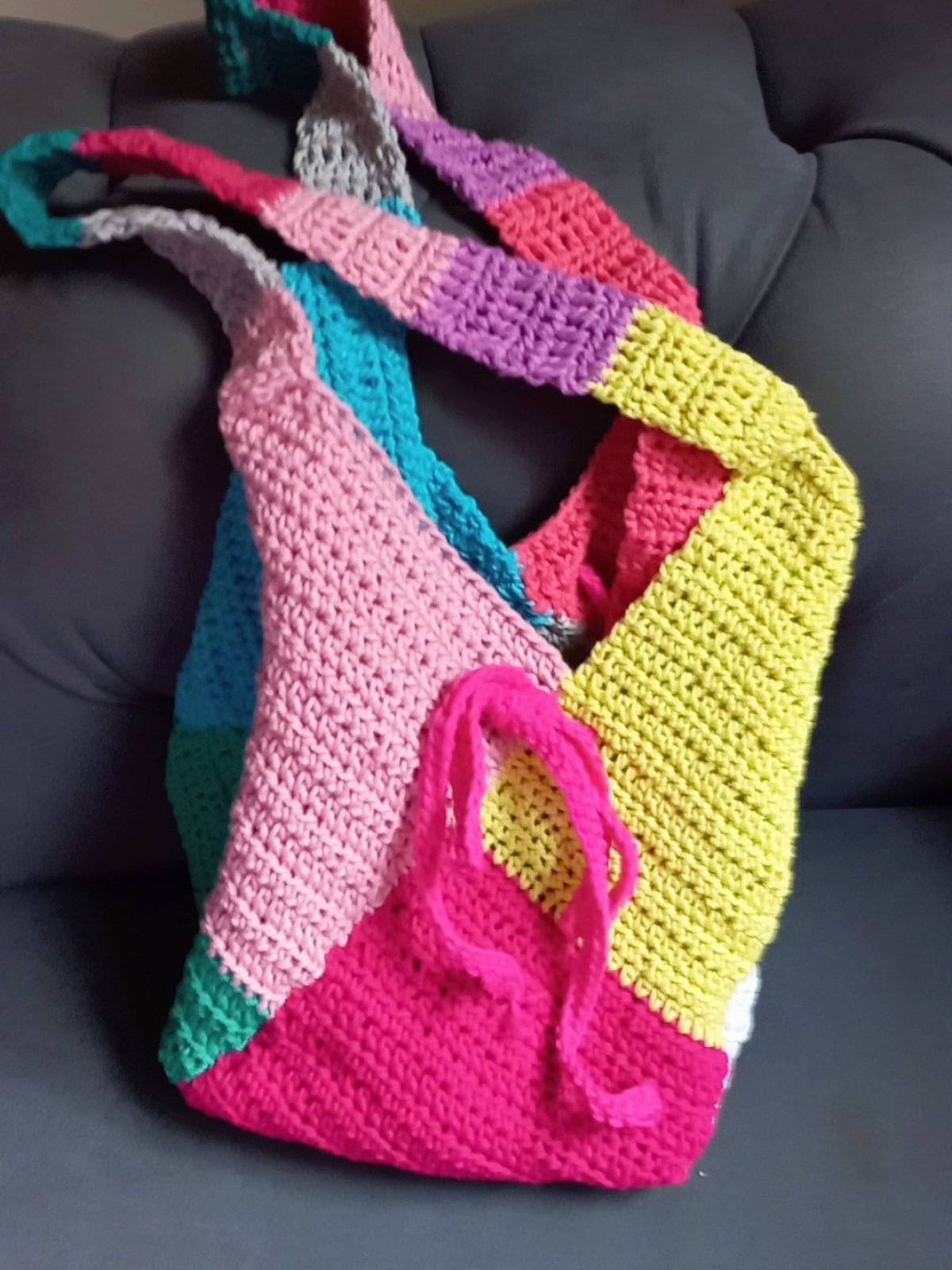 شنطة كروشية بألوان زاهيه مصنوعة من خيط ضد الوبر مقاس ٣٥ × ٣٠ سم شيك جدا